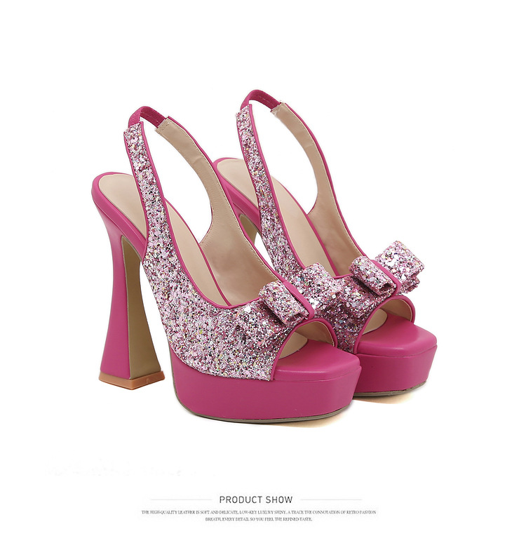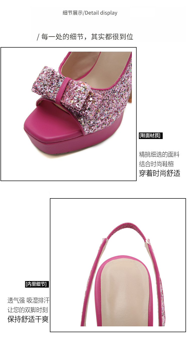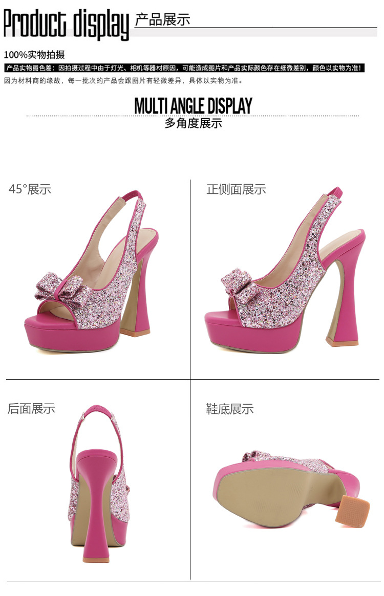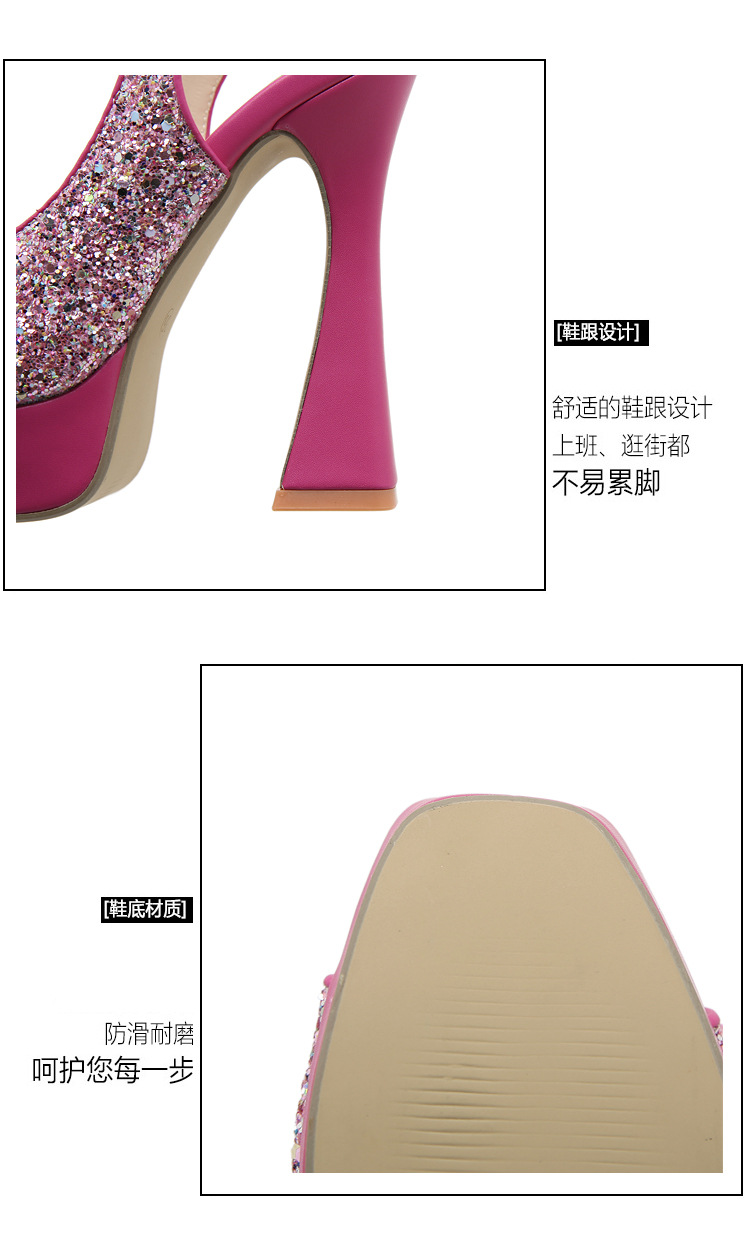 활 여성 신발 공장 도매 대외 무역 유럽과 미국의 얕은 여성 신발 모조 다이아몬드 와인 유리 두꺼운 뒤꿈치 투명 생선 입 하이힐스토어 가기