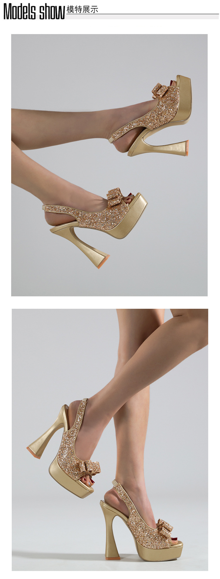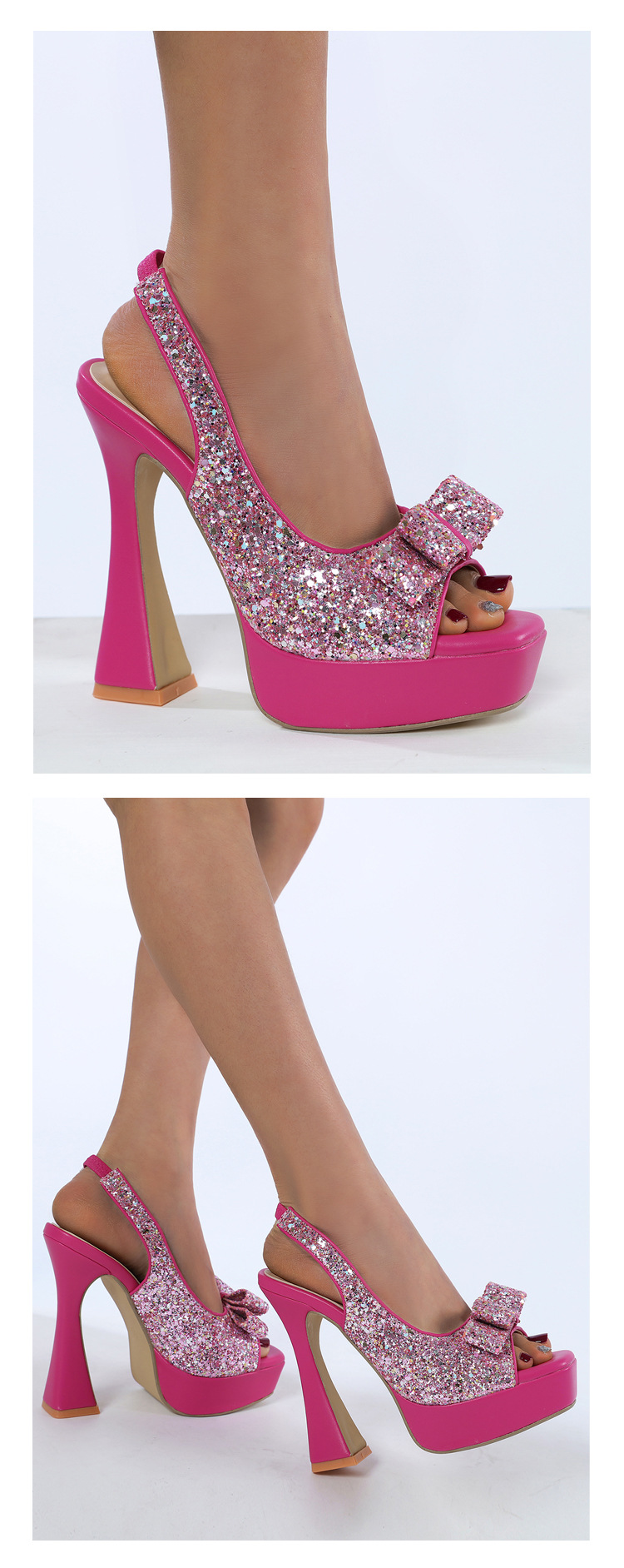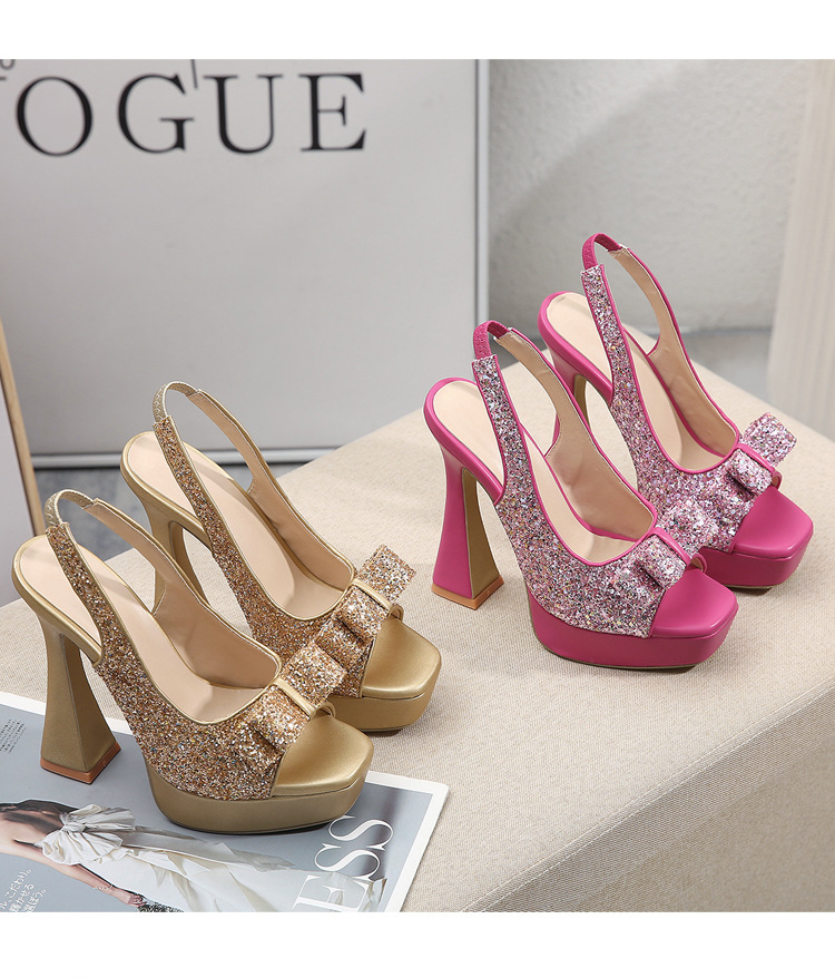 활 여성 신발 공장 도매 대외 무역 유럽과 미국의 얕은 여성 신발 모조 다이아몬드 와인 유리 두꺼운 뒤꿈치 투명 생선 입 하이힐스토어 가기