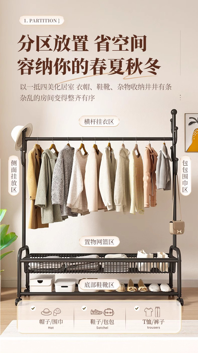 신형 선인장 옷걸이, 가정용 거실 및 침실 수납용 이동식 옷걸이, 인기 있는 라이트 럭셔리 건조대스토어 가기