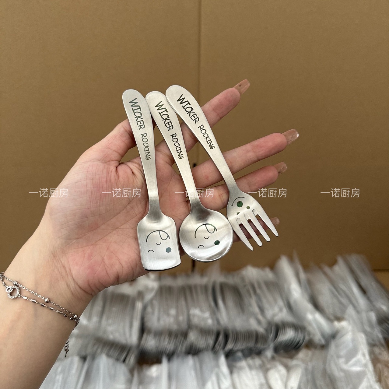 Yino 주방 어린이 긴 손잡이 나이프와 포크 식기 스마일리 304 스테인레스 스틸 다이닝 스푼 스푼 스푼 포크 포크스토어 가기