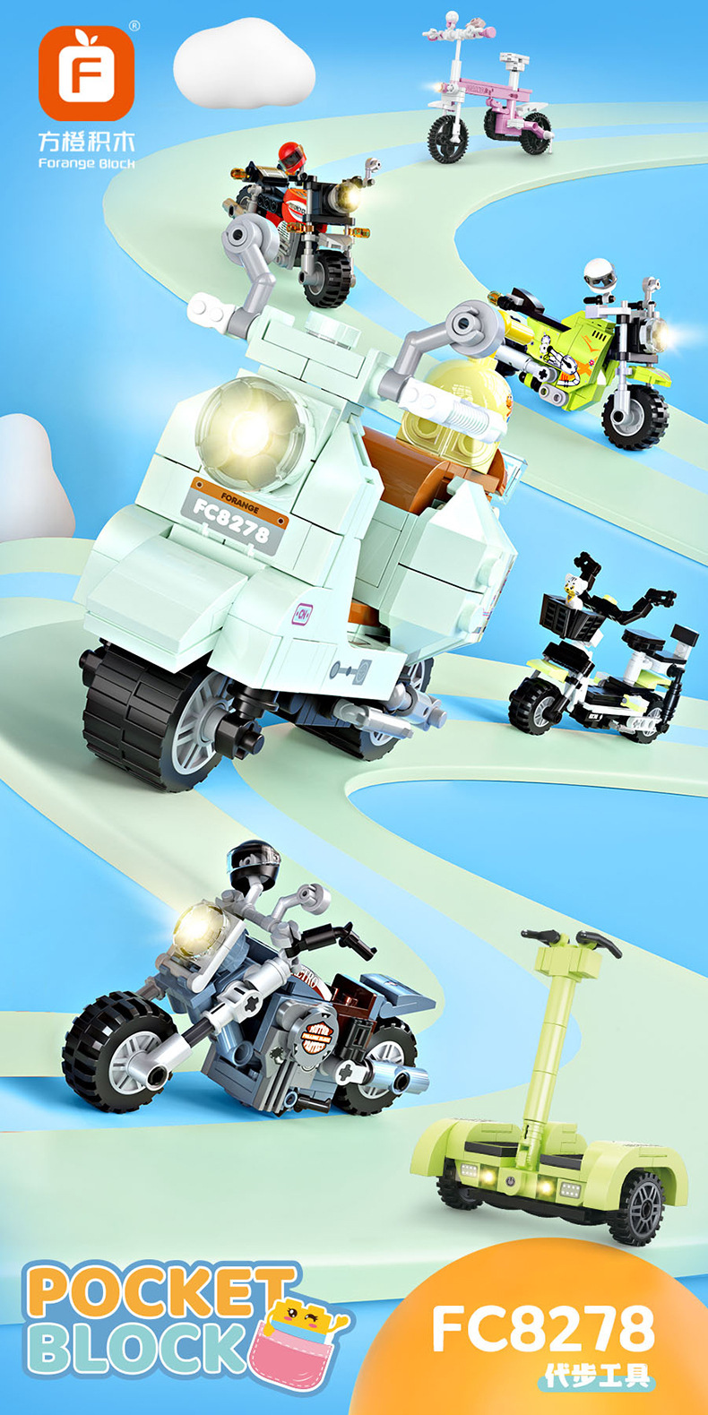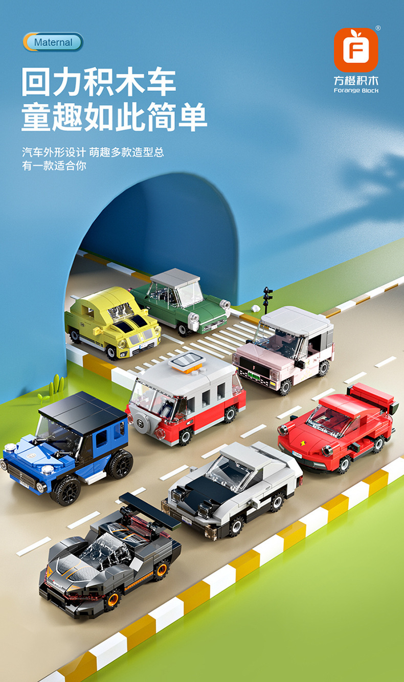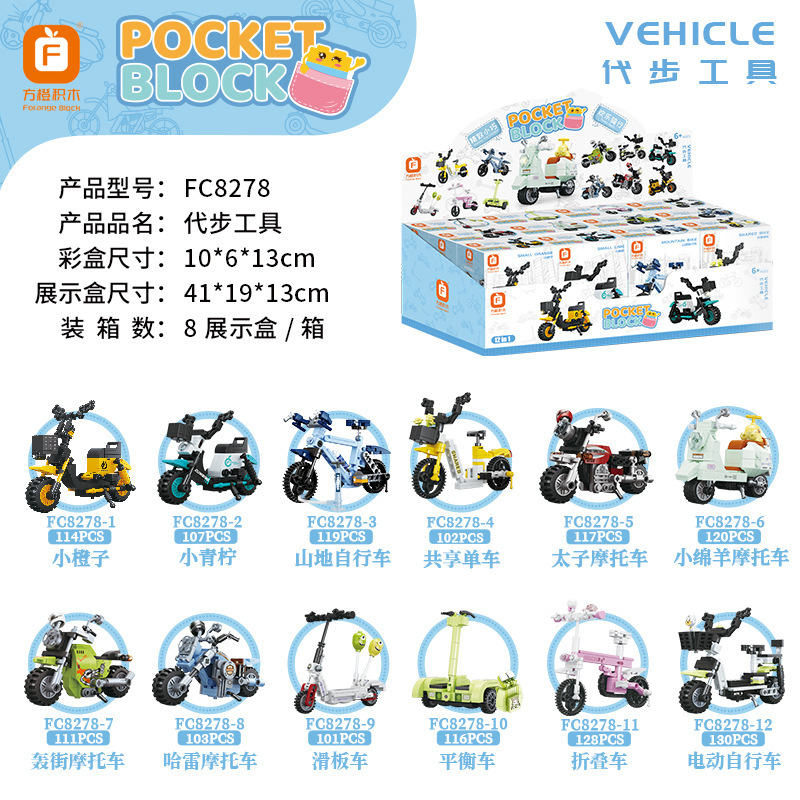 스퀘어 오렌지 빌딩 블록 8274 작은 입자 미니 가전 트렌드 게임 Huili 자동차 조립 모델 어린이 장난감