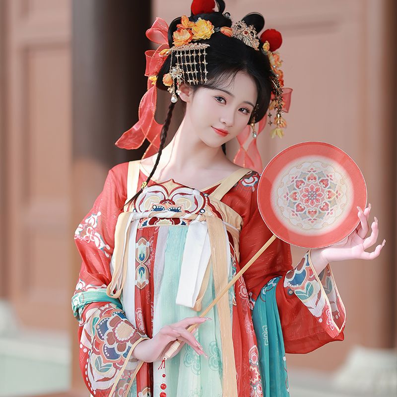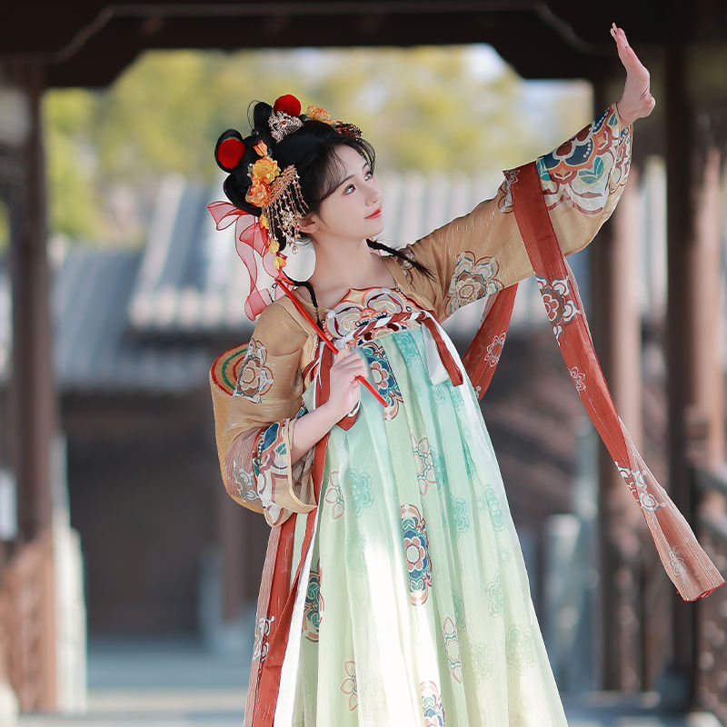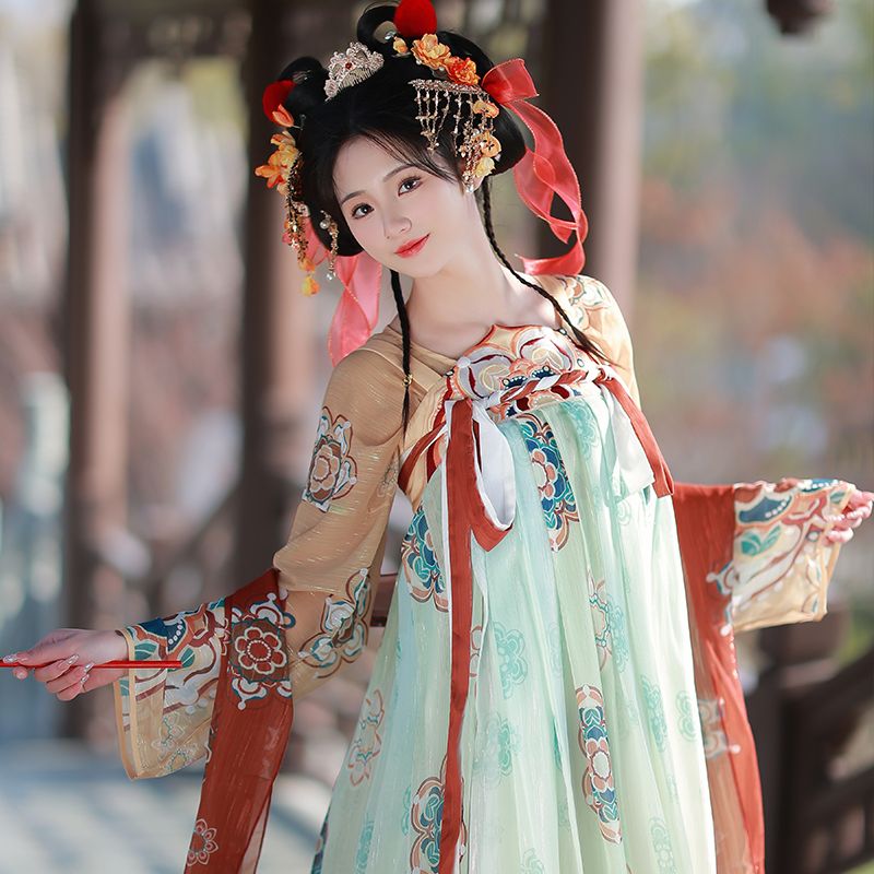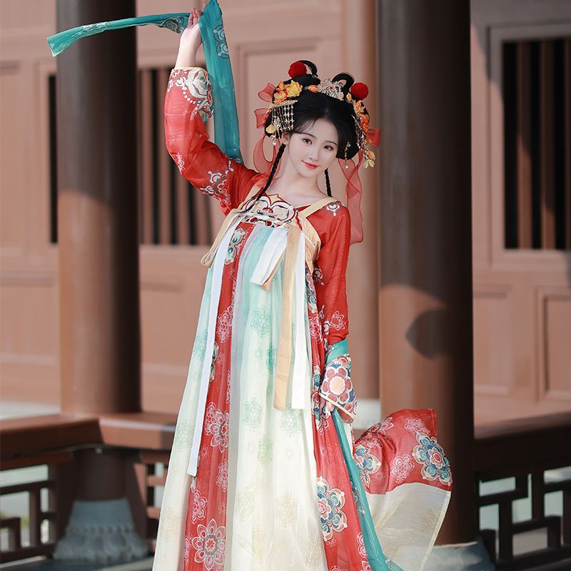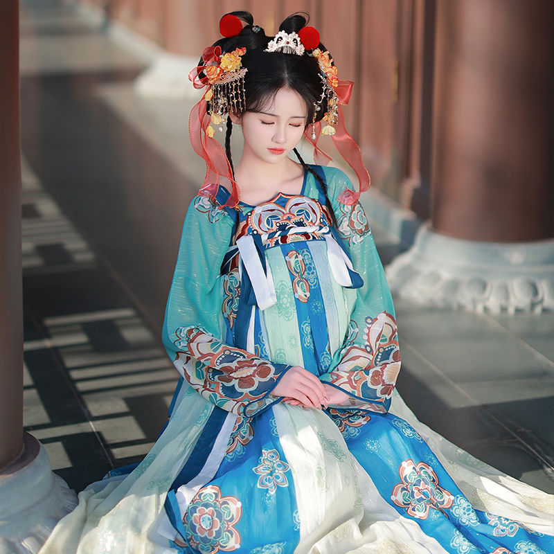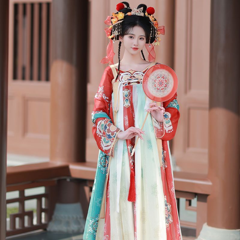 여자 친구 새로운 성인 한푸 작은 당나라 스타일 가슴 스커트 수놓은 국가 스타일 매일 봄과 여름 3 피스 세트 촬영스토어 가기