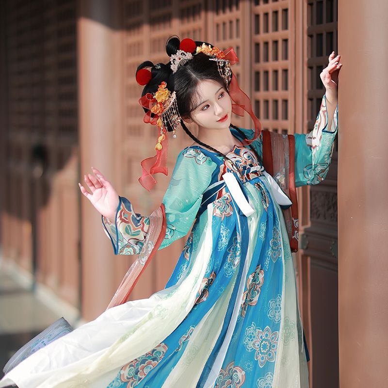 여자 친구 새로운 성인 한푸 작은 당나라 스타일 가슴 스커트 수놓은 국가 스타일 매일 봄과 여름 3 피스 세트 촬영