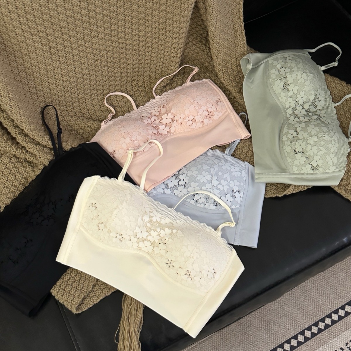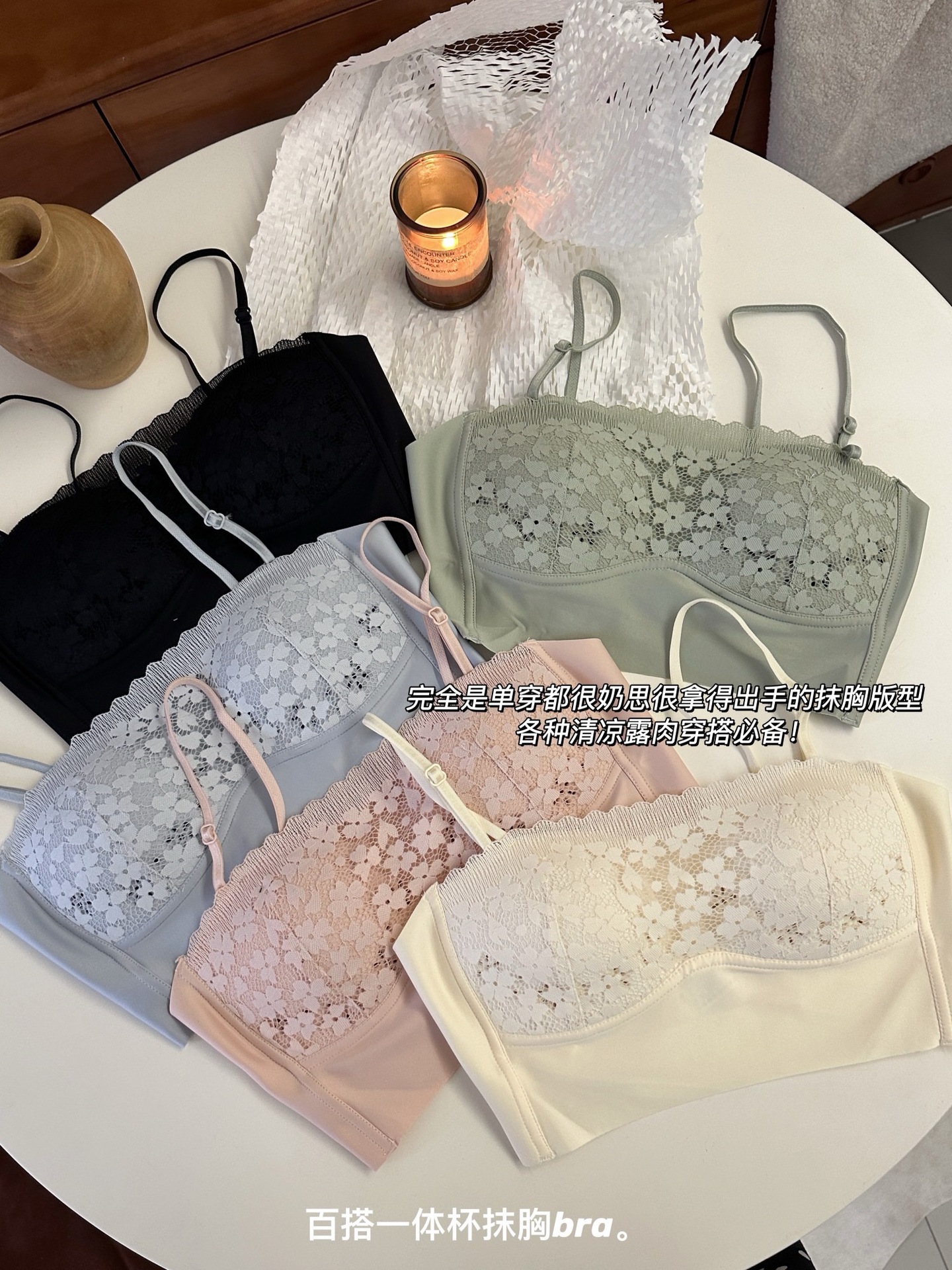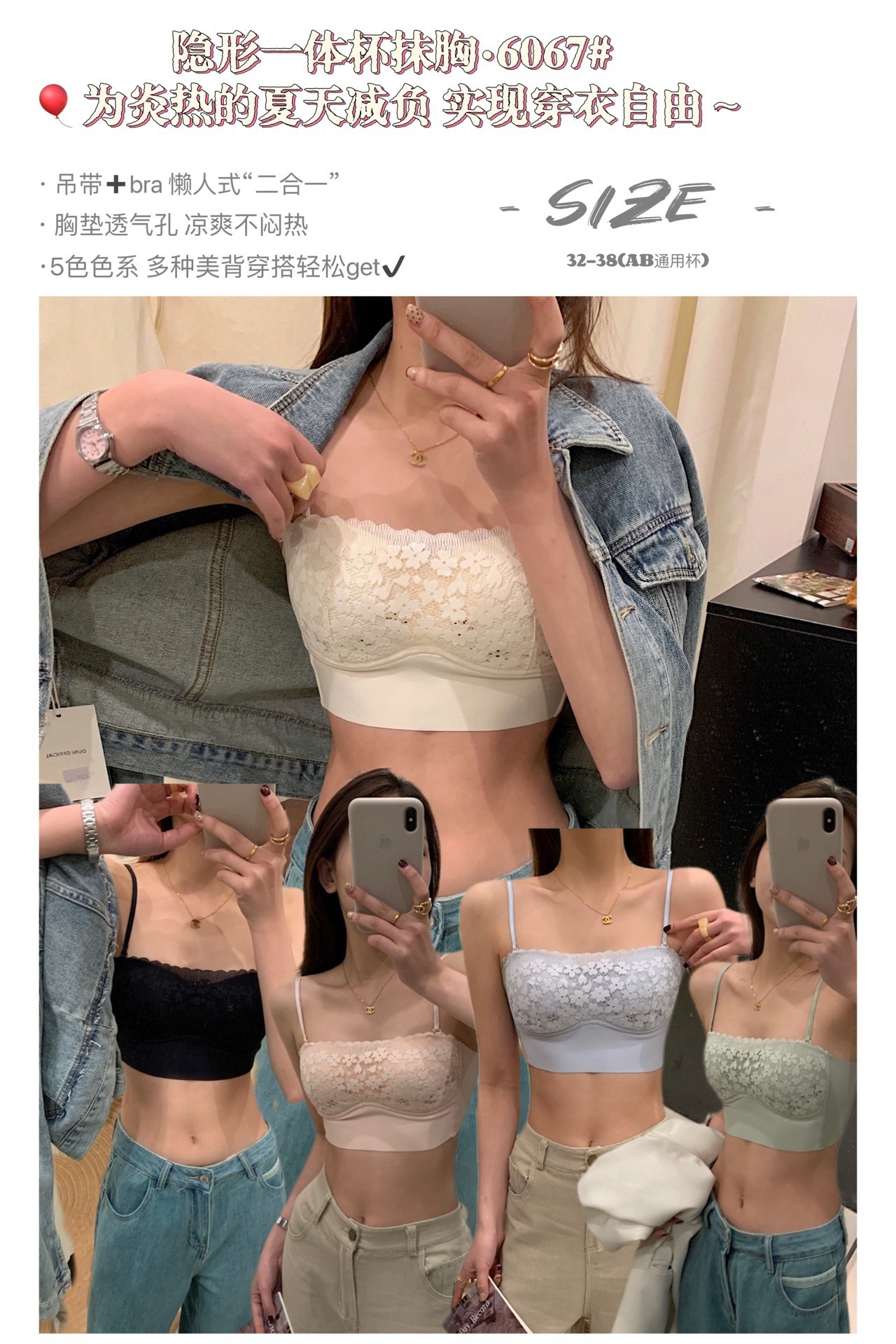 6067 # 새로운 스트랩리스 얇은 컵 미끄럼 방지 편안한 소녀 레이스 스트랩리스 속옷 싱글 피스스토어 가기