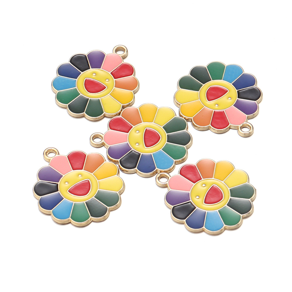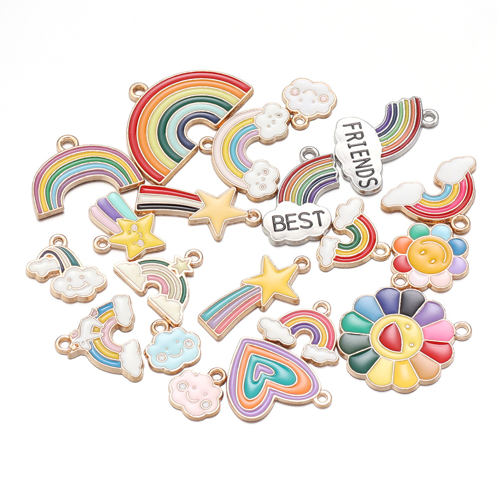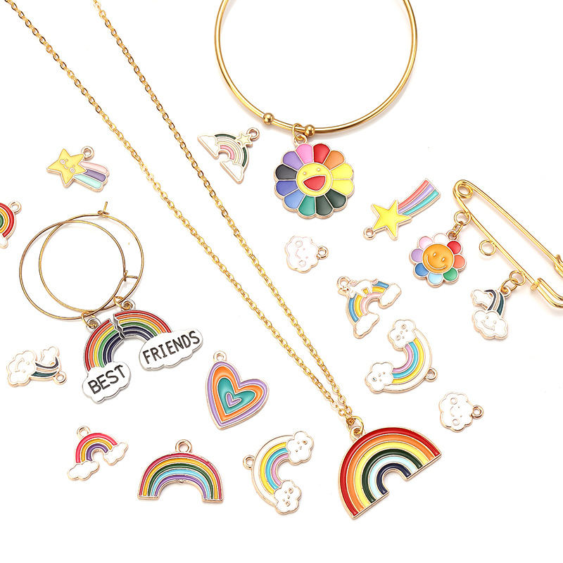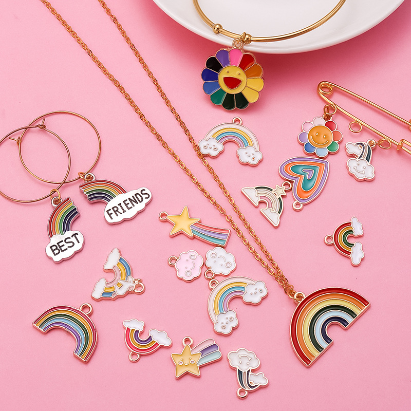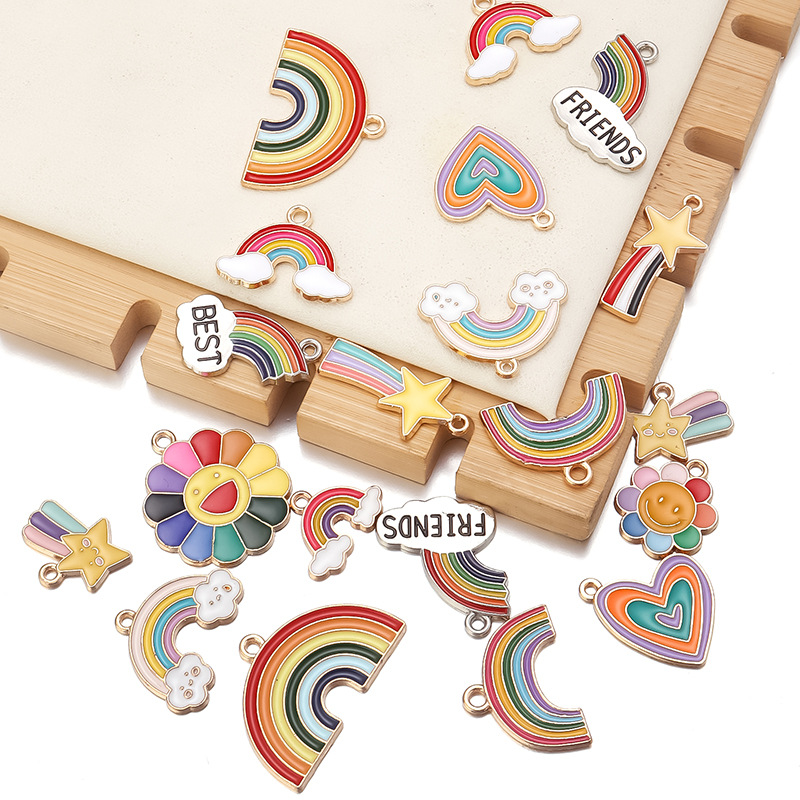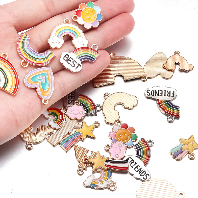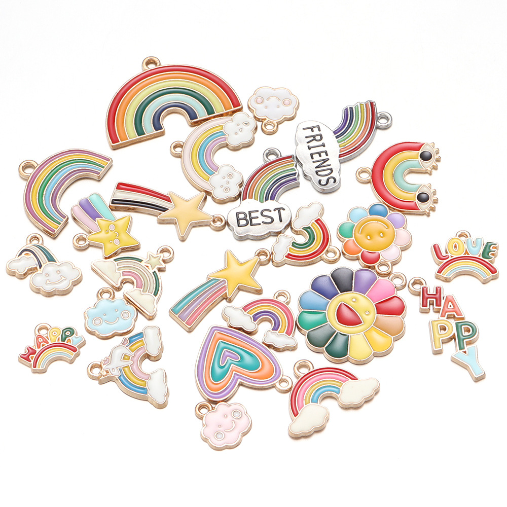 무지개 다섯개의 별 팔찌 목걸이 DIY 쥬얼리 펜던트가 떨어지는 합금 기름 떨어지는 무지개 해피 레터 펜던트