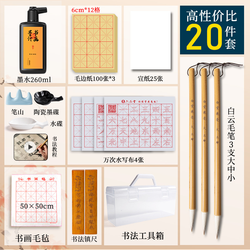 초보자 엔트리 레벨 4 보물 연구 세트 브러시 중국 종이 물 쓰기 천 세트 늑대 브러시 세트스토어 가기