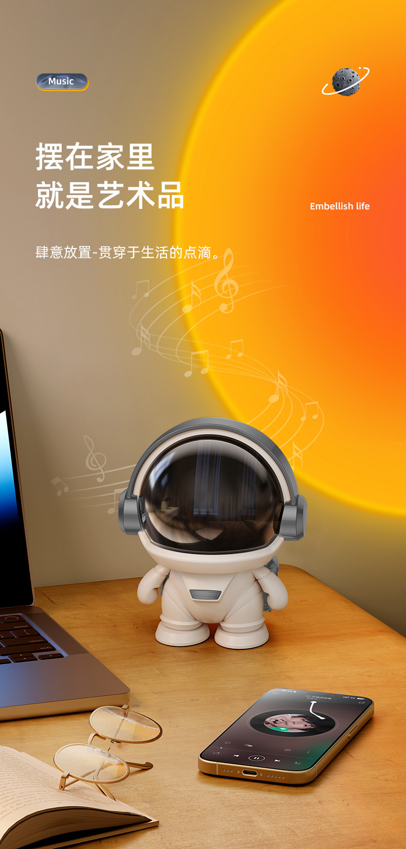 새로운 우주 비행사 창조적 인 블루투스 스피커 데스크탑 학생 다채로운 빛 서브 우퍼 야외 작은 오디오 선물 휴대용