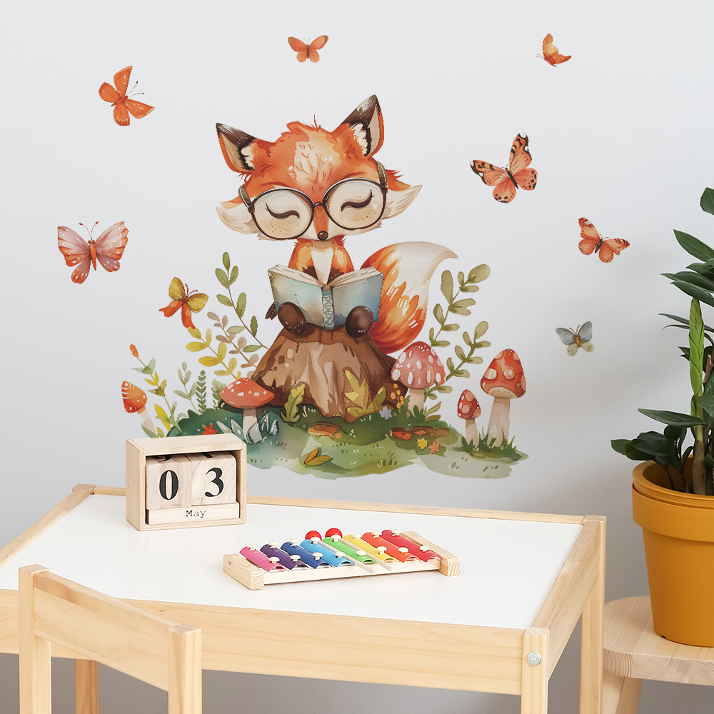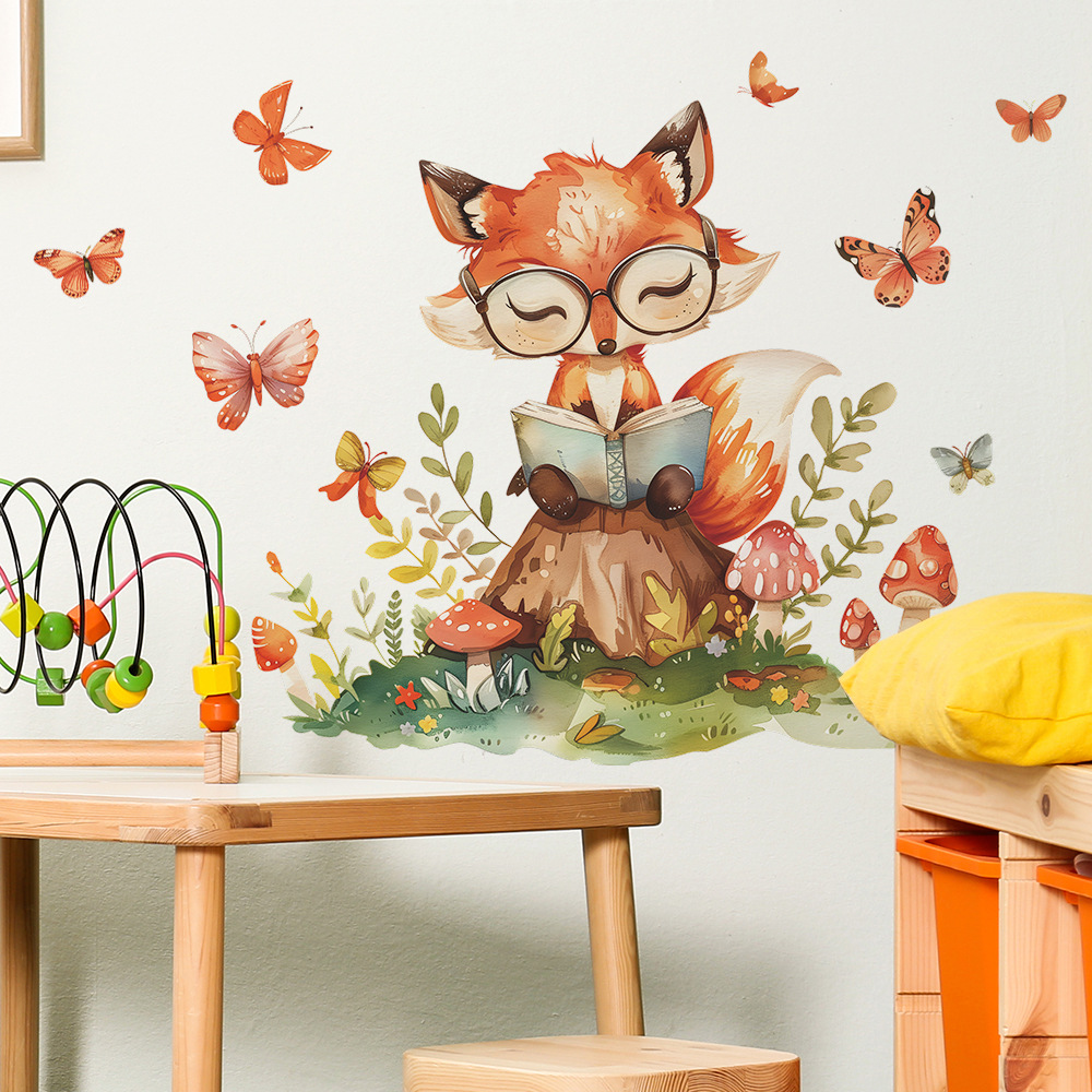 새로운 fun-e79 만화 여우 독서 어린이 방 유치원 벽 미화 벽 스티커 도매 자기 접착