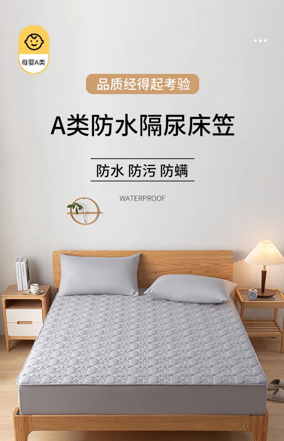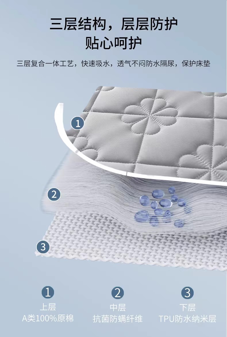 • 고전적인 방수 침대 모자-회색 [A 급 모성 및 유아 방수 소변 장벽]]