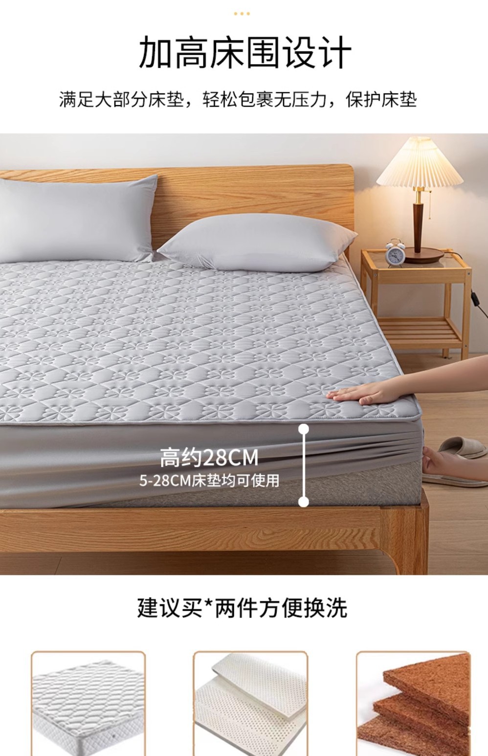 • 다이아몬드 격자 방수 침대 모자-신사 회색 [모성 및 유아 등급 방수 소변 장벽 클래스]]