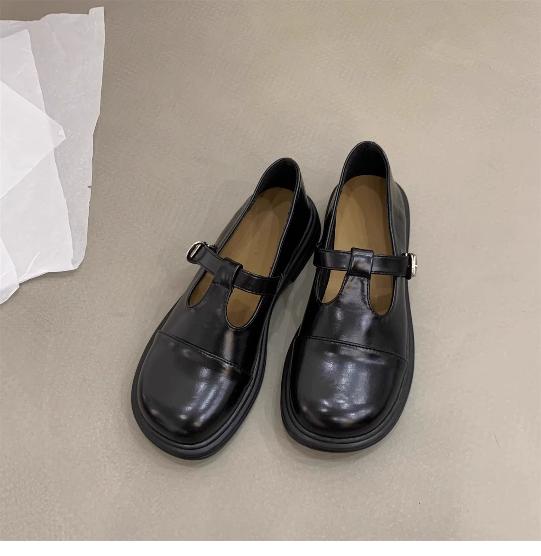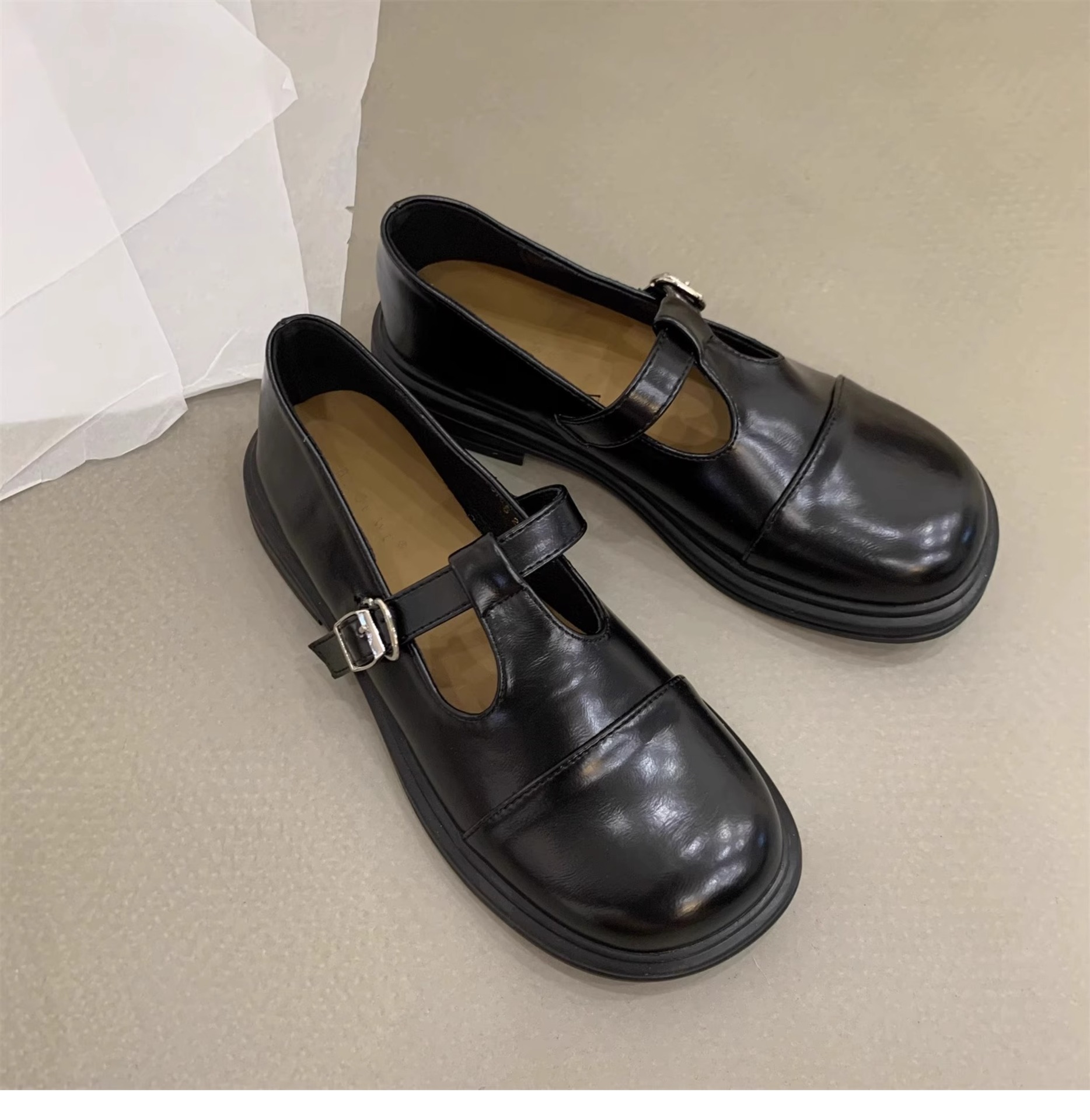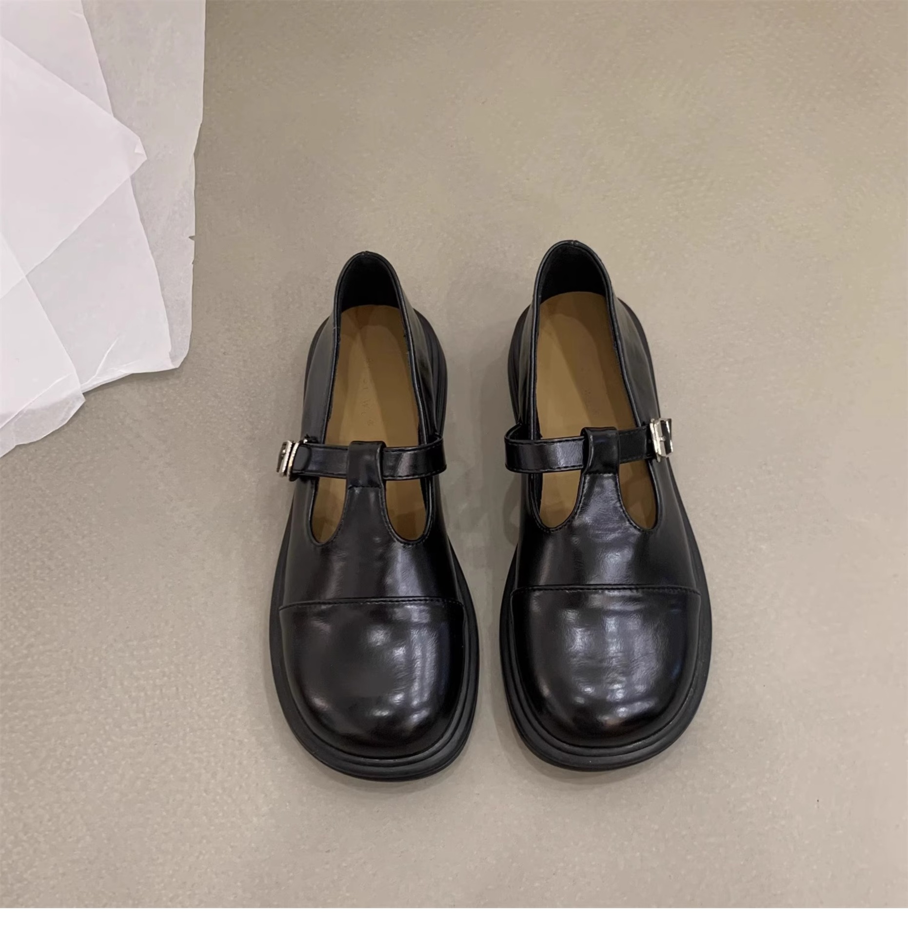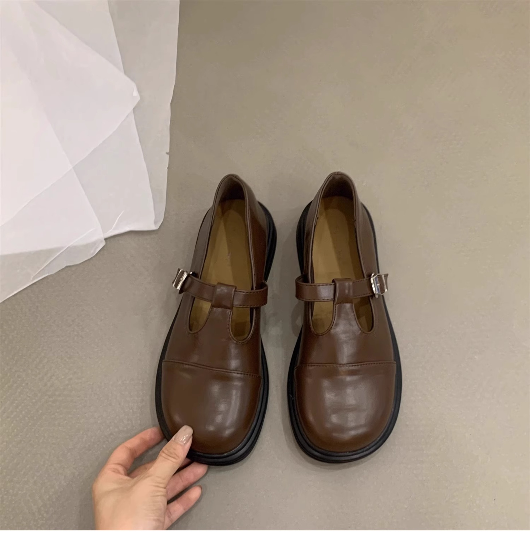 대형 여성 신발 41-43 사이즈 영국 가죽 신발 여성 한국어 버전의 복고풍 둥근 발가락 편평한 메리 제인 신발스토어 가기