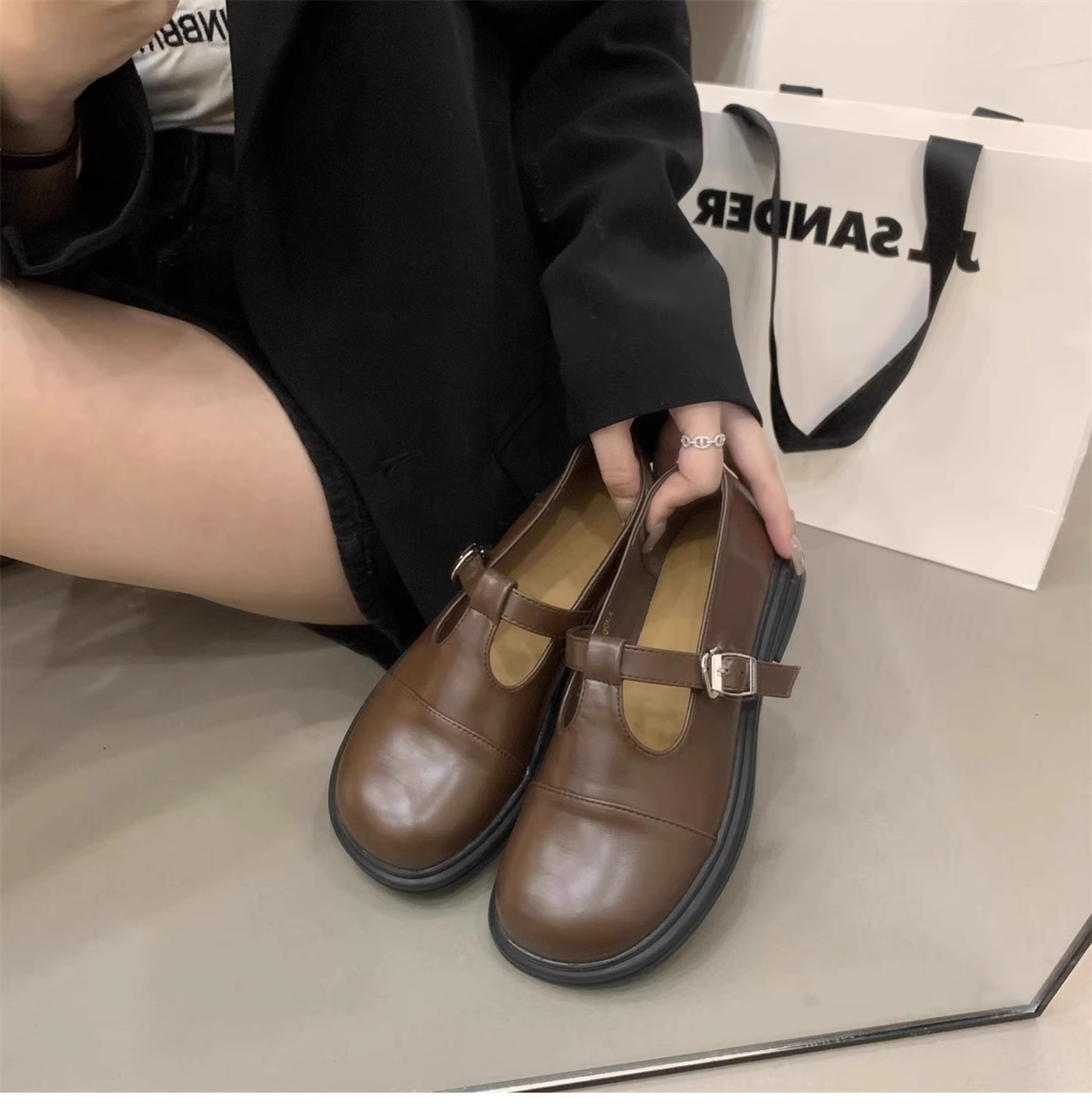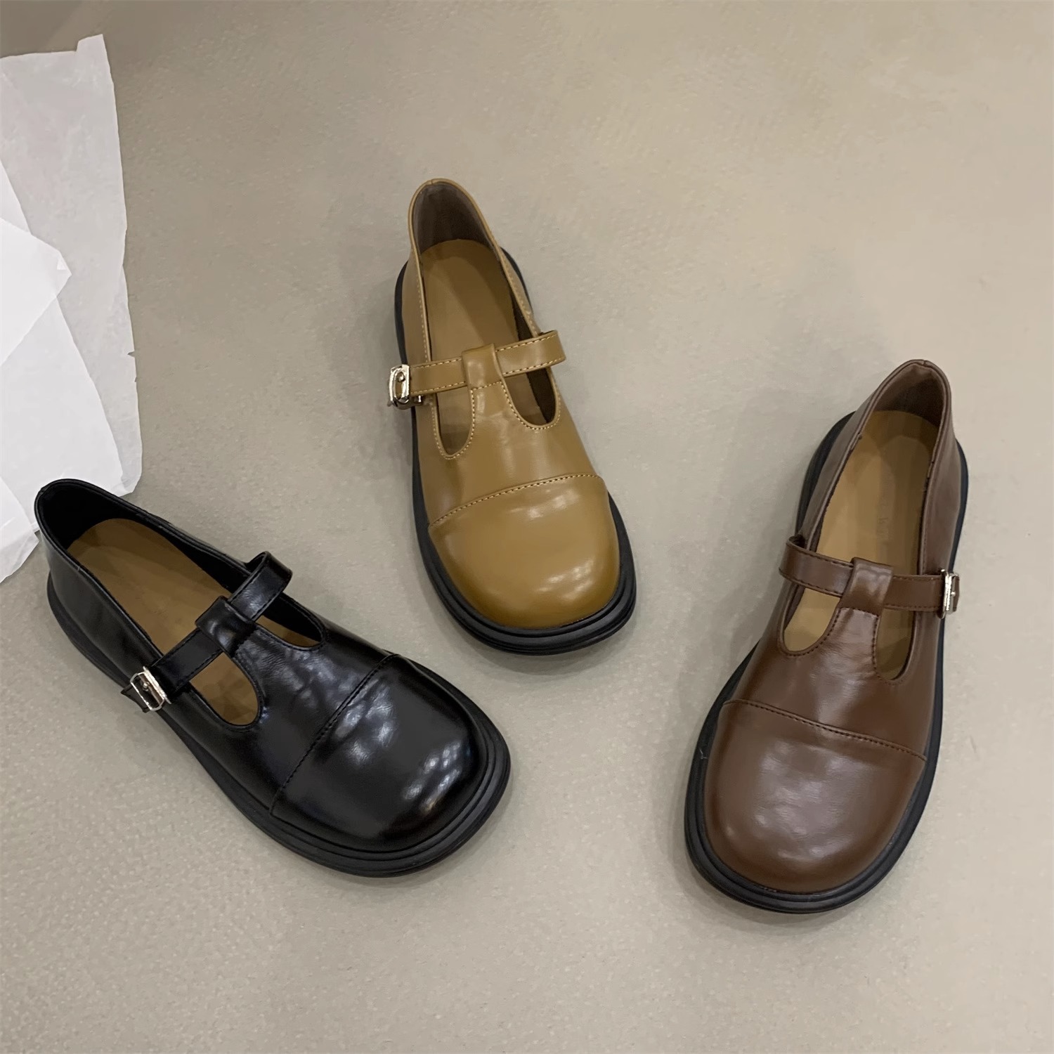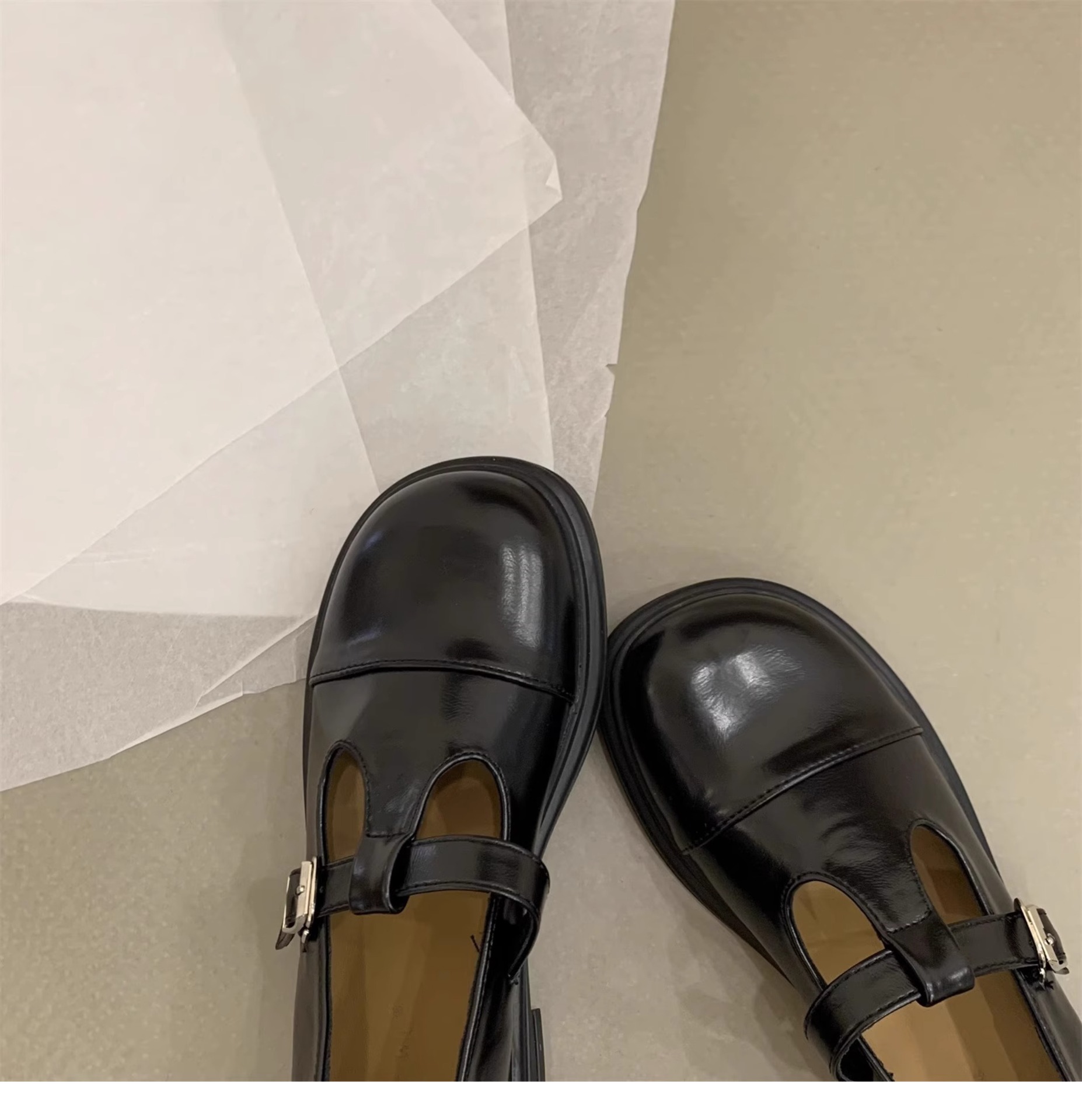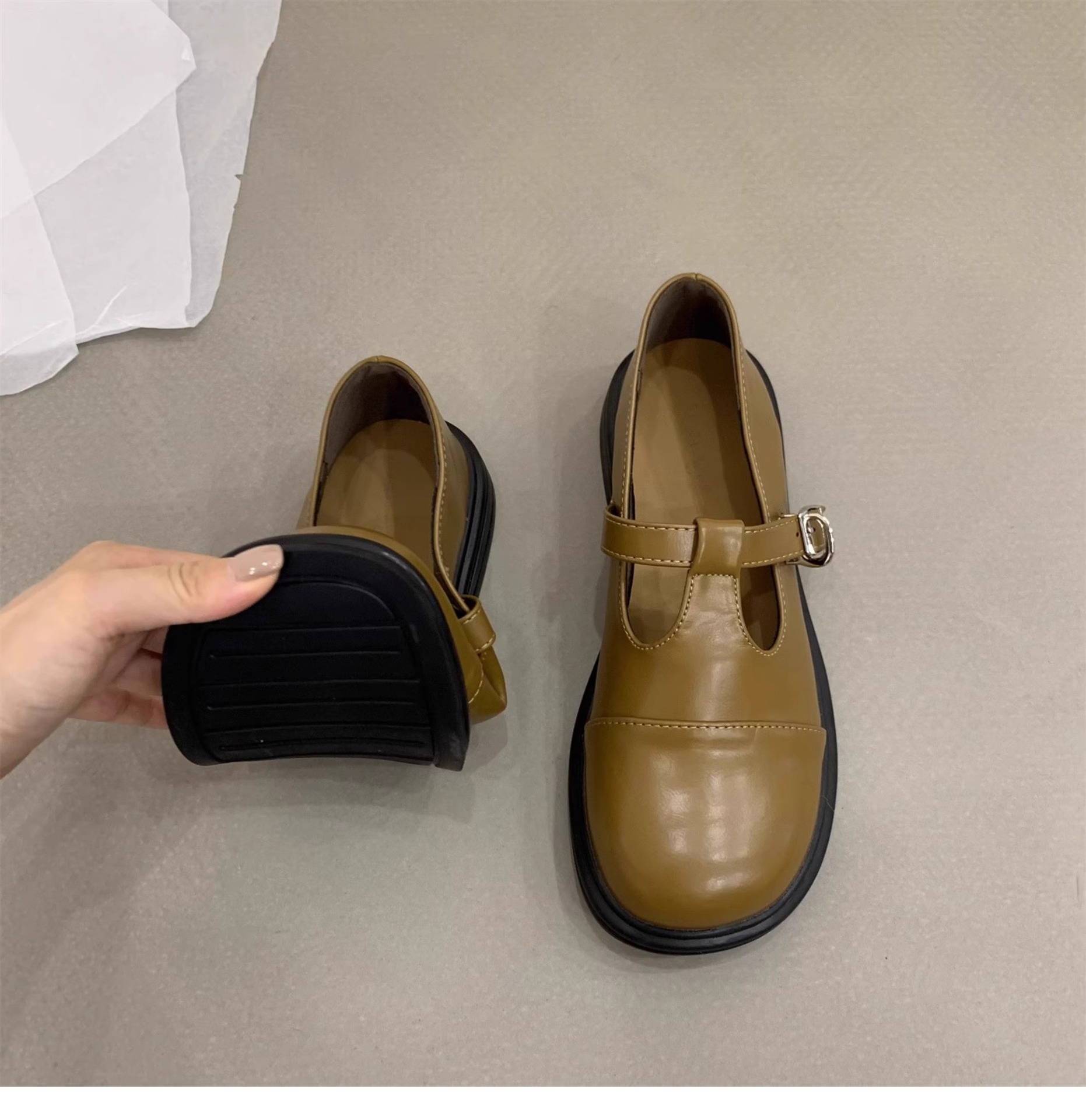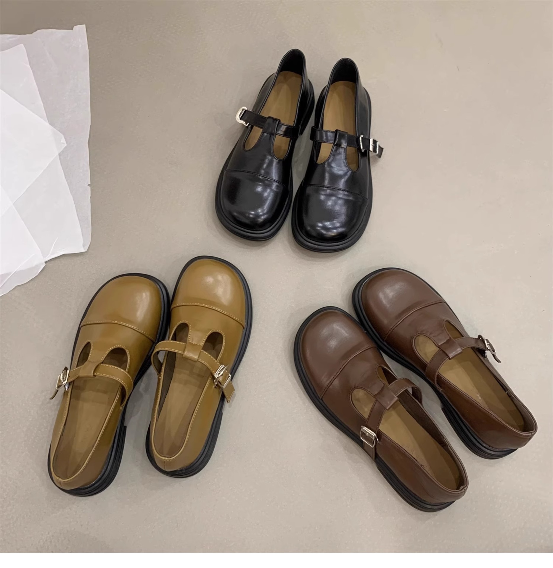대형 여성 신발 41-43 사이즈 영국 가죽 신발 여성 한국어 버전의 복고풍 둥근 발가락 편평한 메리 제인 신발스토어 가기