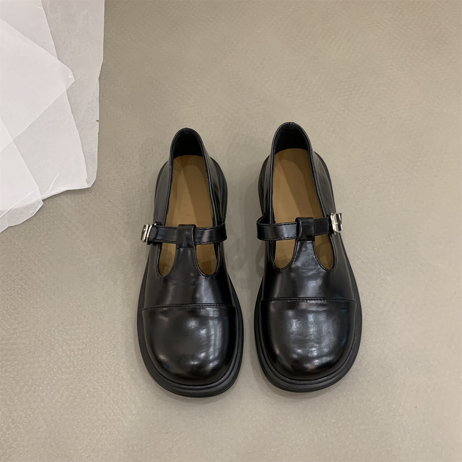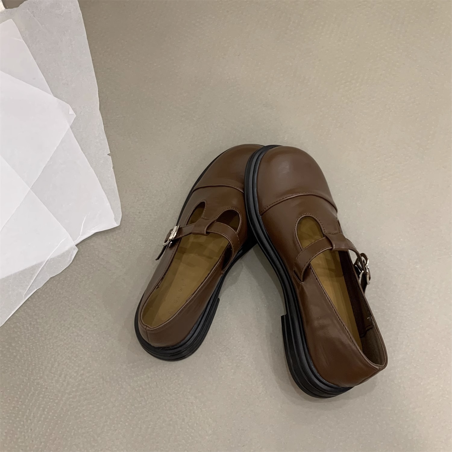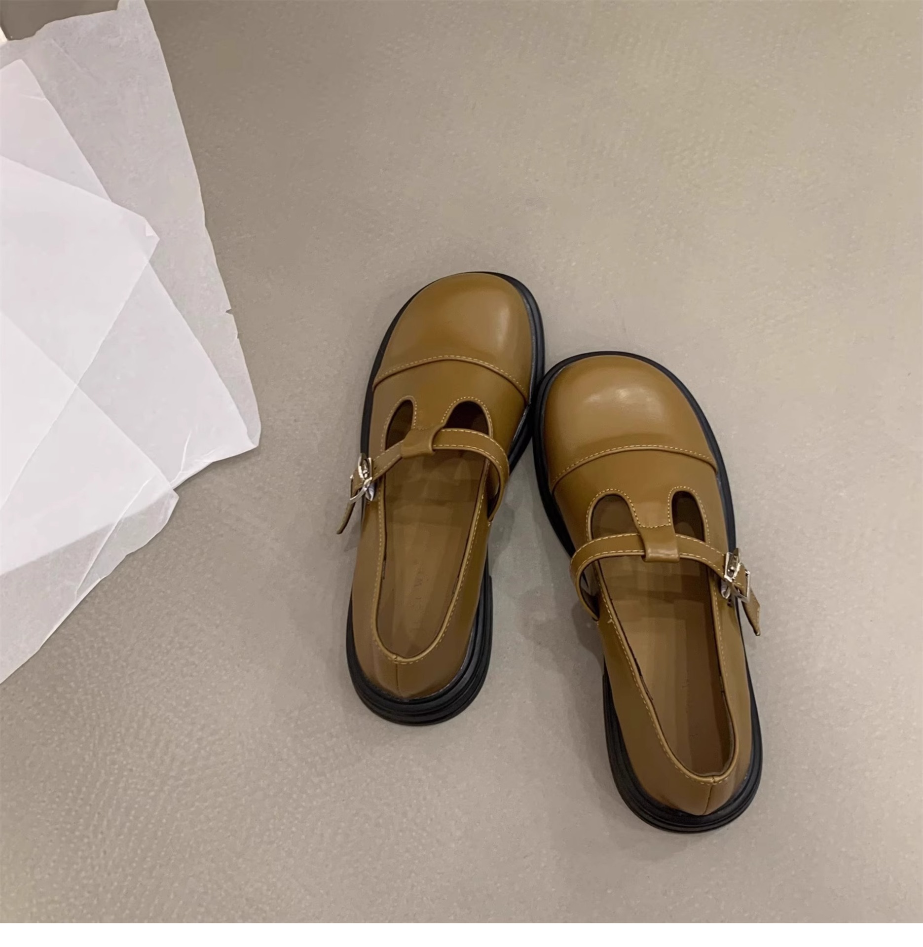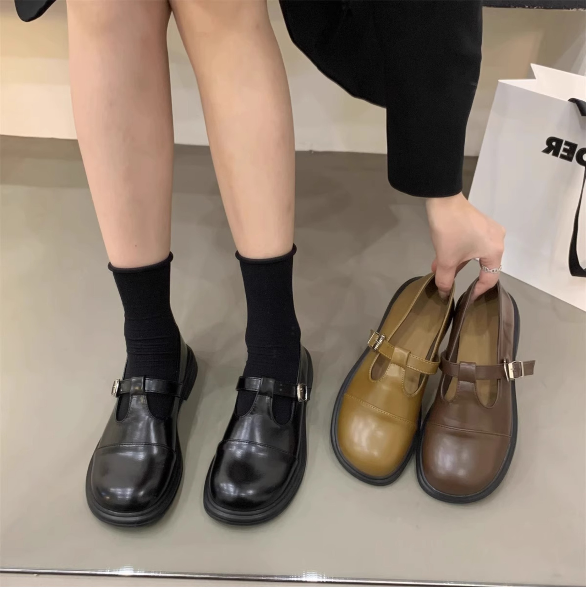 대형 여성 신발 41-43 사이즈 영국 가죽 신발 여성 한국어 버전의 복고풍 둥근 발가락 편평한 메리 제인 신발스토어 가기