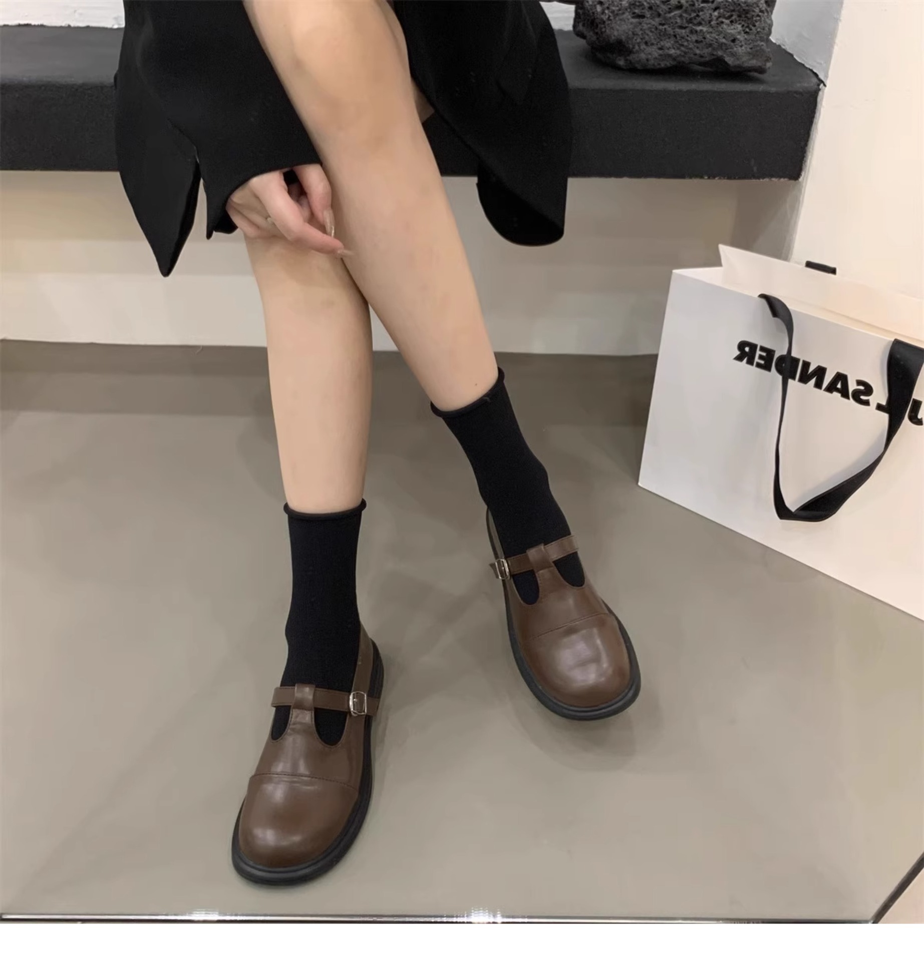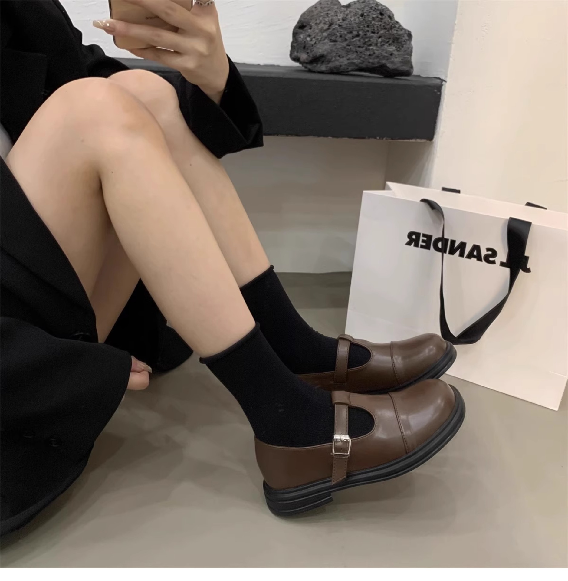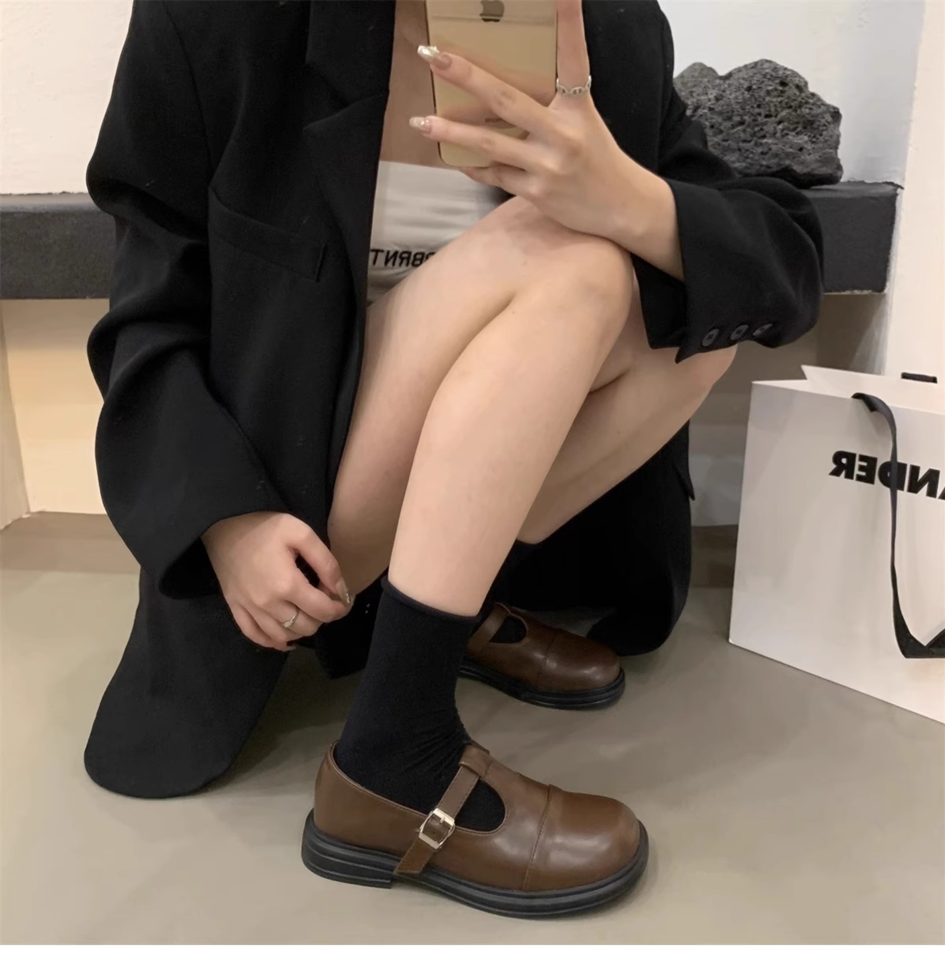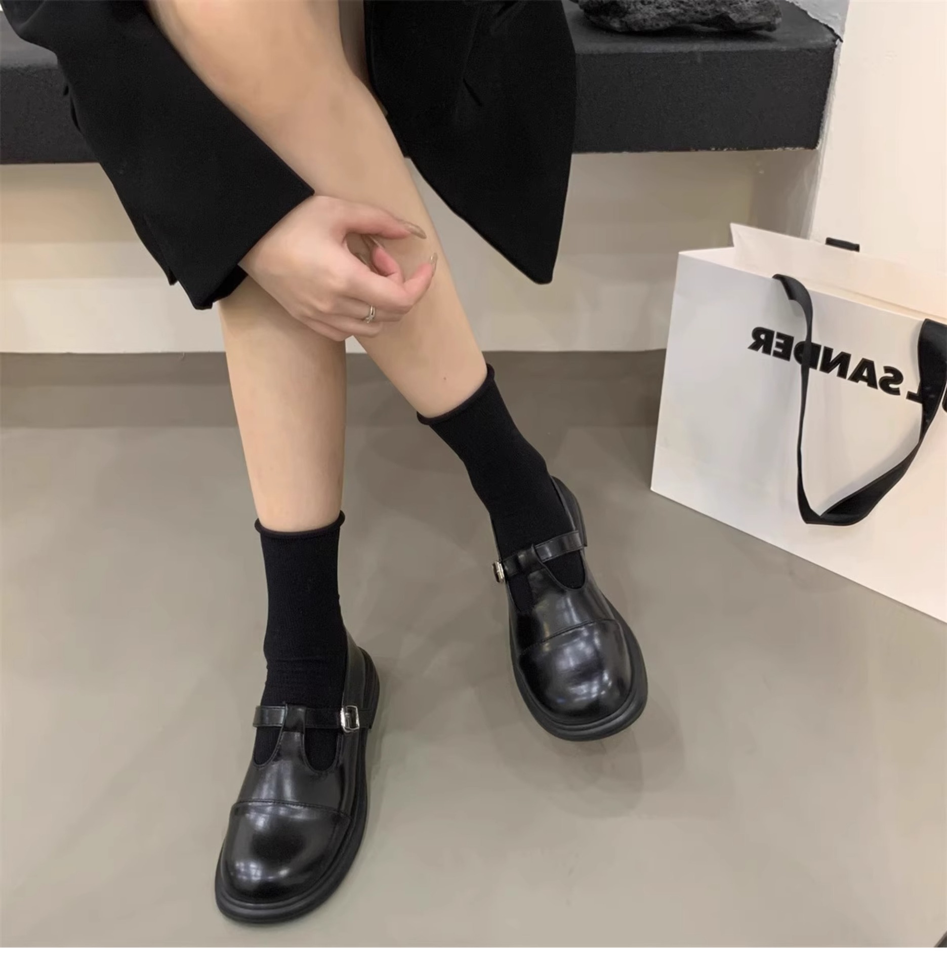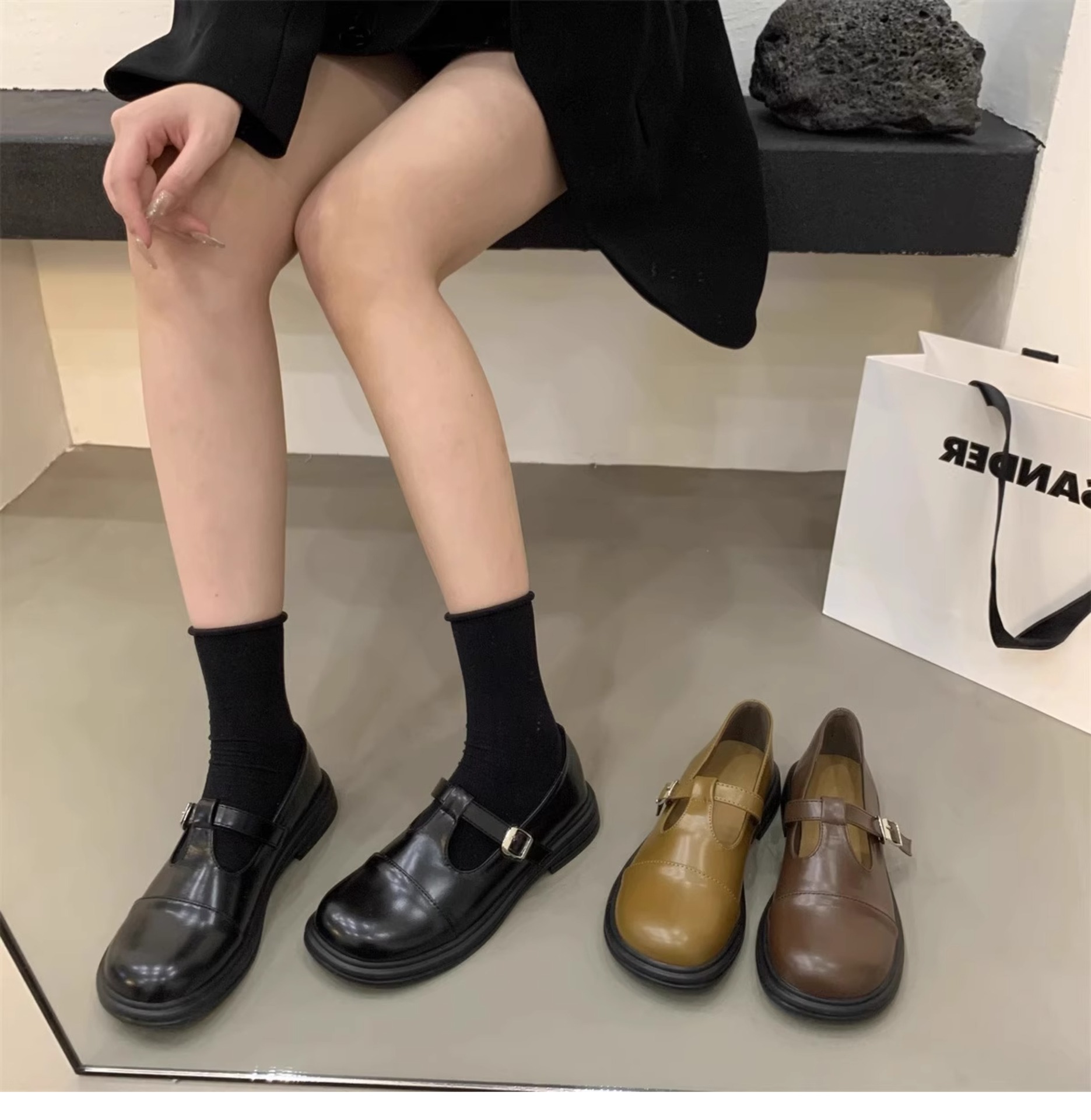 대형 여성 신발 41-43 사이즈 영국 가죽 신발 여성 한국어 버전의 복고풍 둥근 발가락 편평한 메리 제인 신발스토어 가기