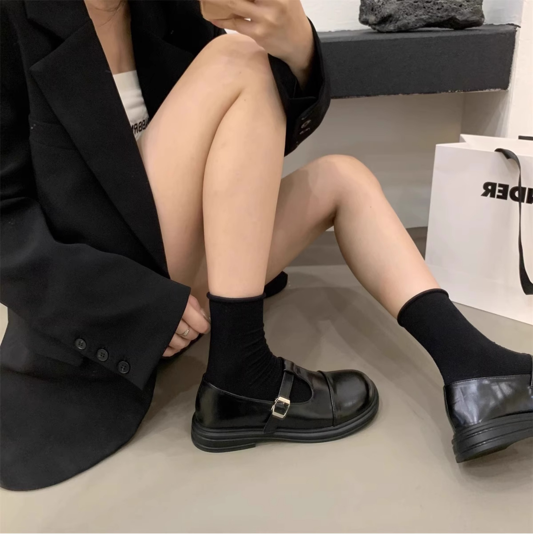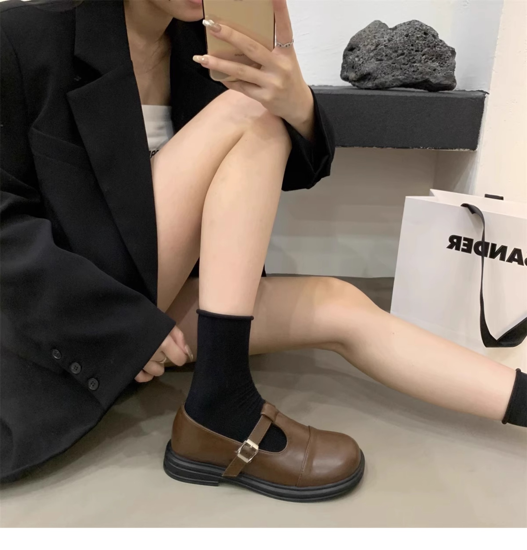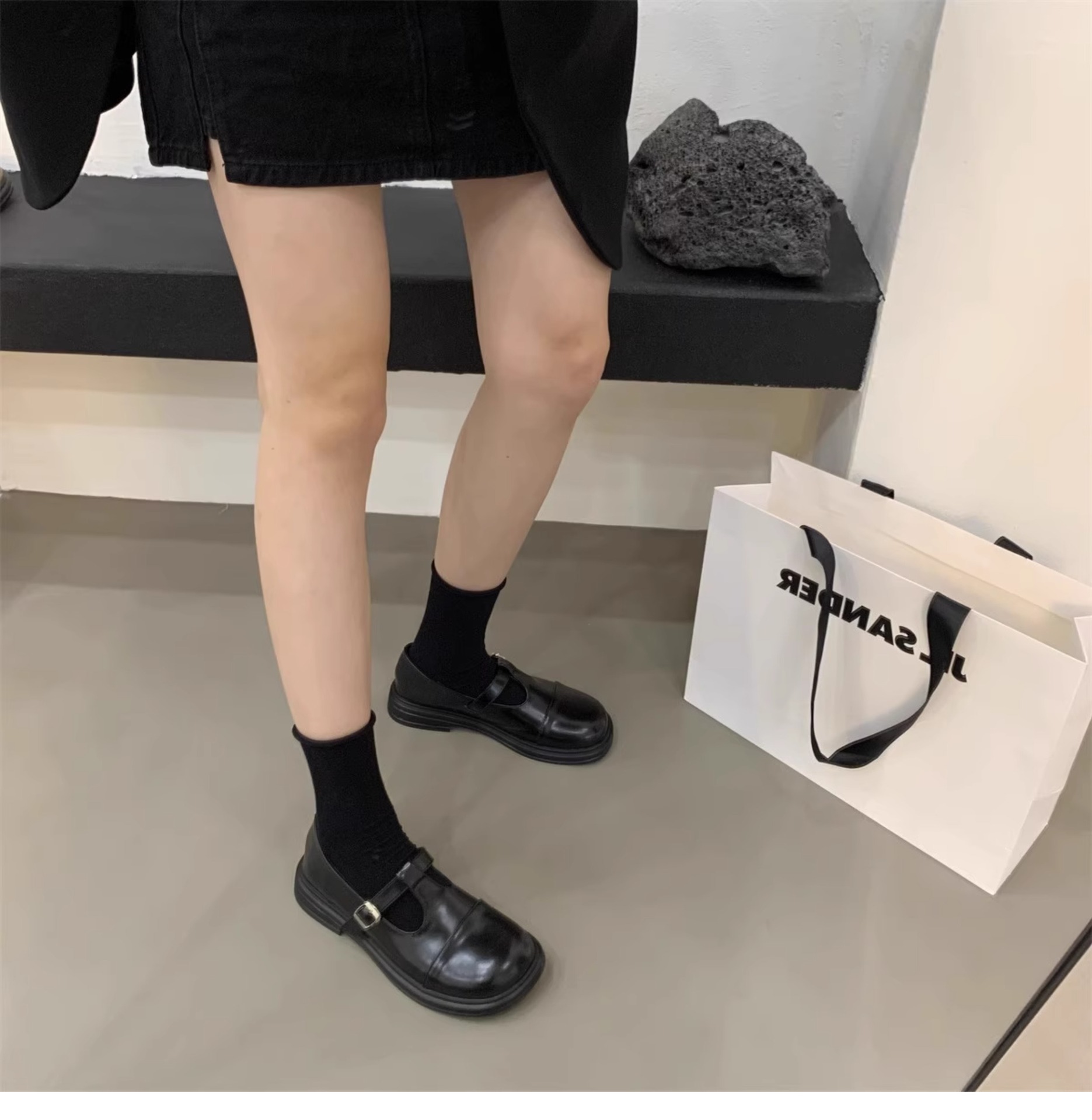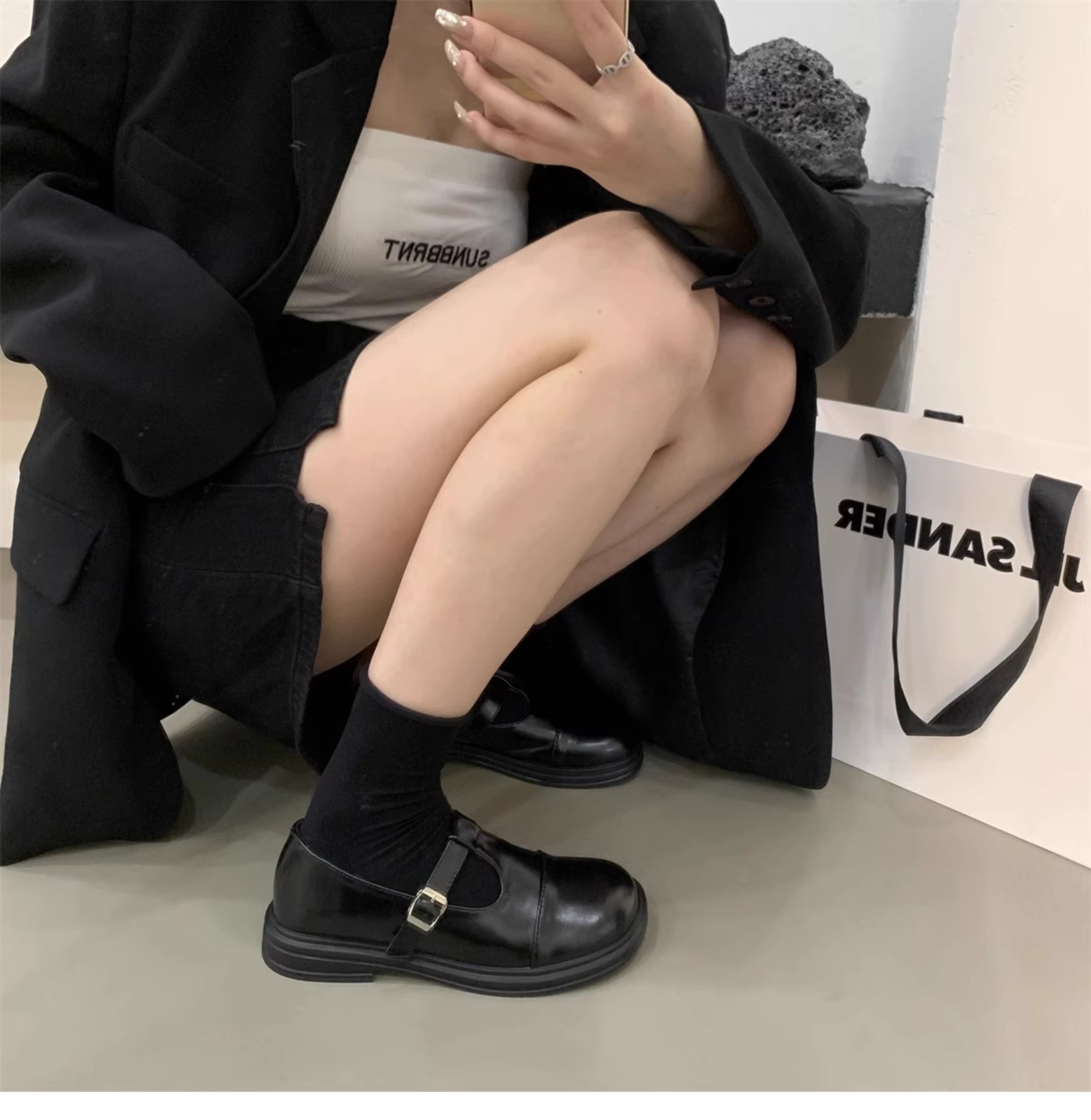 대형 여성 신발 41-43 사이즈 영국 가죽 신발 여성 한국어 버전의 복고풍 둥근 발가락 편평한 메리 제인 신발스토어 가기