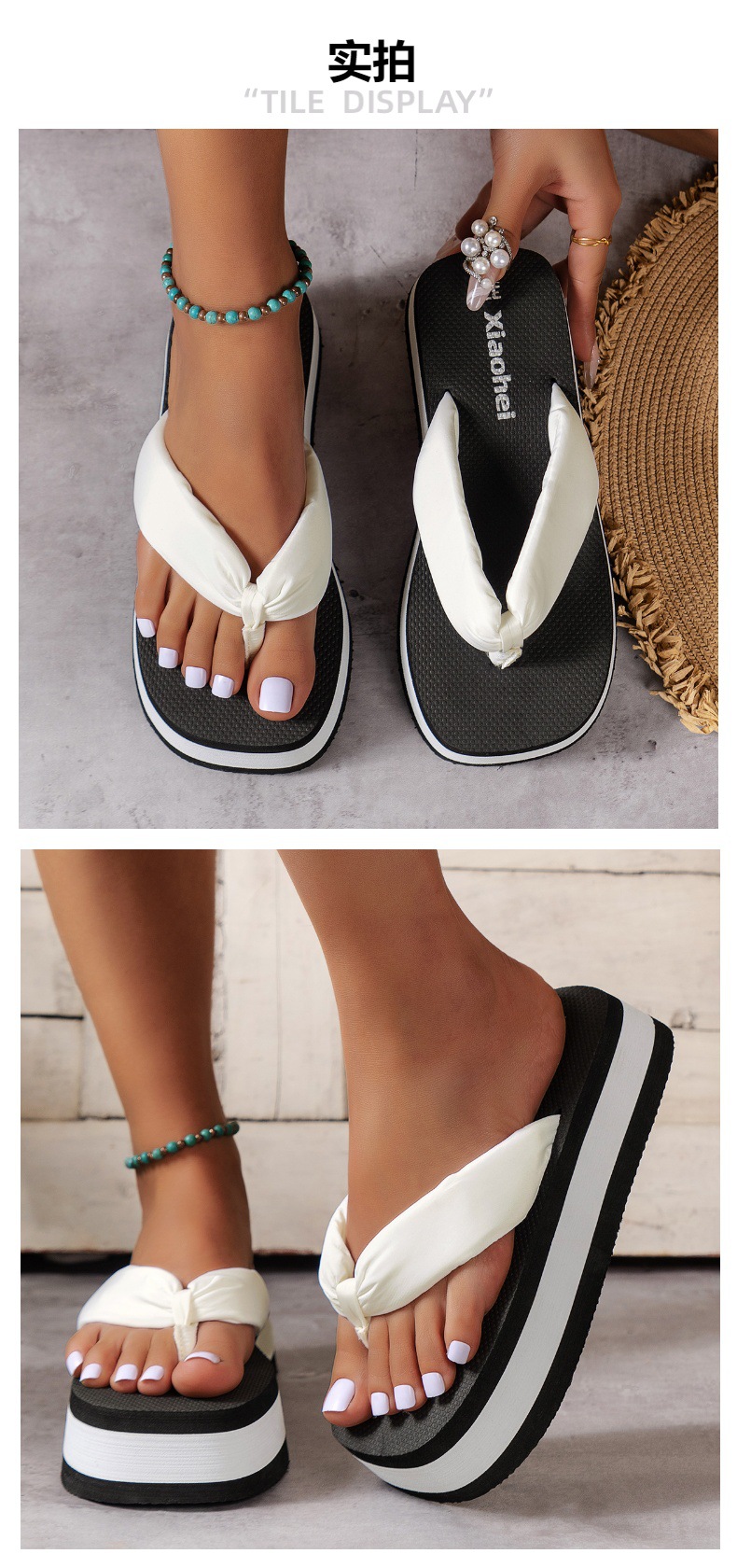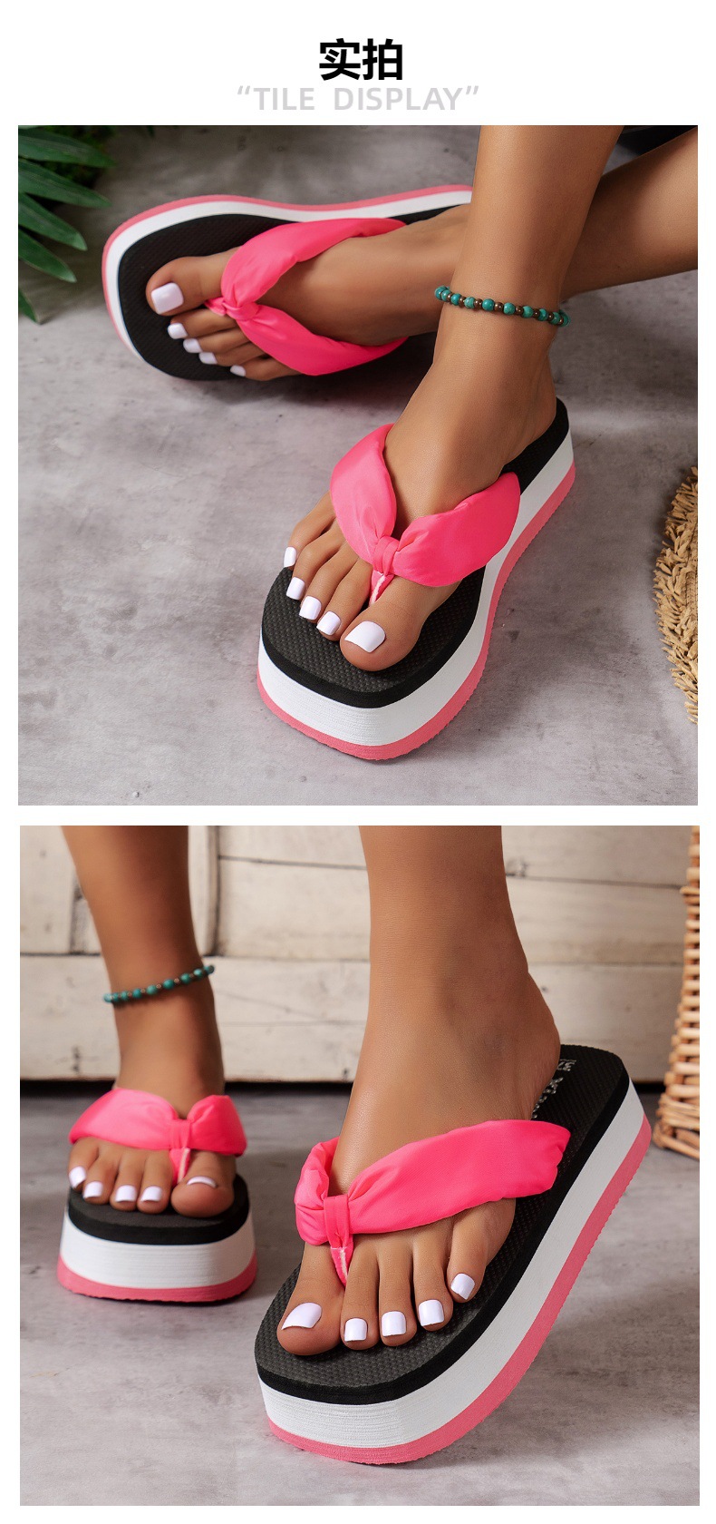 여성용 새 스타일 슬리퍼, 두꺼운 밑창, 고급 여름 심플 도파민 대비 색상 패션 샌들스토어 가기