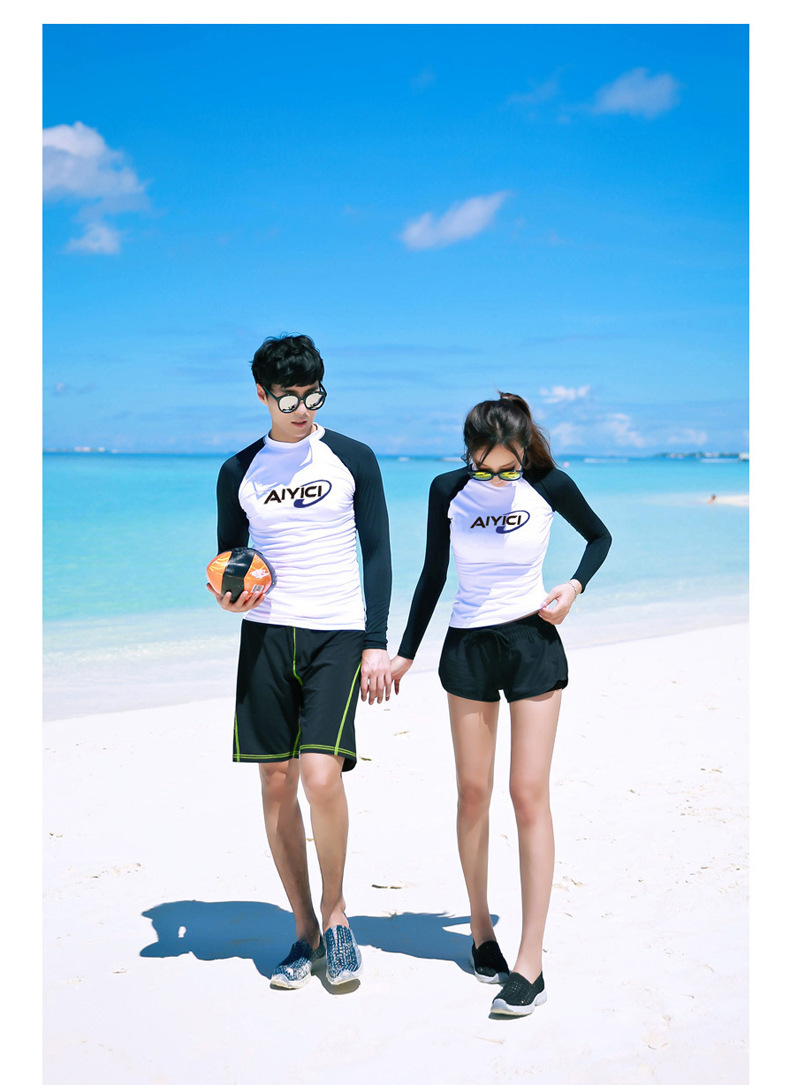 커플의 서퍼 세트 통통한 소녀 대형 분할 다이빙 세트 긴 소매 복서 커플을위한 빠른 건조 해변 수영복