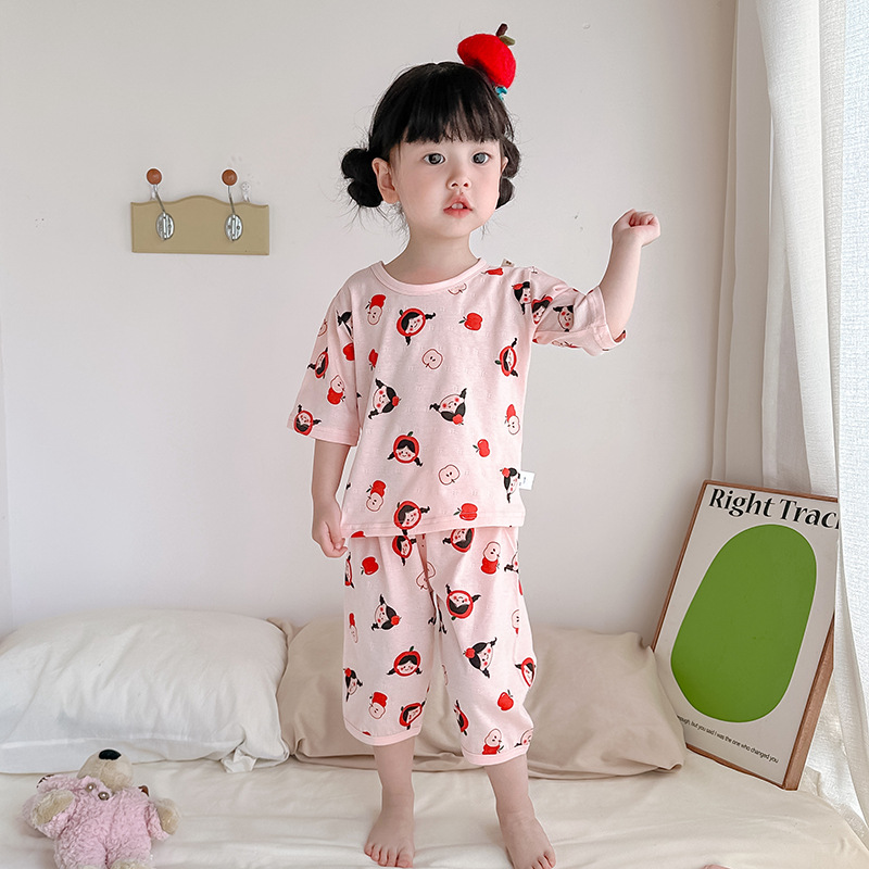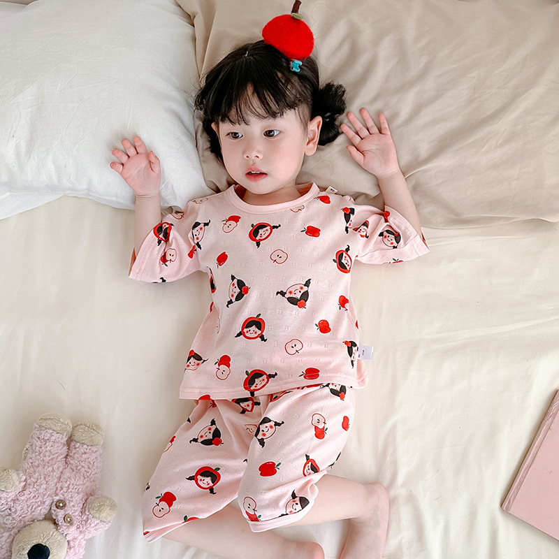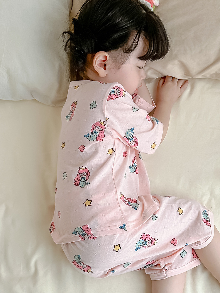 2025년 신상 여아 잠옷 여름 아동 순면 유아 홈웨어 세트 어린이 얇은 에어컨 옷 여자아이용스토어 가기