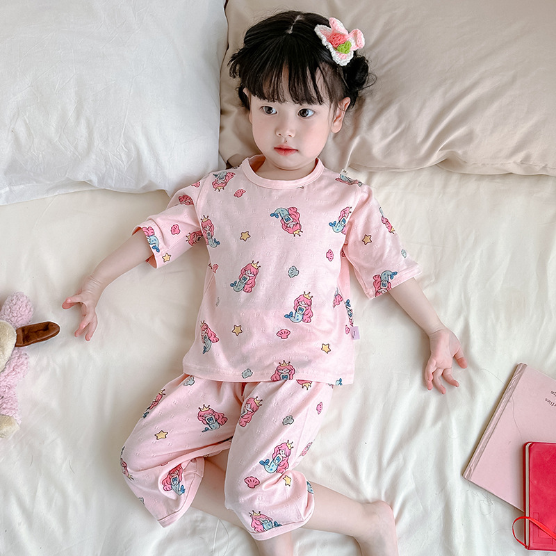2025년 신상 여아 잠옷 여름 아동 순면 유아 홈웨어 세트 어린이 얇은 에어컨 옷 여자아이용