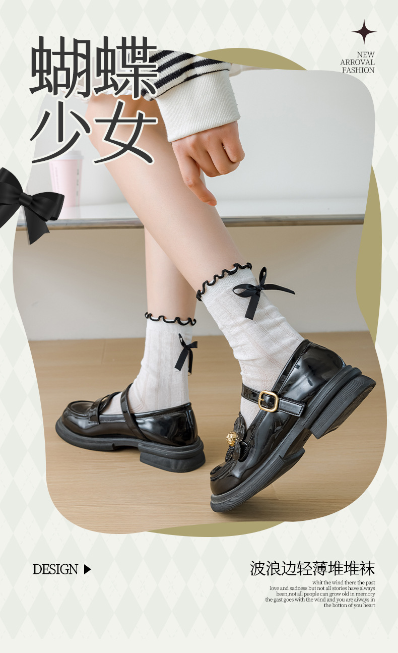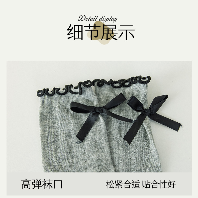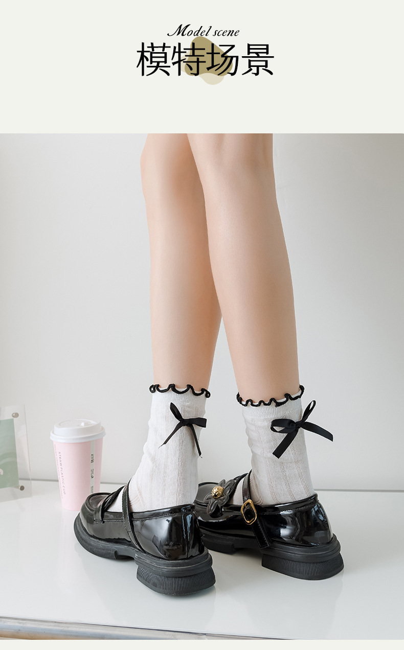 여성용 리본 양말, 얇은 종아리 중간 순면 양말, 학생 jk 여름용 작은 가죽 신발이 달린 일본식 레이스 면 스타킹스토어 가기