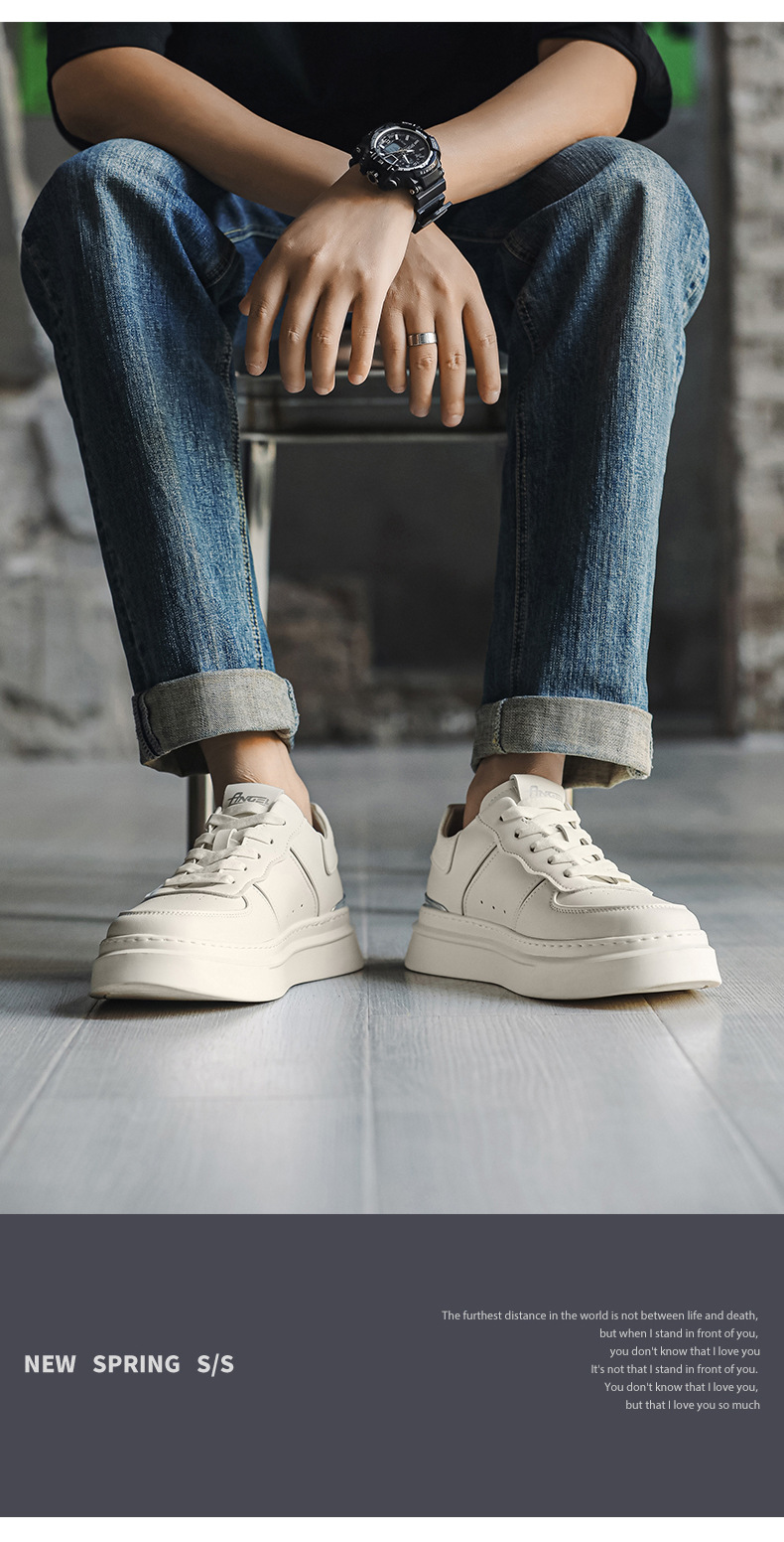 2024 봄과 여름 새로운 유행 올 매치 패셔너블 캐주얼 스니커즈 남자 한국 스타일 두꺼운 바닥 레이스 작은 흰색 신발 트렌디스토어 가기