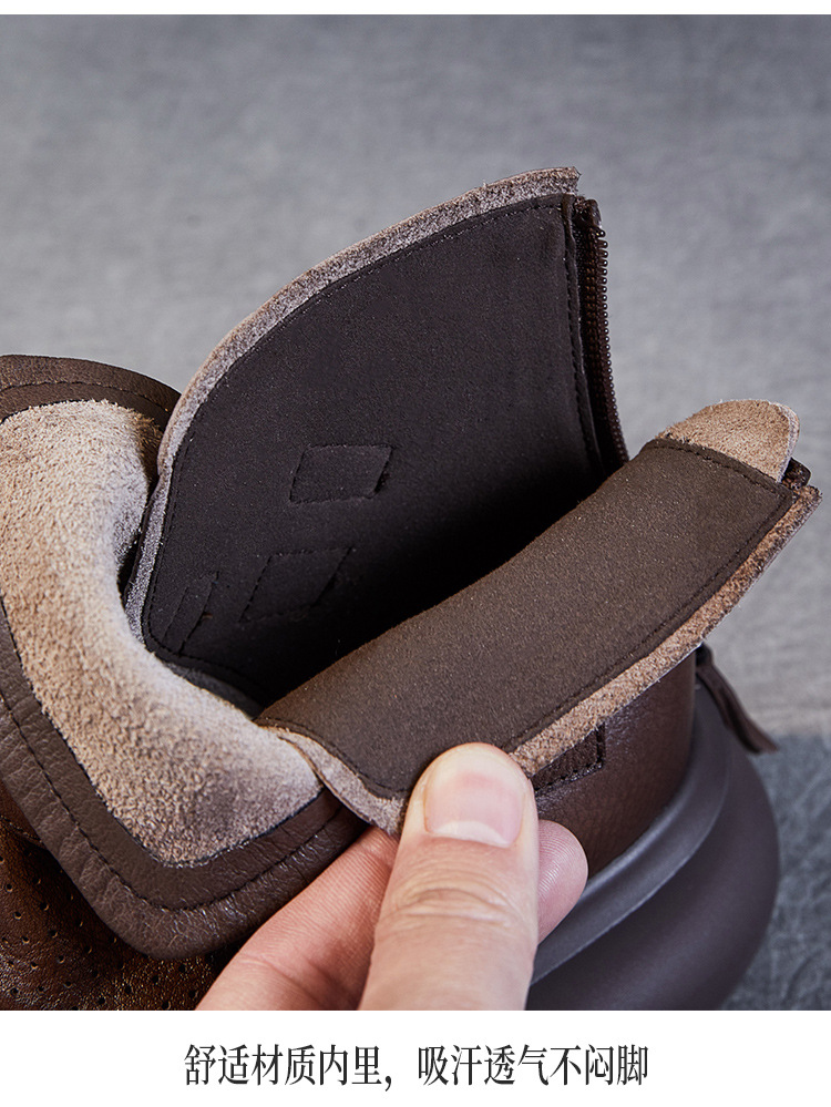 2024 봄과 여름 수제 정품 가죽 레트로 스타일 플랫 하이 바텀 벨크로 피쉬 머스 쿨 부츠 두꺼운 싱글 레이어 부츠 로마 부츠스토어 가기