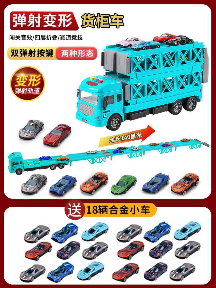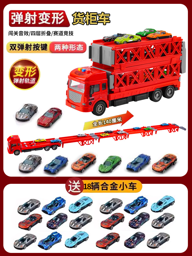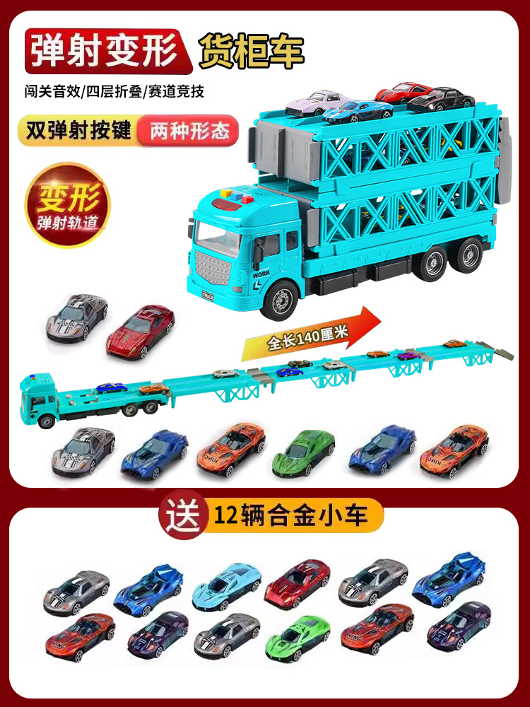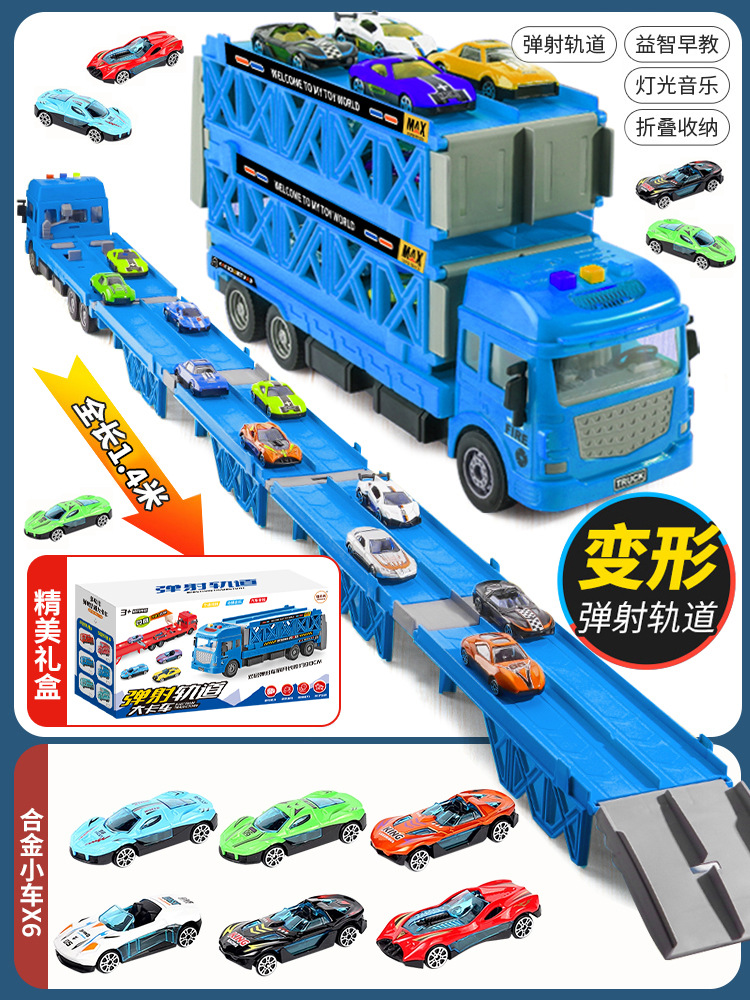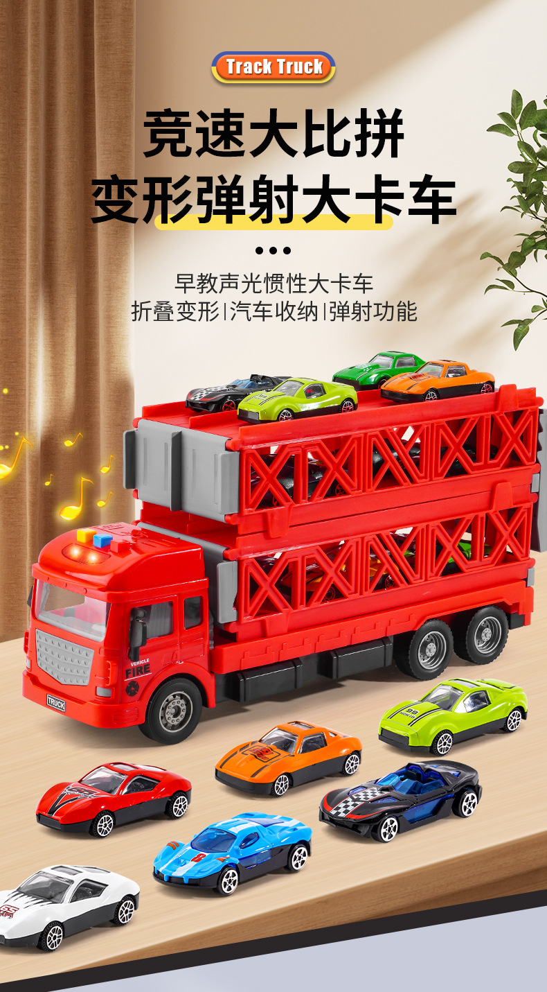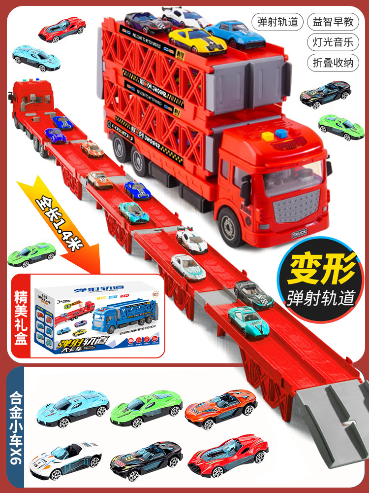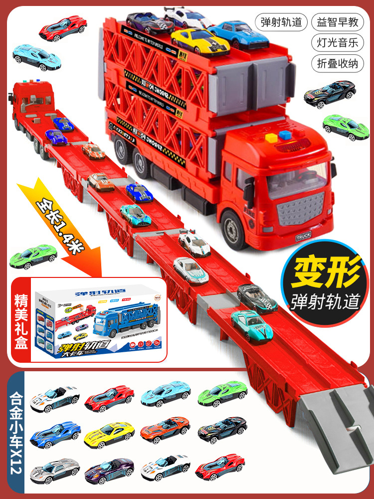 대형 변형 투석기 대형 트럭 접이식 저장 트랙 합금 경주 수송 관성 트럭 소년 장난감