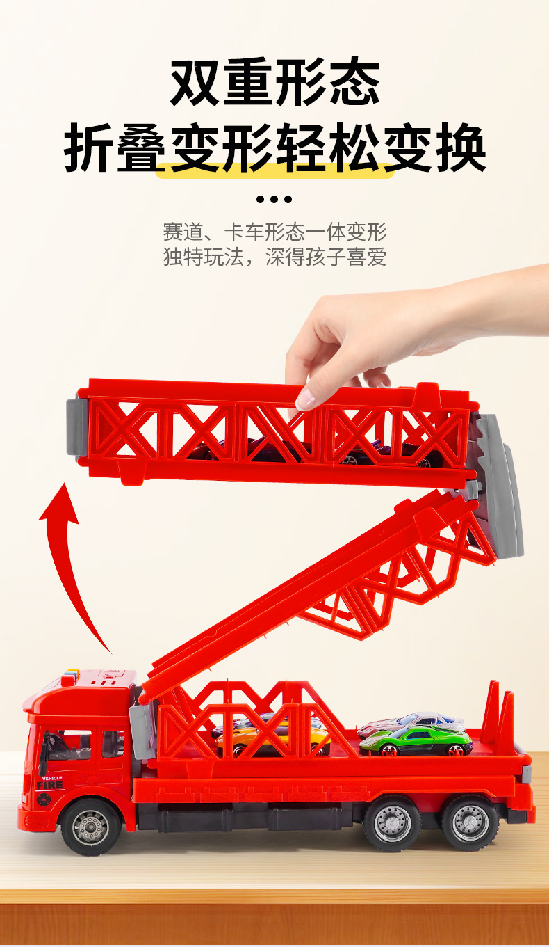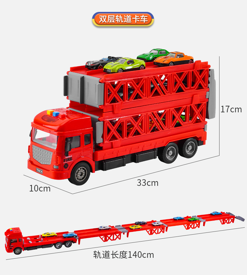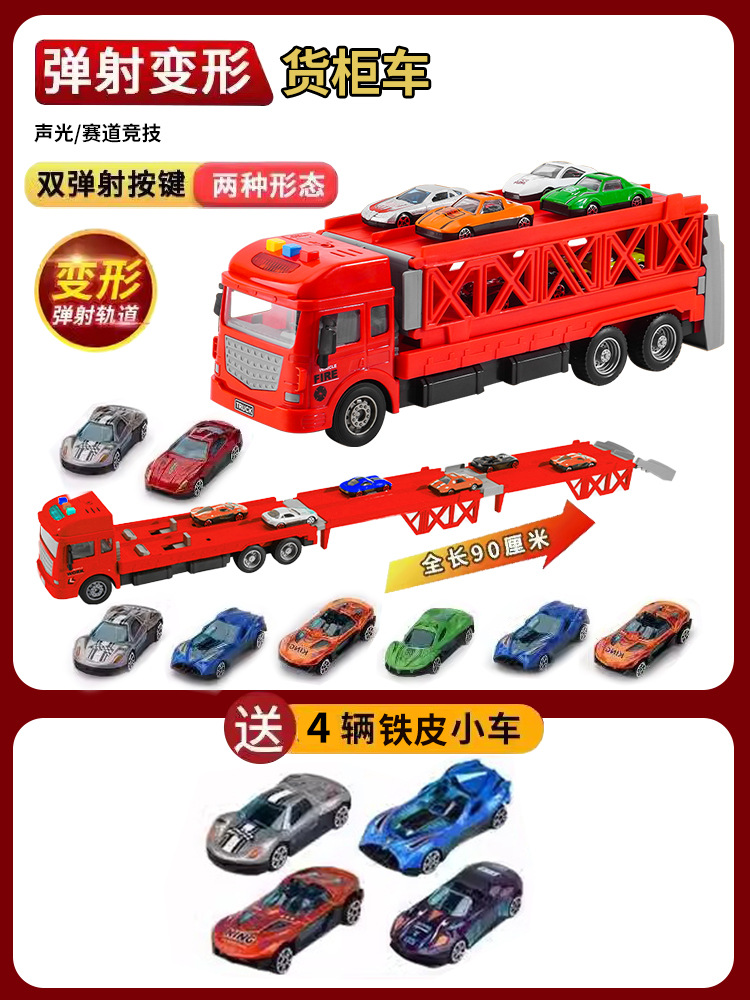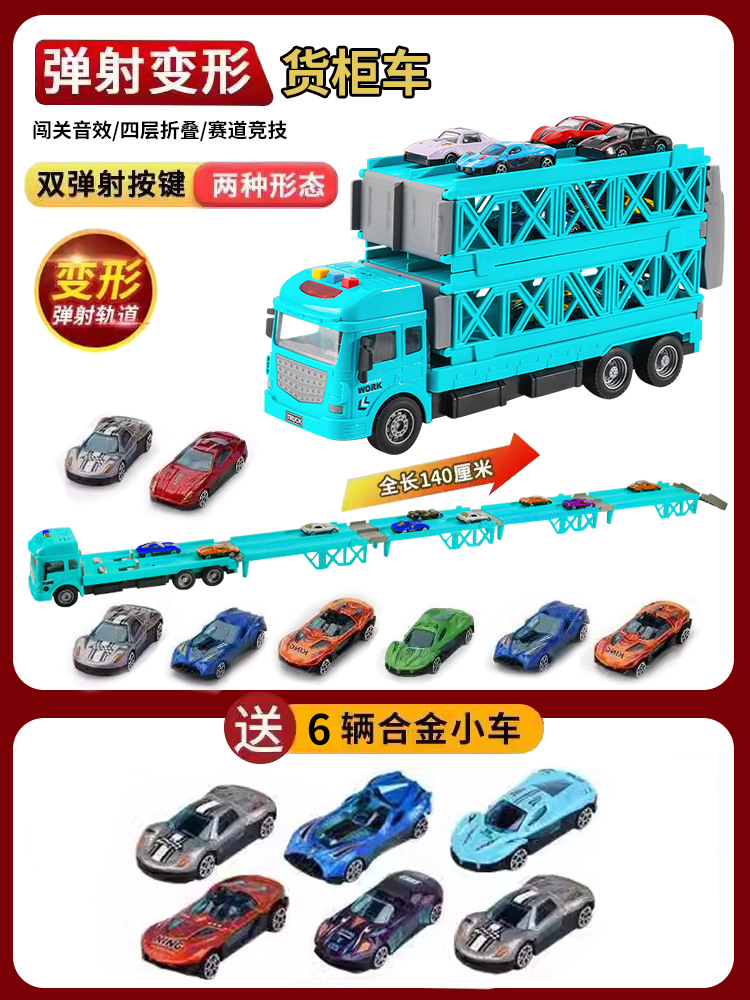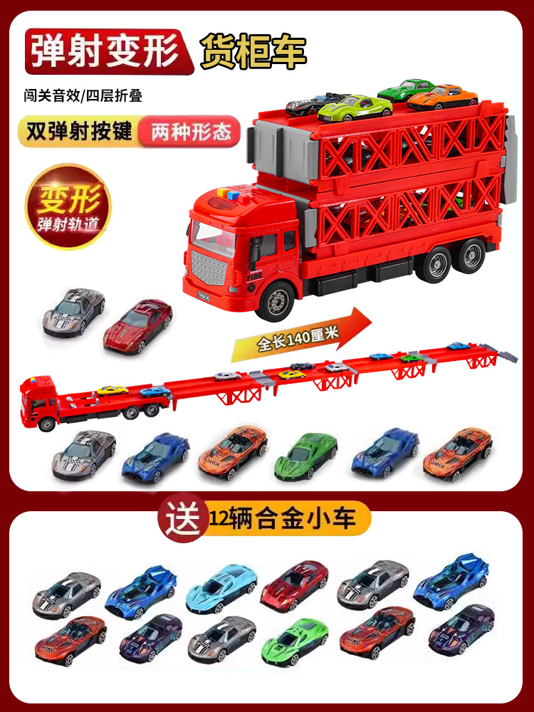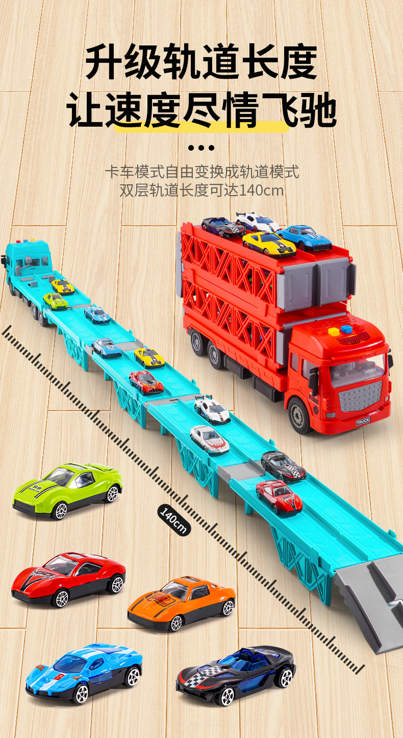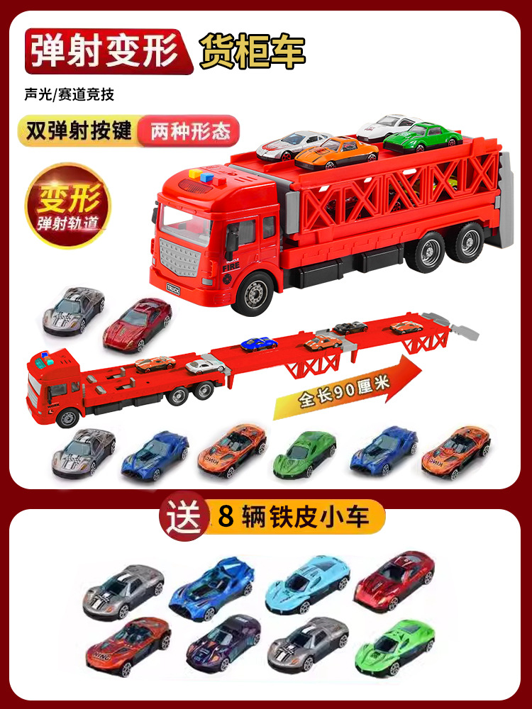 대형 변형 투석기 대형 트럭 접이식 저장 트랙 합금 경주 수송 관성 트럭 소년 장난감