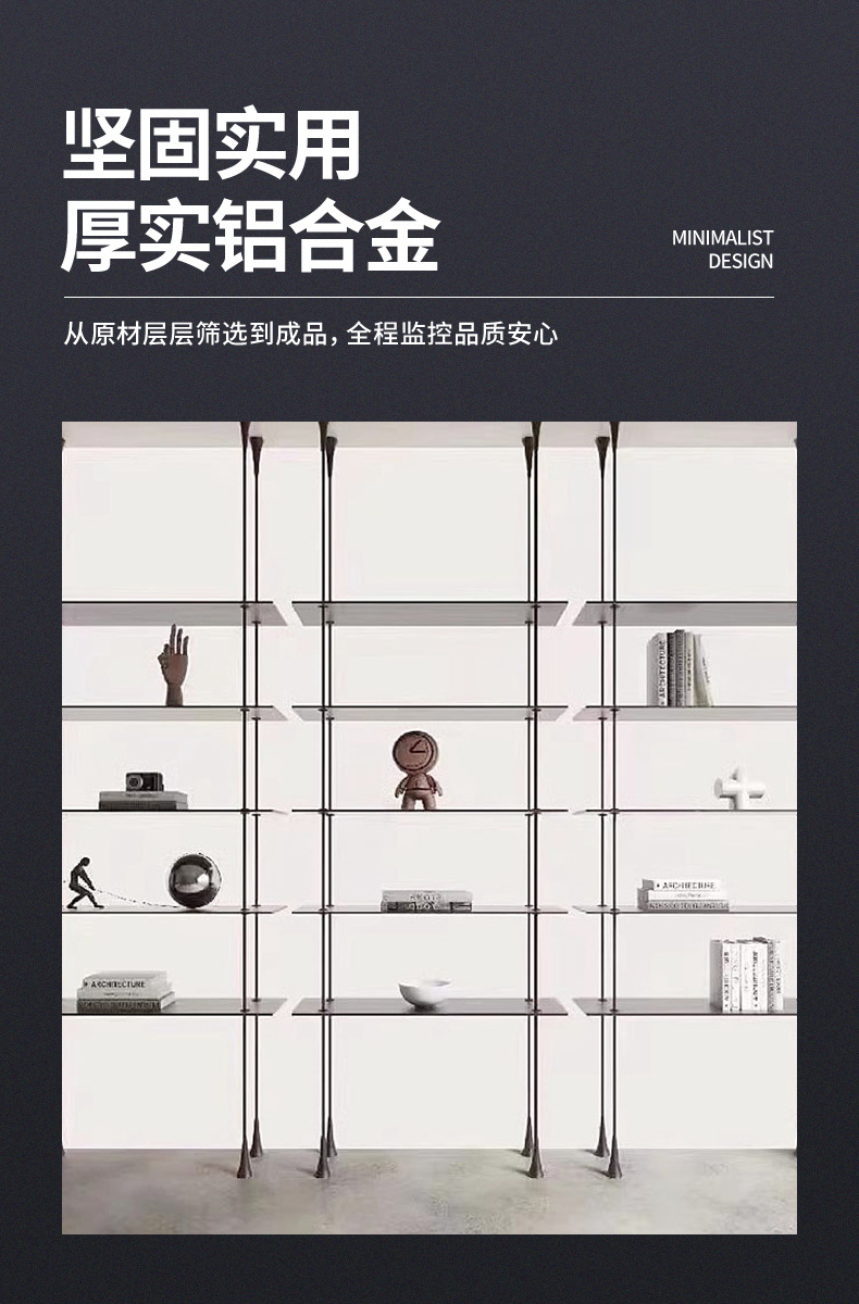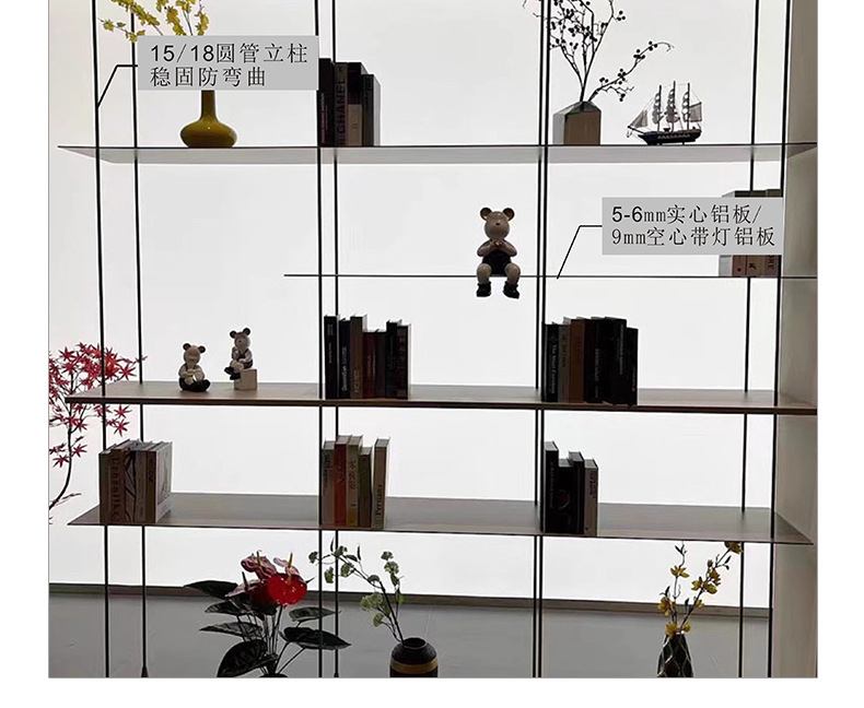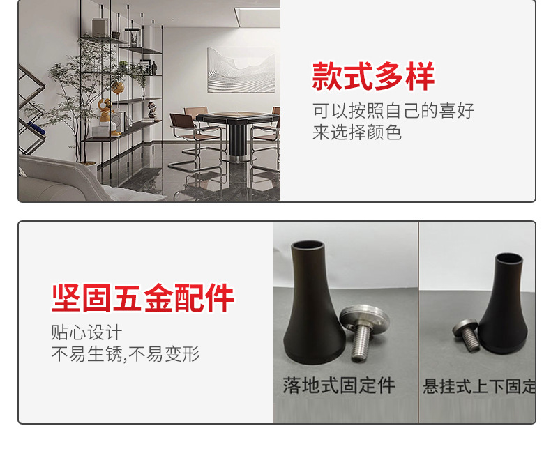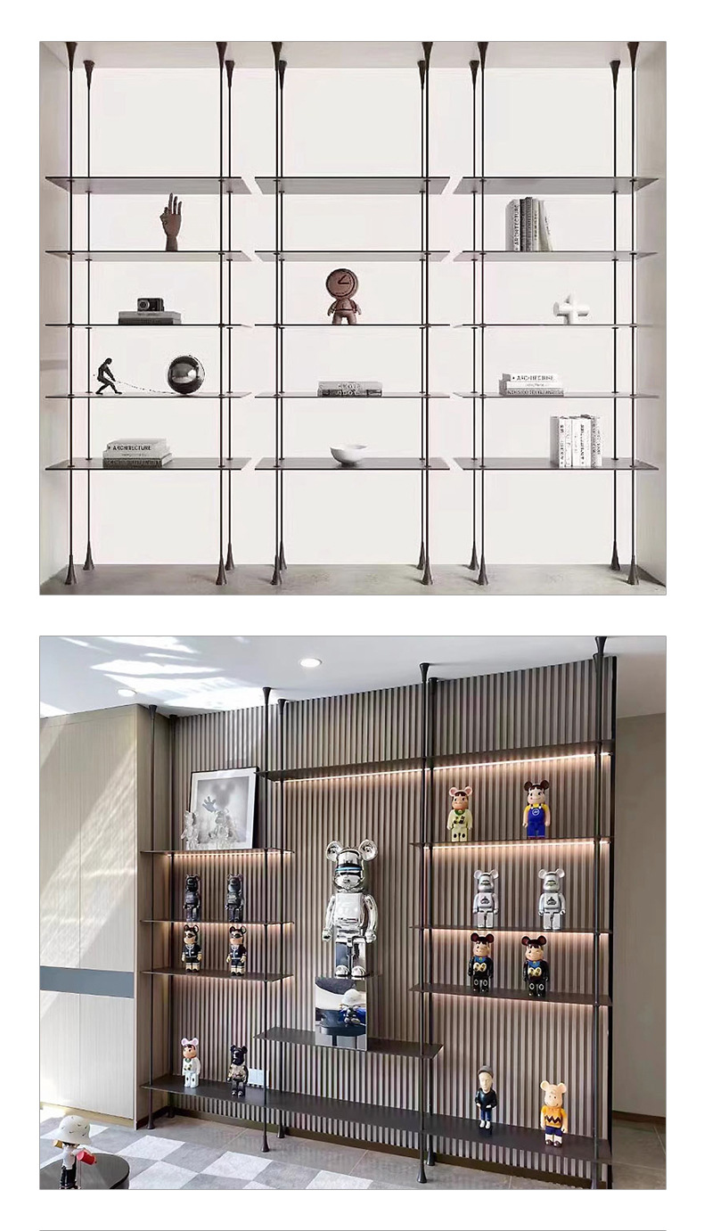 알루미늄 합금 기둥 선반 라이트 럭셔리 칸막이 플로어 스탠딩 책장 알루미늄 판 원형 튜브 걸이형 디스플레이 행거 액세서리