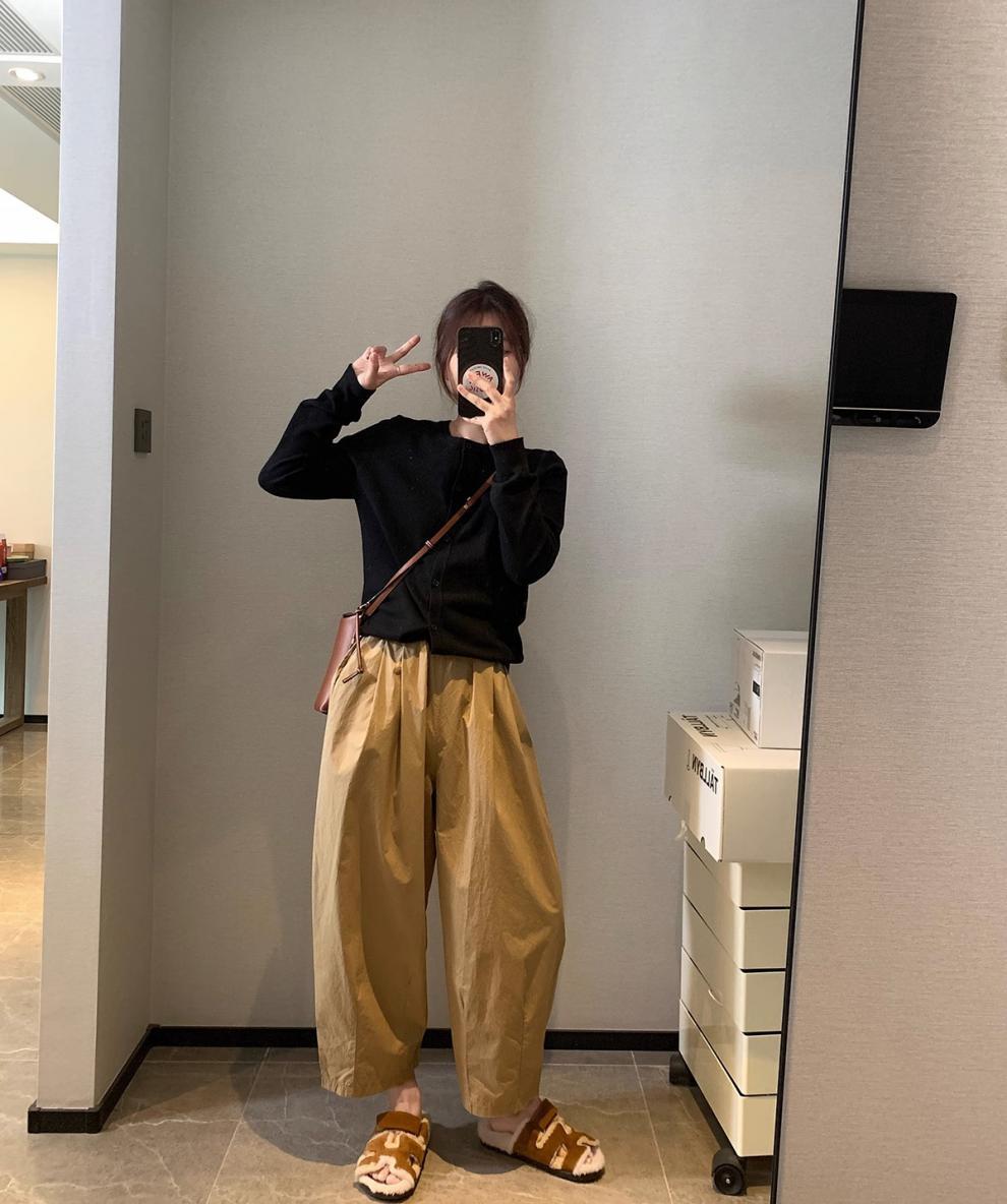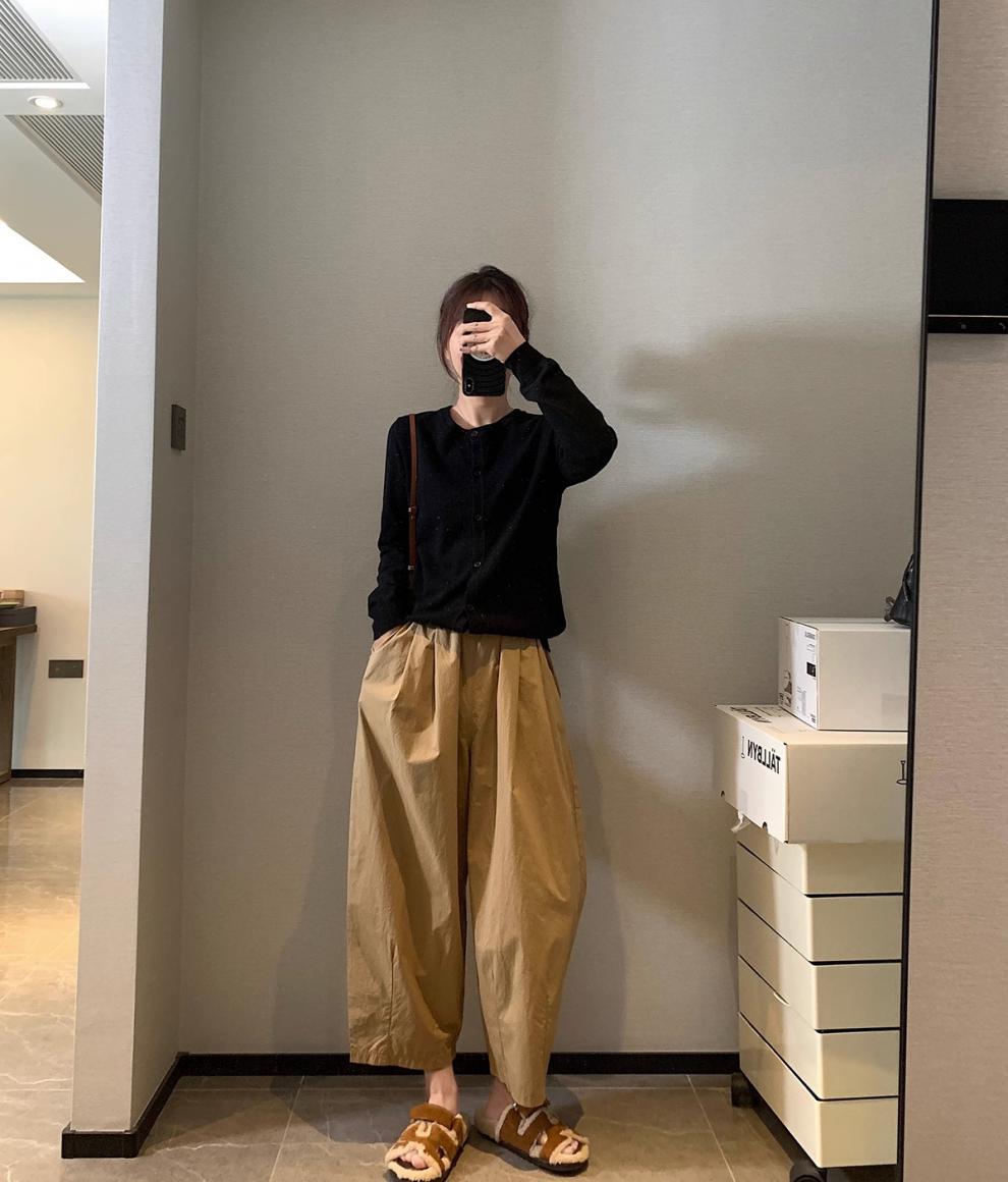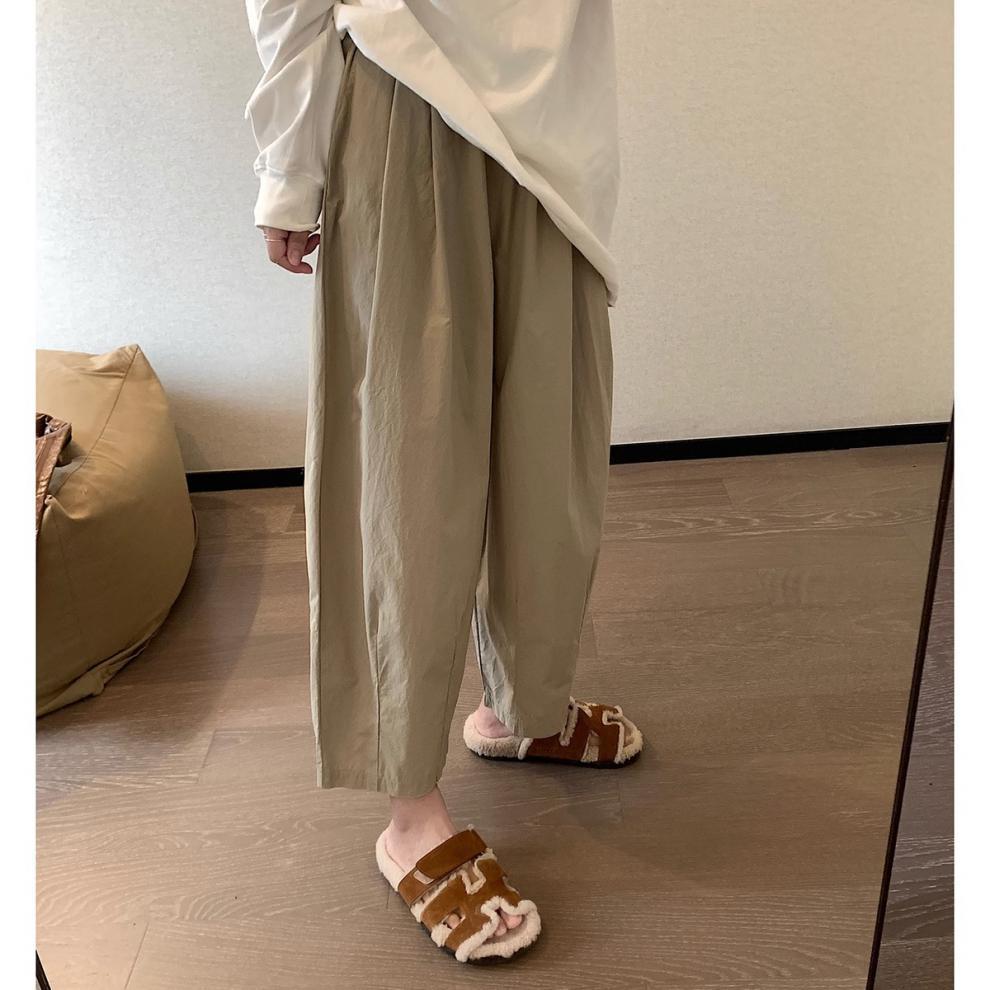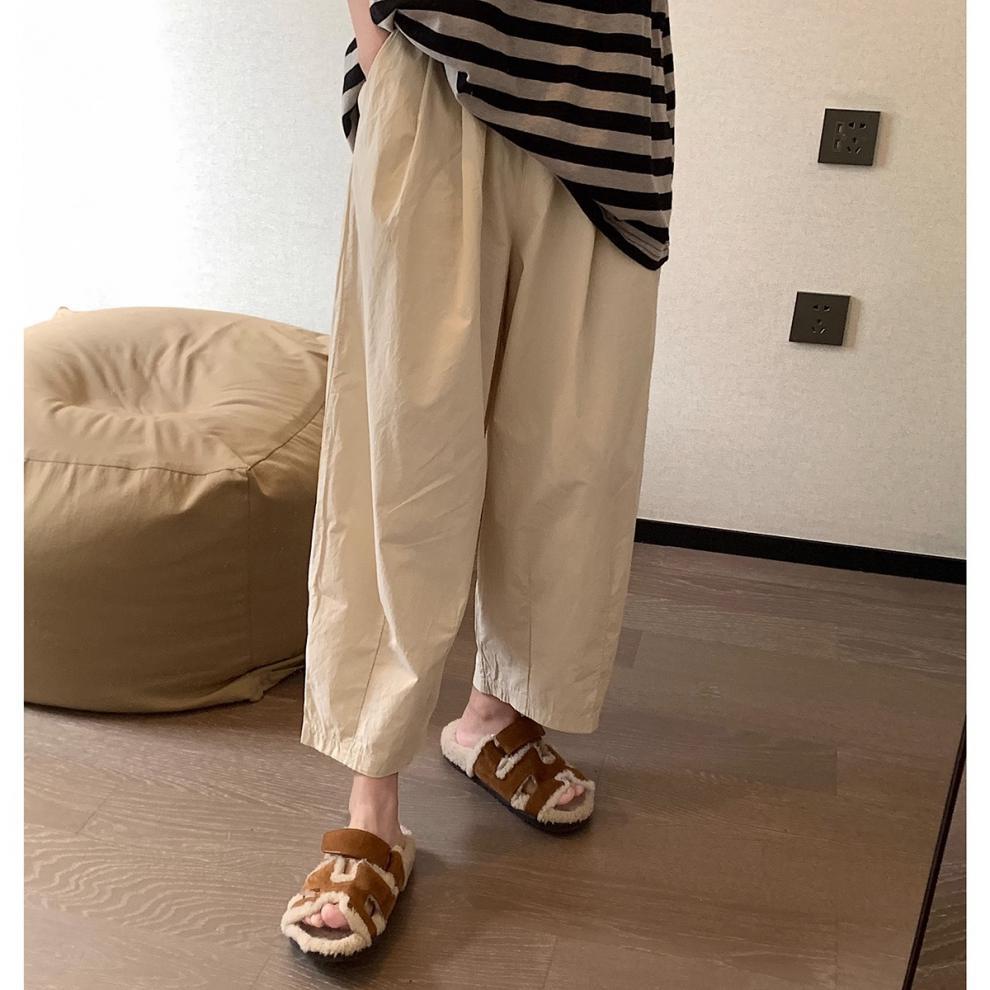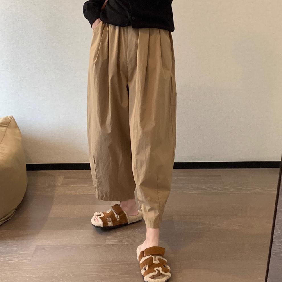 배 모양의 피겨 바이 ~ 2024 여름 새로운 일본 슬림 탄성 하이 허리 9 캐주얼 할란 풍선 바지