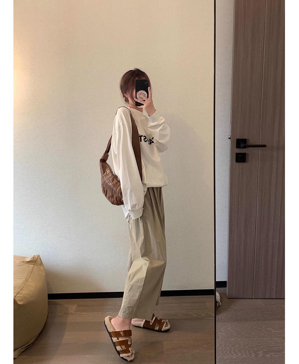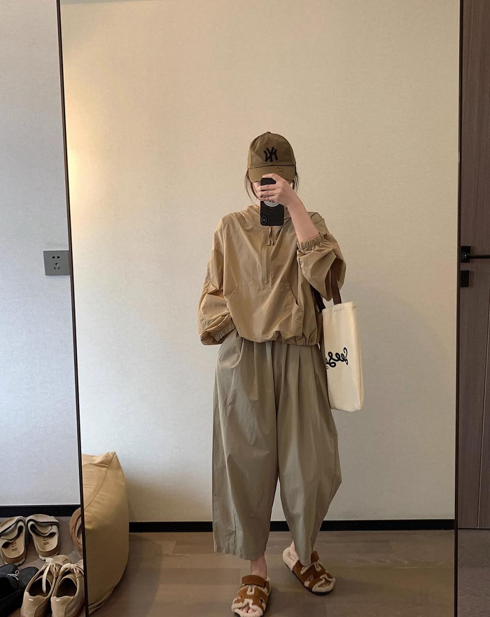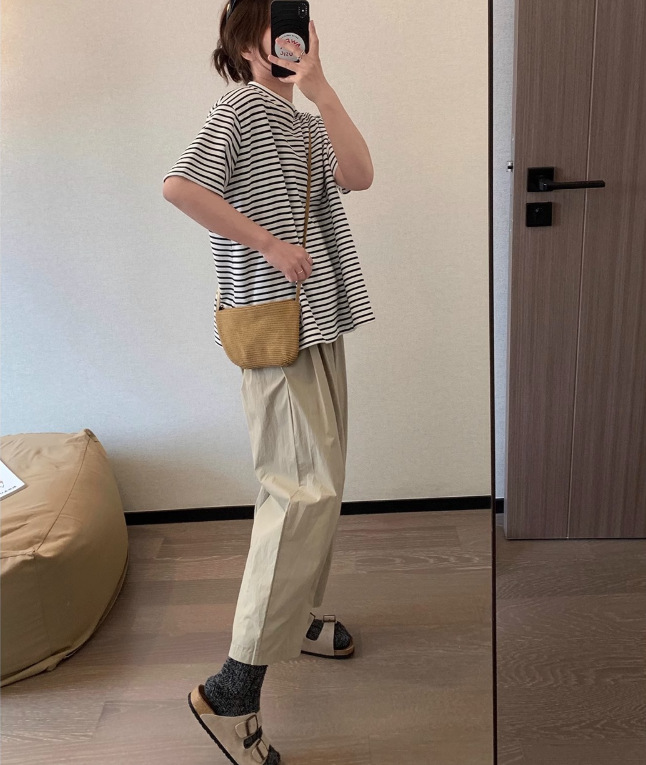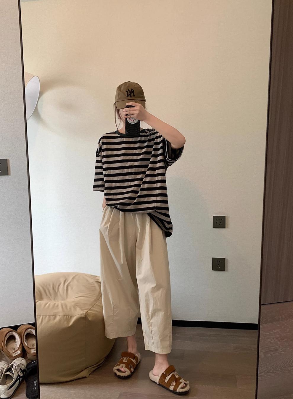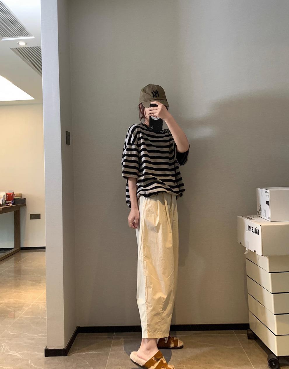 배 모양의 피겨 바이 ~ 2024 여름 새로운 일본 슬림 탄성 하이 허리 9 캐주얼 할란 풍선 바지스토어 가기