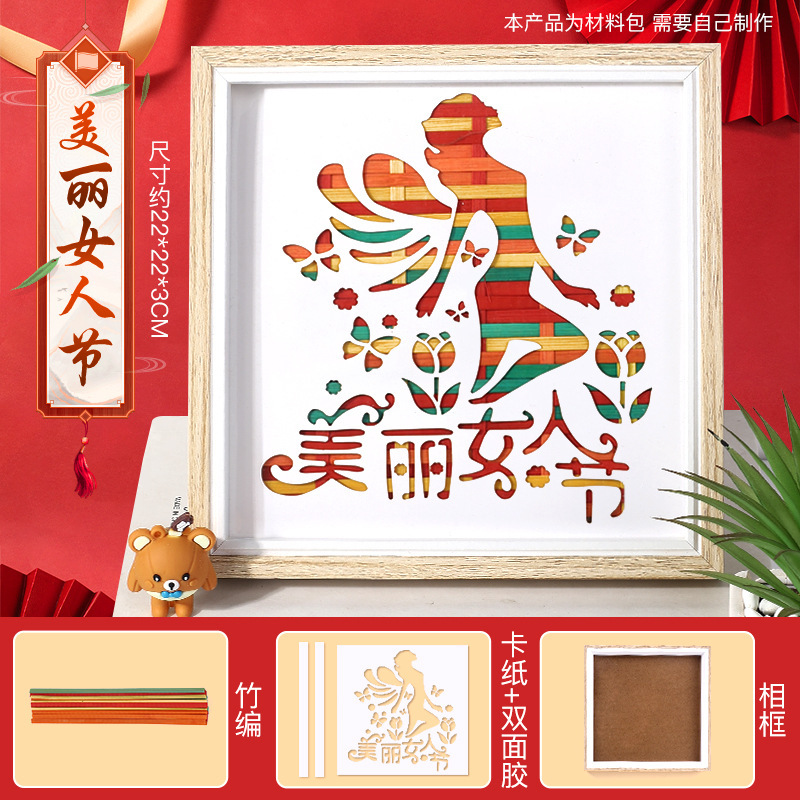 어린이 유치원을 위한 무형문화유산 대나무 그림 수제 DIY 재료 패키지, 여성의 날 테마 팀 빌딩 워밍업 선물
