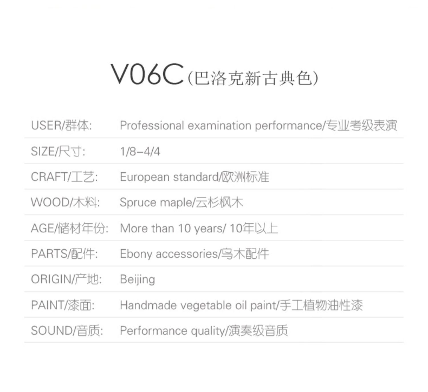 바이올린 V06C 전문 시험 학년 어린이 성인 초급 성능 학년 수제 솔리드 우드