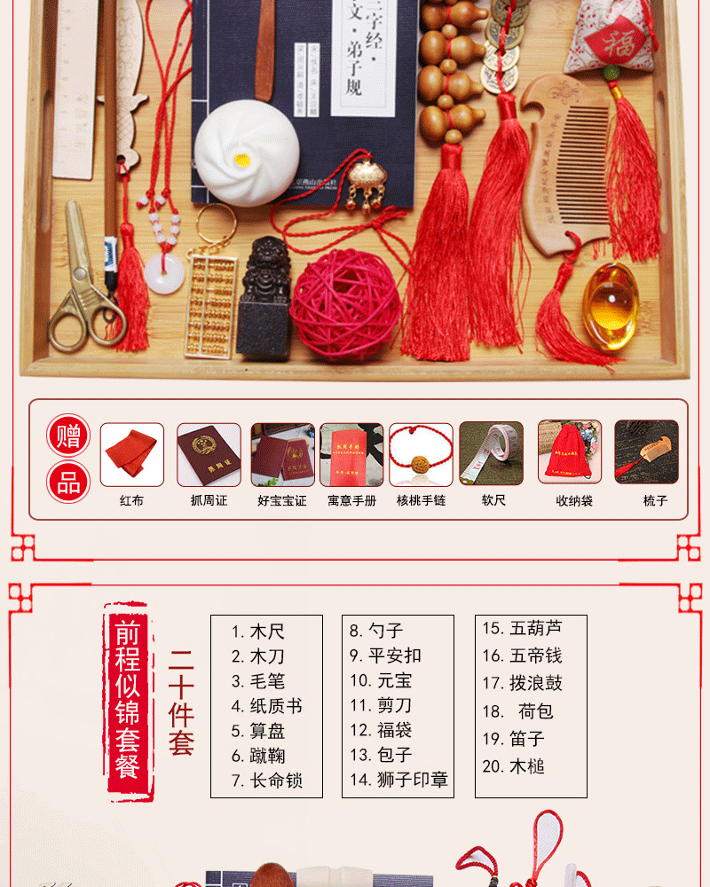 아기 1 년 된 주중 잡기 용품 세트 고대 주 잡기 아이템 어린이 복권 장난감 소품 선물 도매