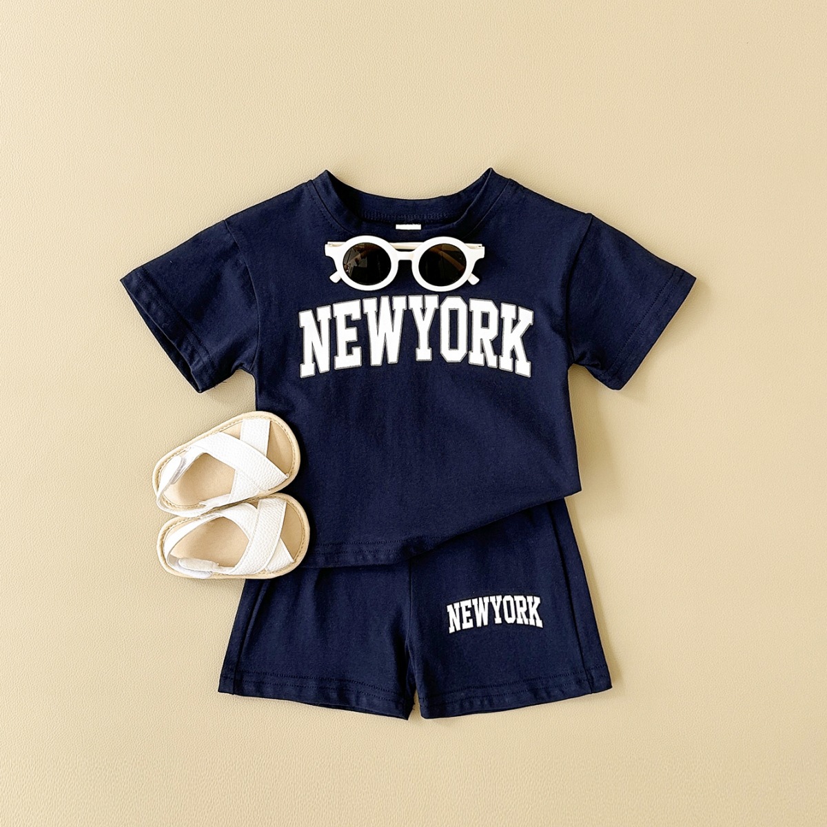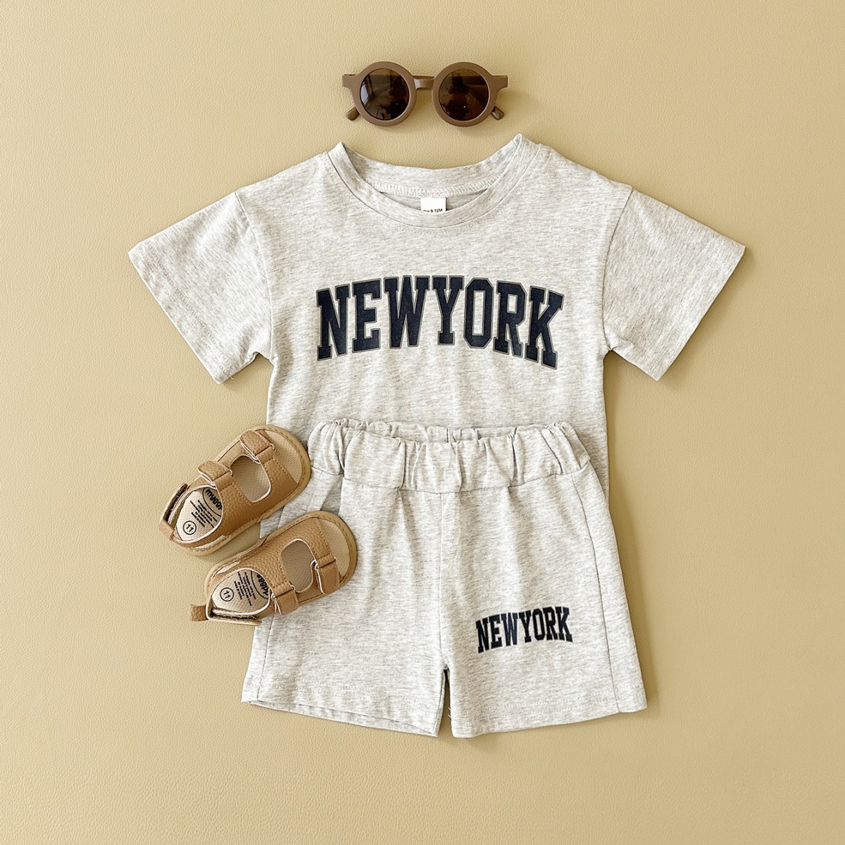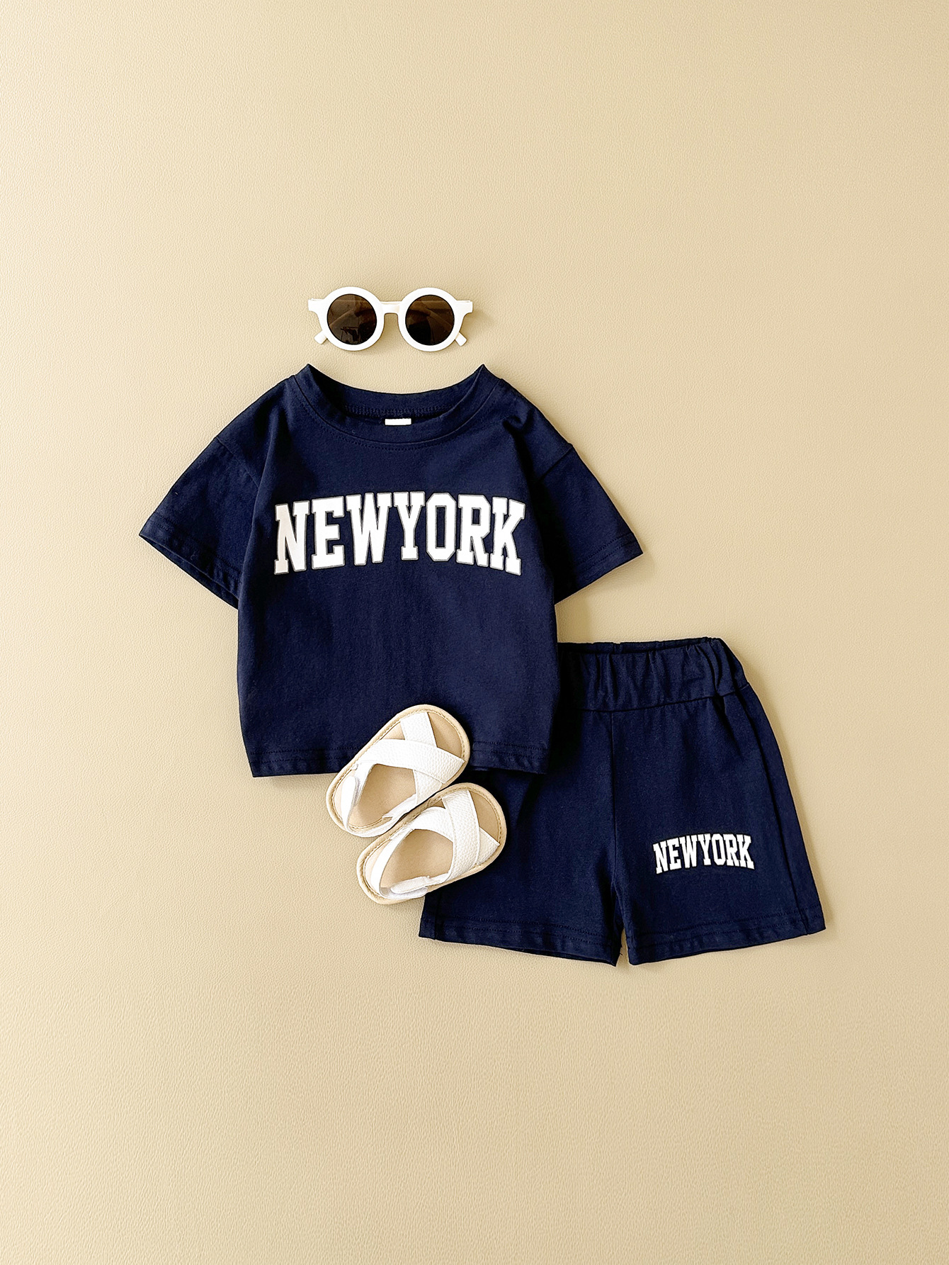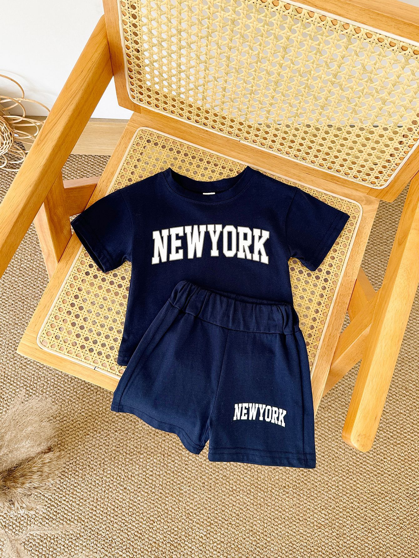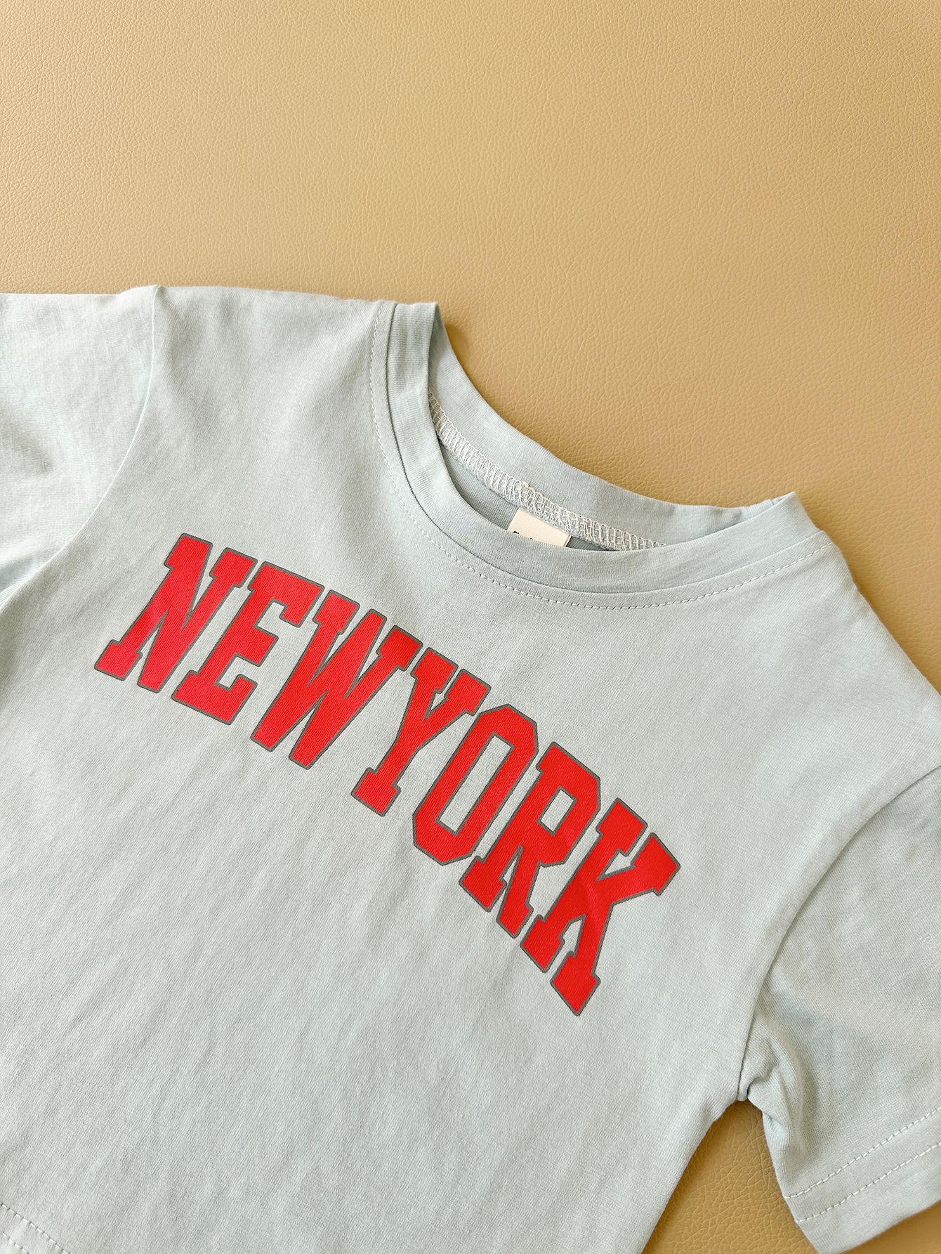 한국판 아동용 여름 신상품 세트, 레터 프린트 티셔츠, 캐주얼 스포츠 반팔 투피스 세트, 해외배송스토어 가기