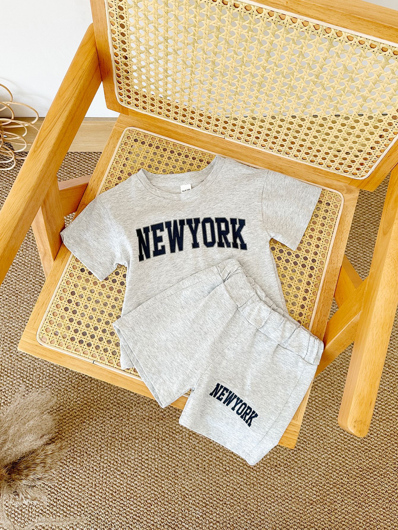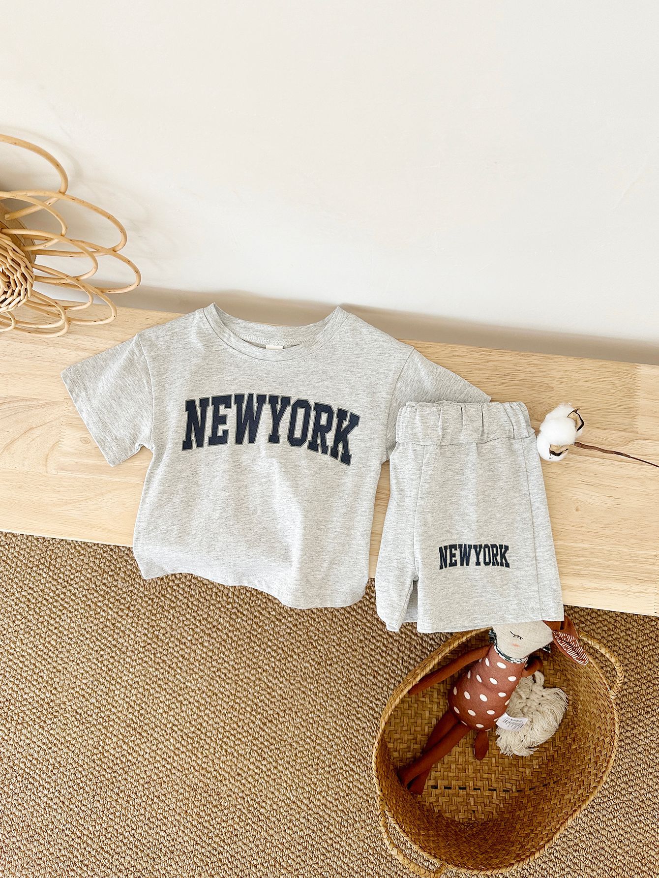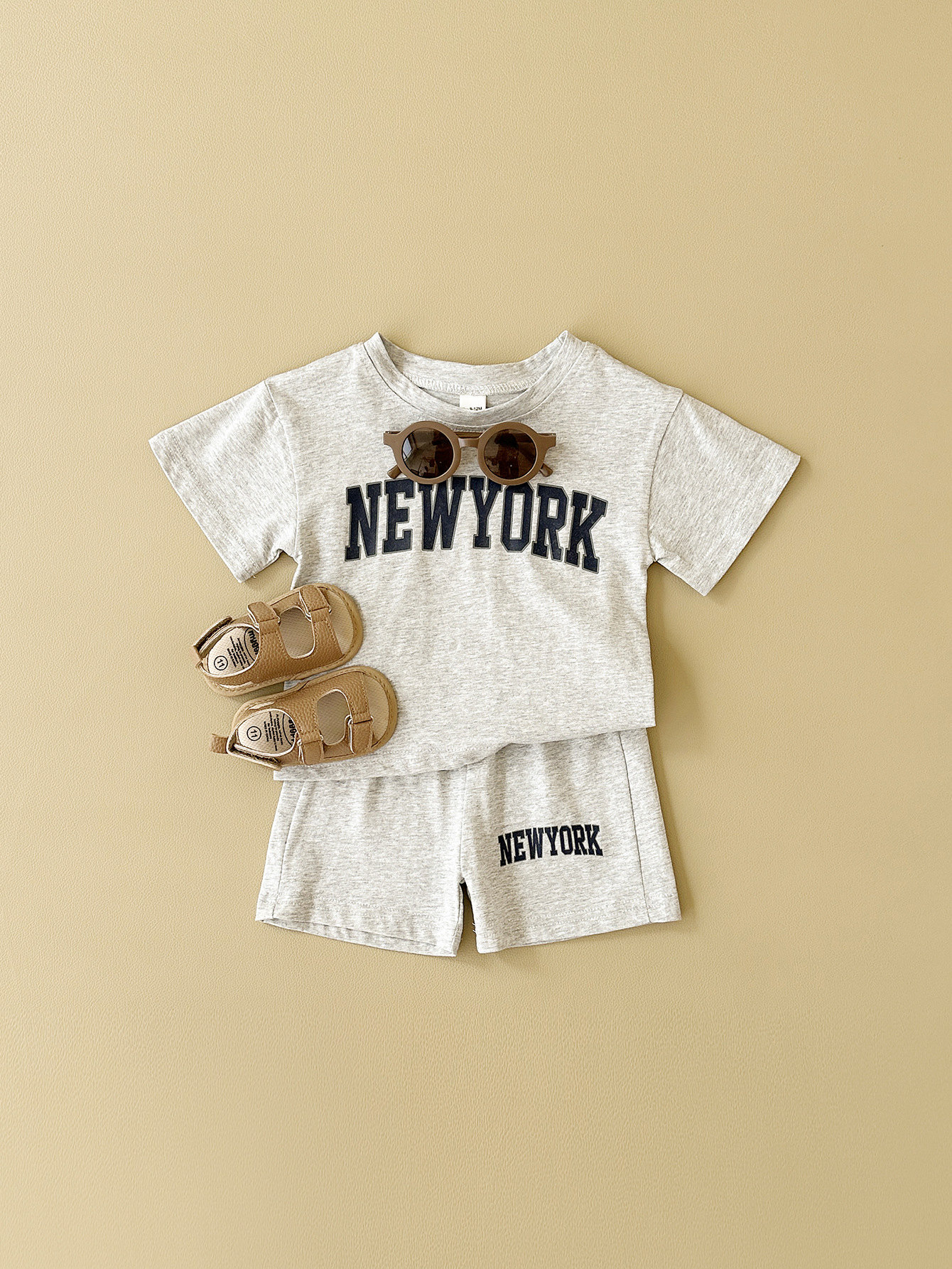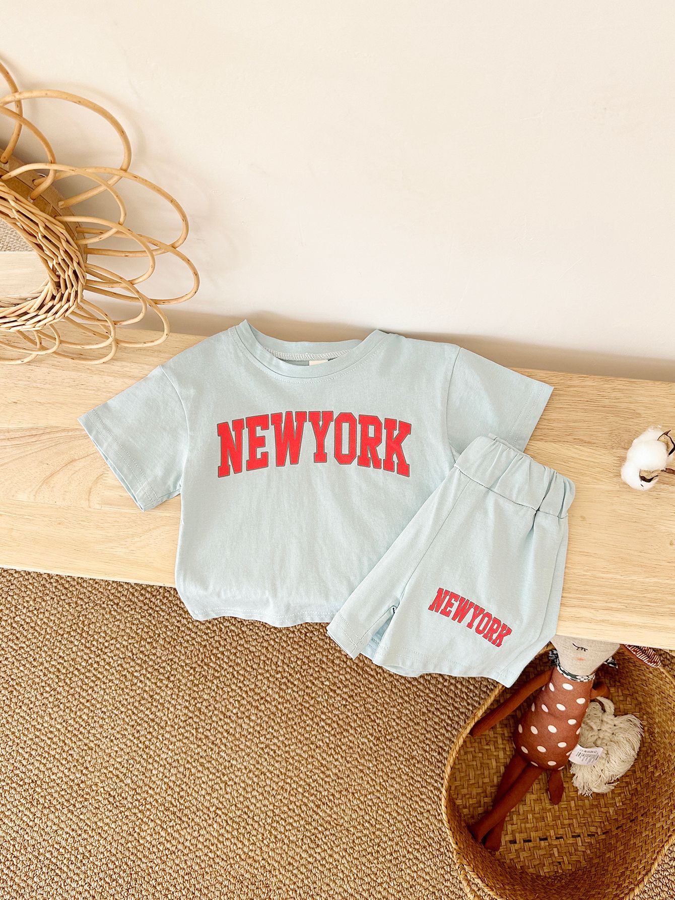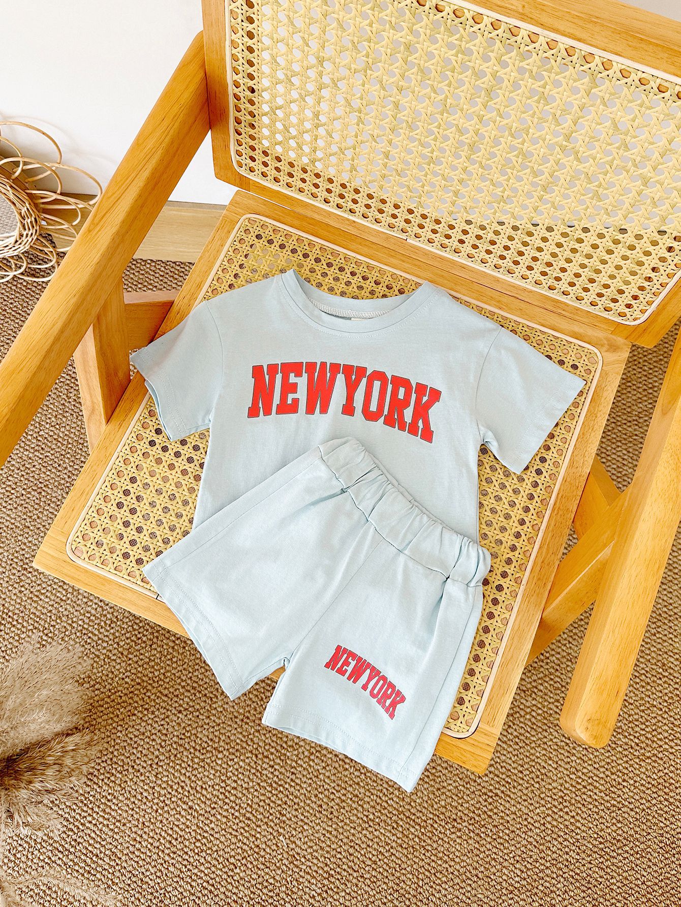 한국판 아동용 여름 신상품 세트, 레터 프린트 티셔츠, 캐주얼 스포츠 반팔 투피스 세트, 해외배송스토어 가기