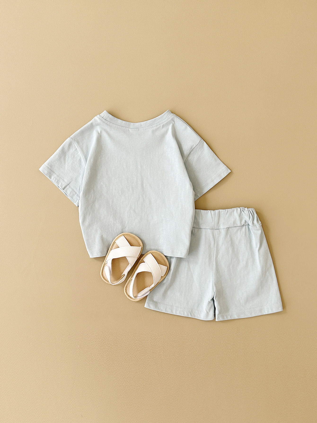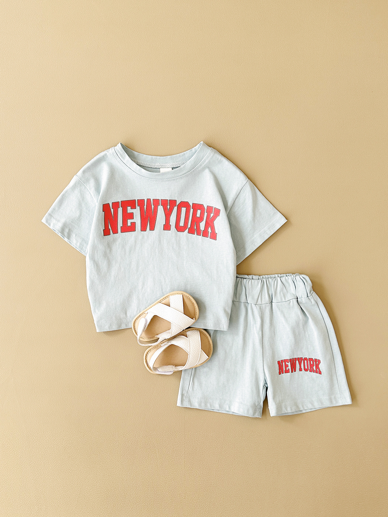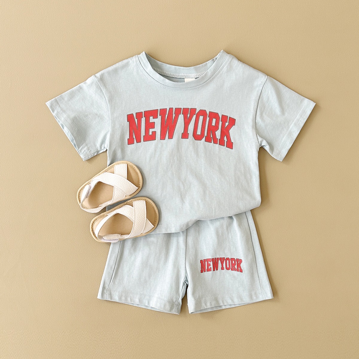 한국판 아동용 여름 신상품 세트, 레터 프린트 티셔츠, 캐주얼 스포츠 반팔 투피스 세트, 해외배송