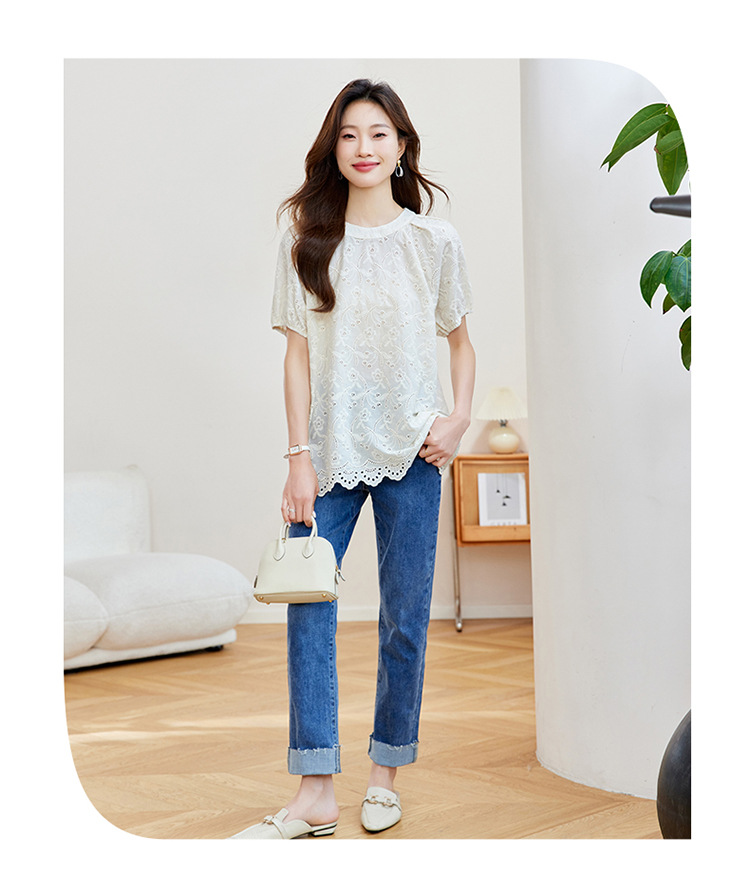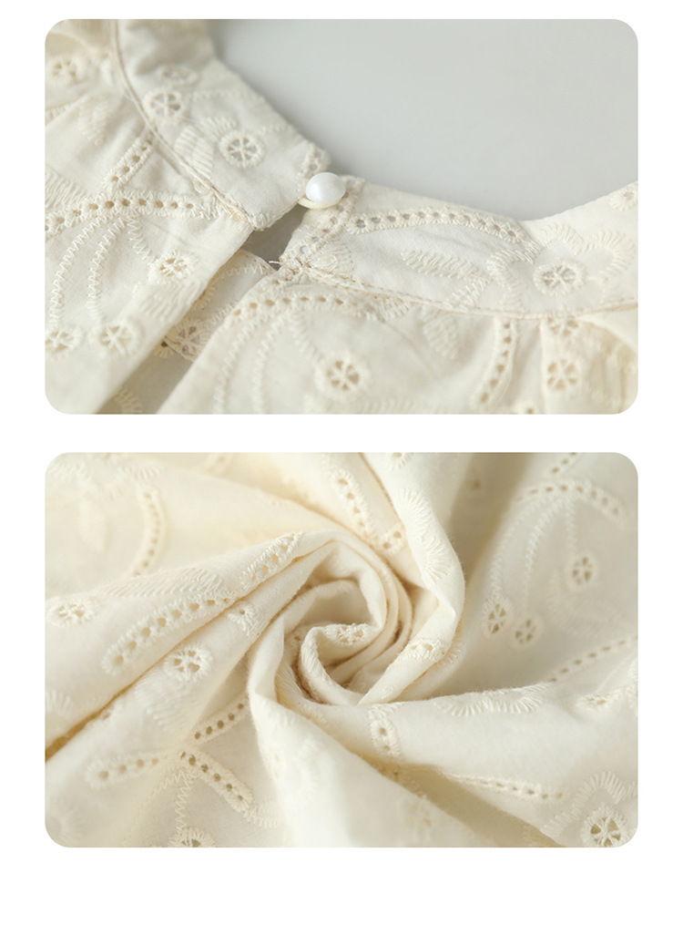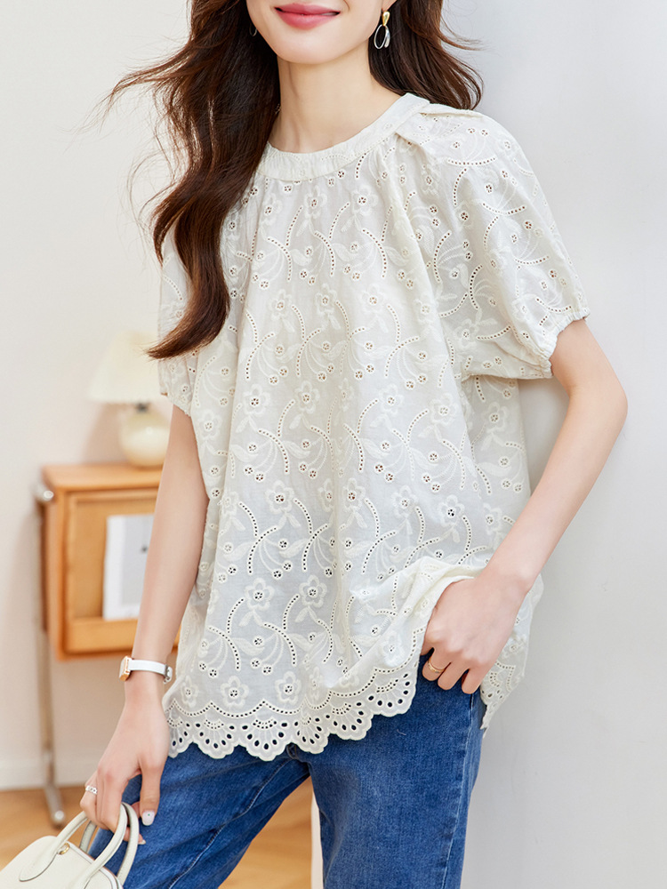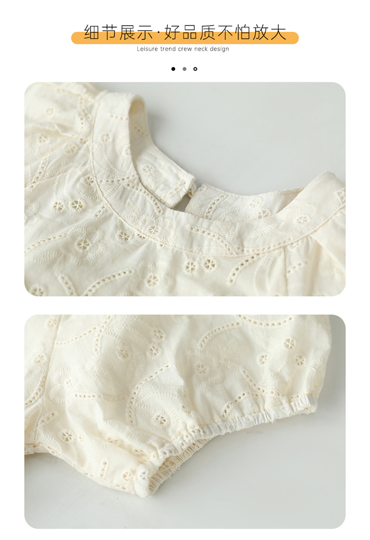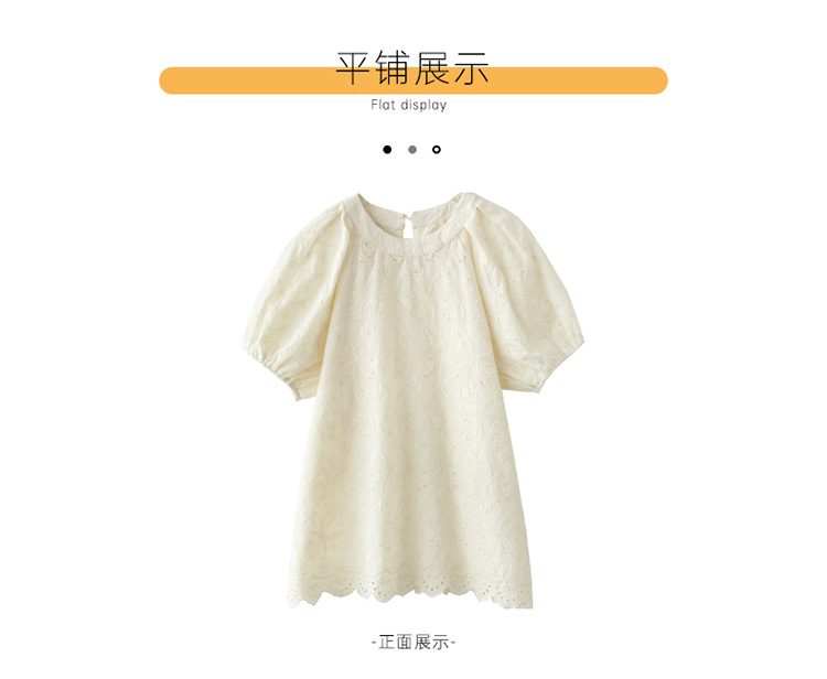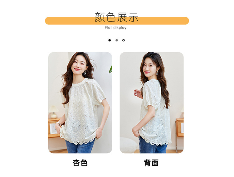 2024 새로운 여름 여성복 할로우 탑 디자인 틈새 레이스 짧은 소매 화이트 V-넥 달콤한 작은 셔츠스토어 가기