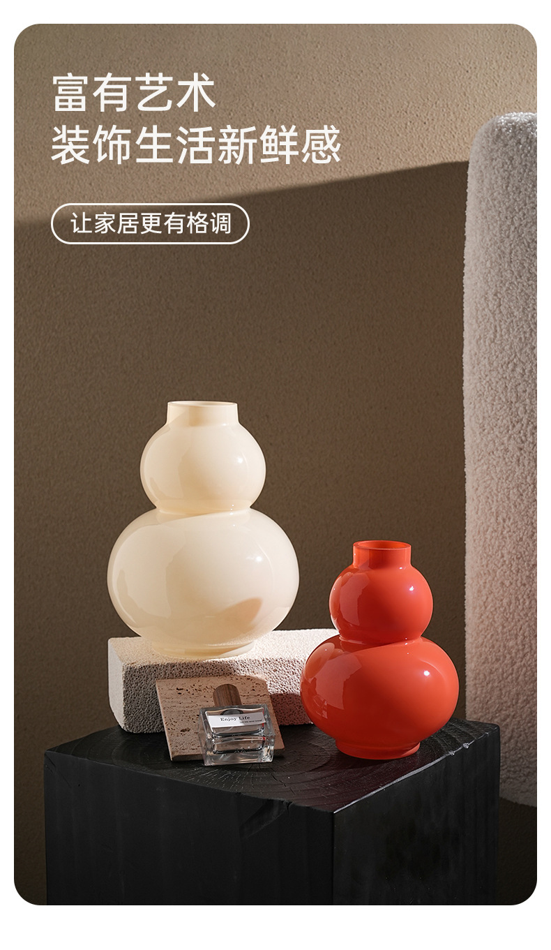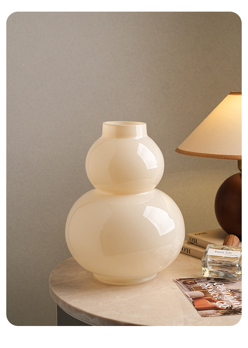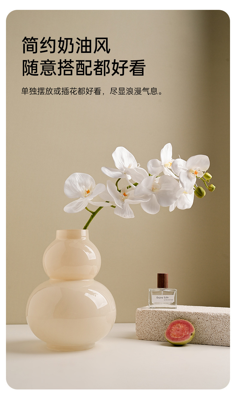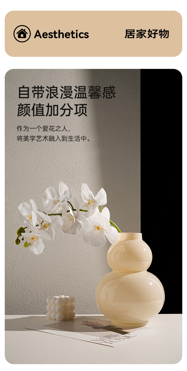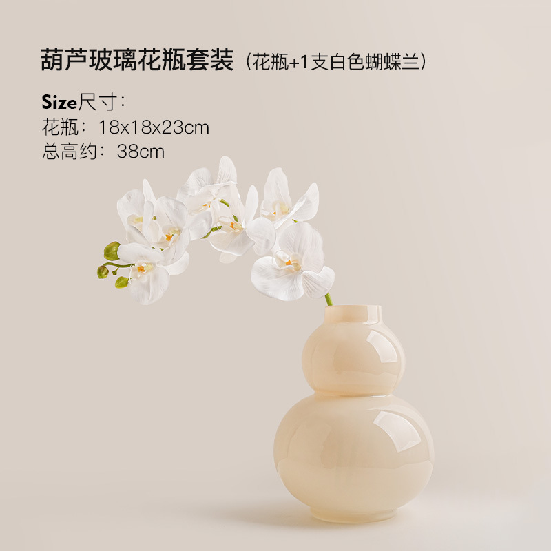 Behanmei 크림 스타일 꽃병 장식품 거실 고급 감각 창조적 인 유리 조롱박 수경 꽃 테이블 장식스토어 가기