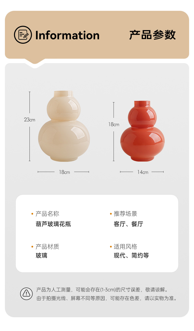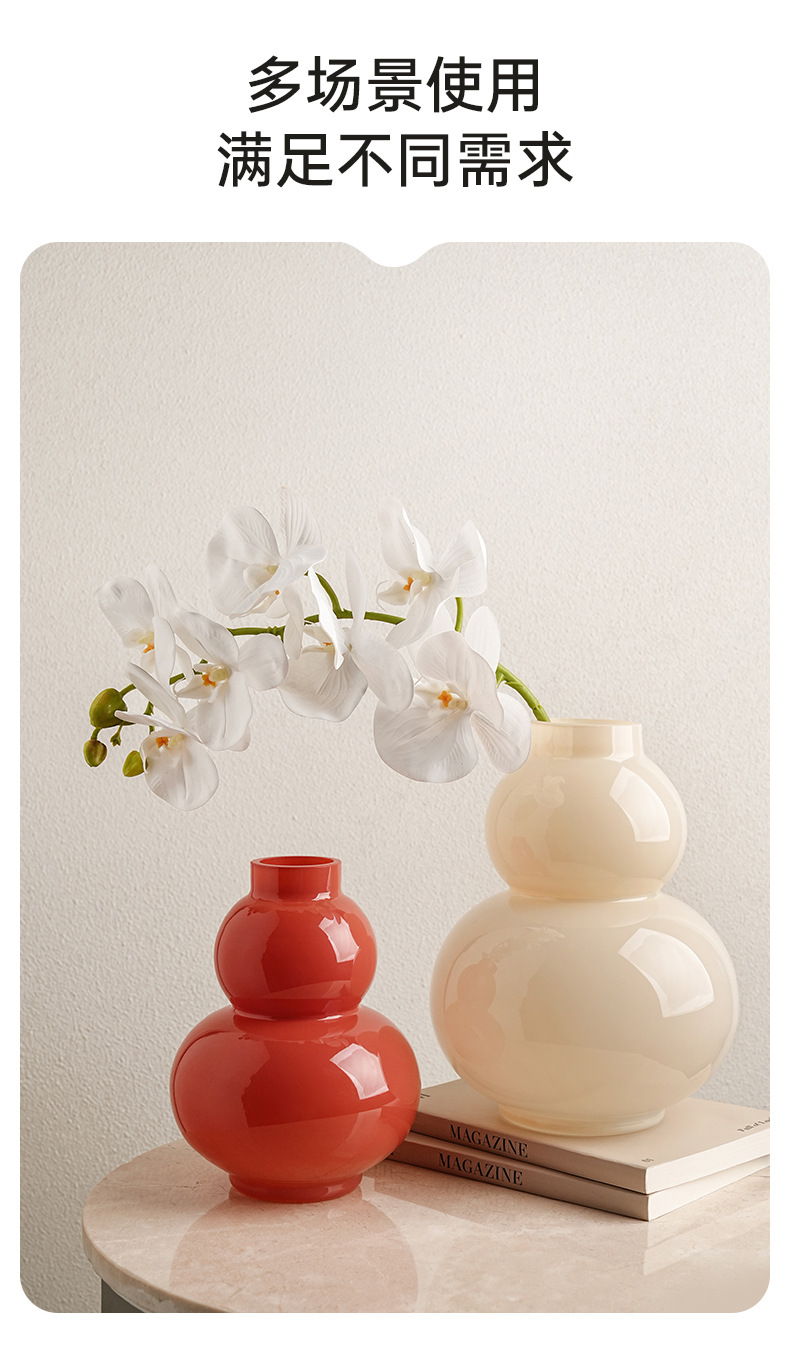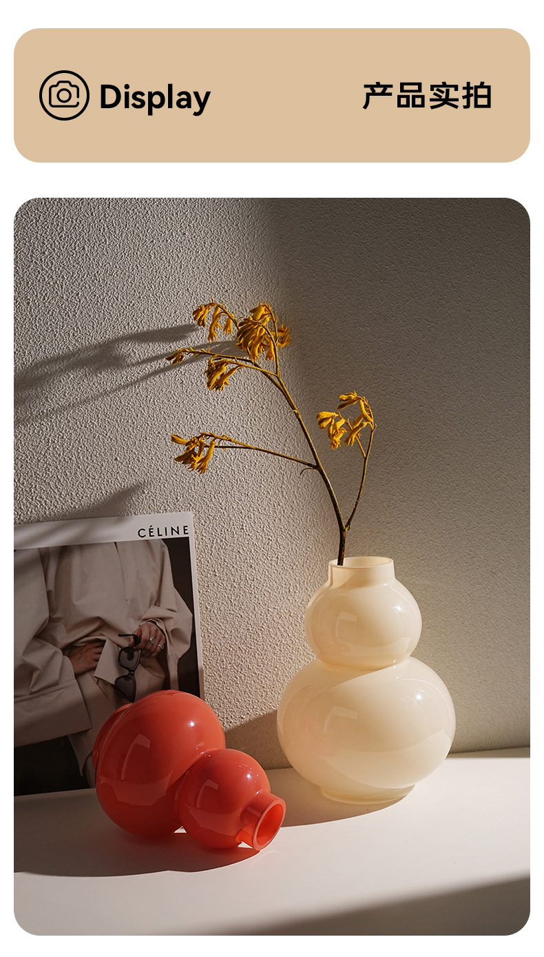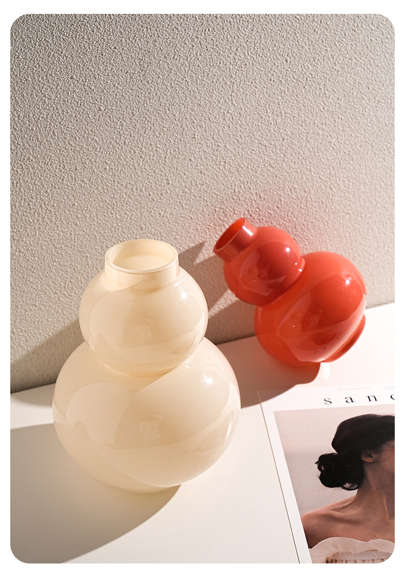 Behanmei 크림 스타일 꽃병 장식품 거실 고급 감각 창조적 인 유리 조롱박 수경 꽃 테이블 장식스토어 가기