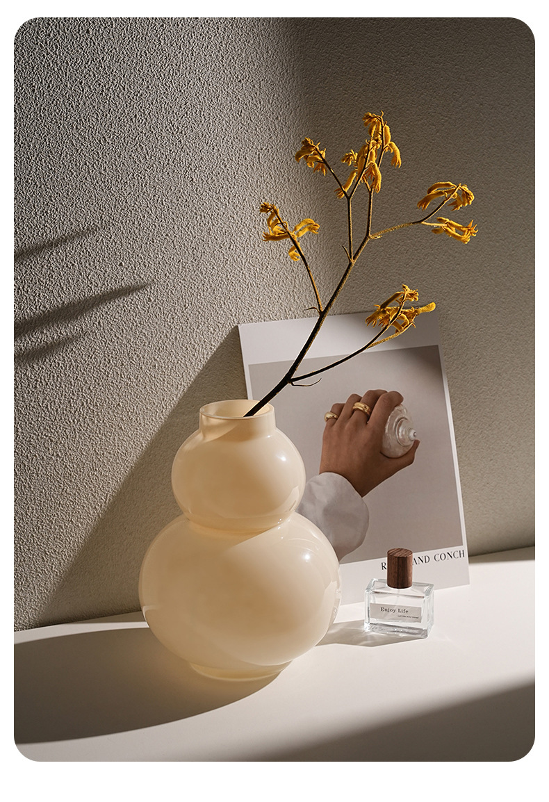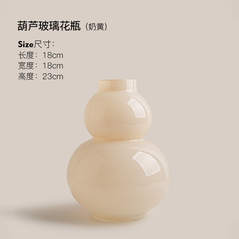 Behanmei 크림 스타일 꽃병 장식품 거실 고급 감각 창조적 인 유리 조롱박 수경 꽃 테이블 장식