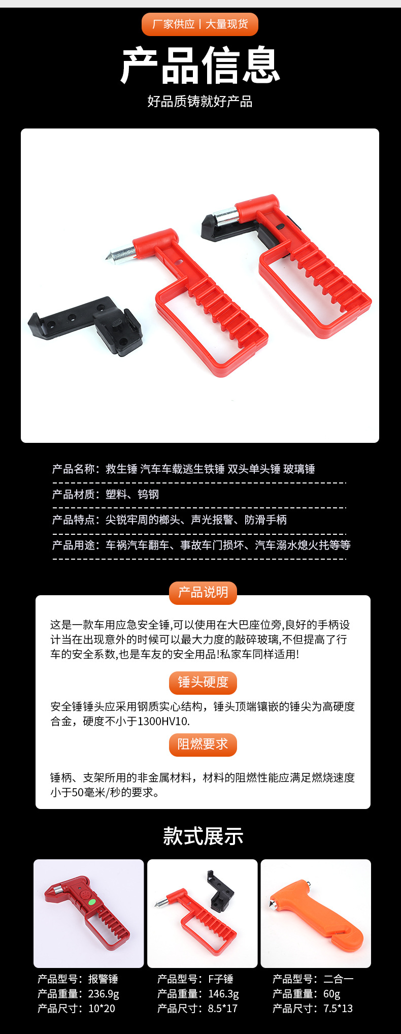 자동차 유리 자동차 안전 해머 다기능 가제트 깨진 창 유물 휴대용 자동차 탈출 망치 경보스토어 가기