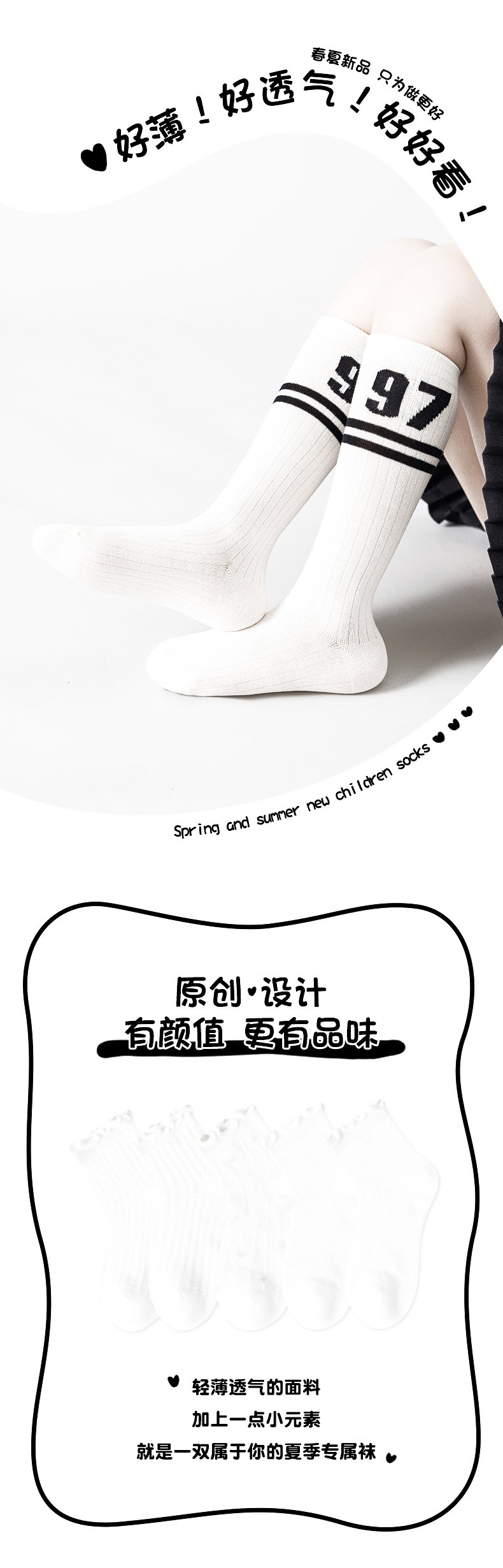 어린이 양말 여름 얇은 소년과 소녀 학생 양말 통기성 뼈없는 스포츠 면 양말 긴 튜브 대학 스타일 송아지 양말