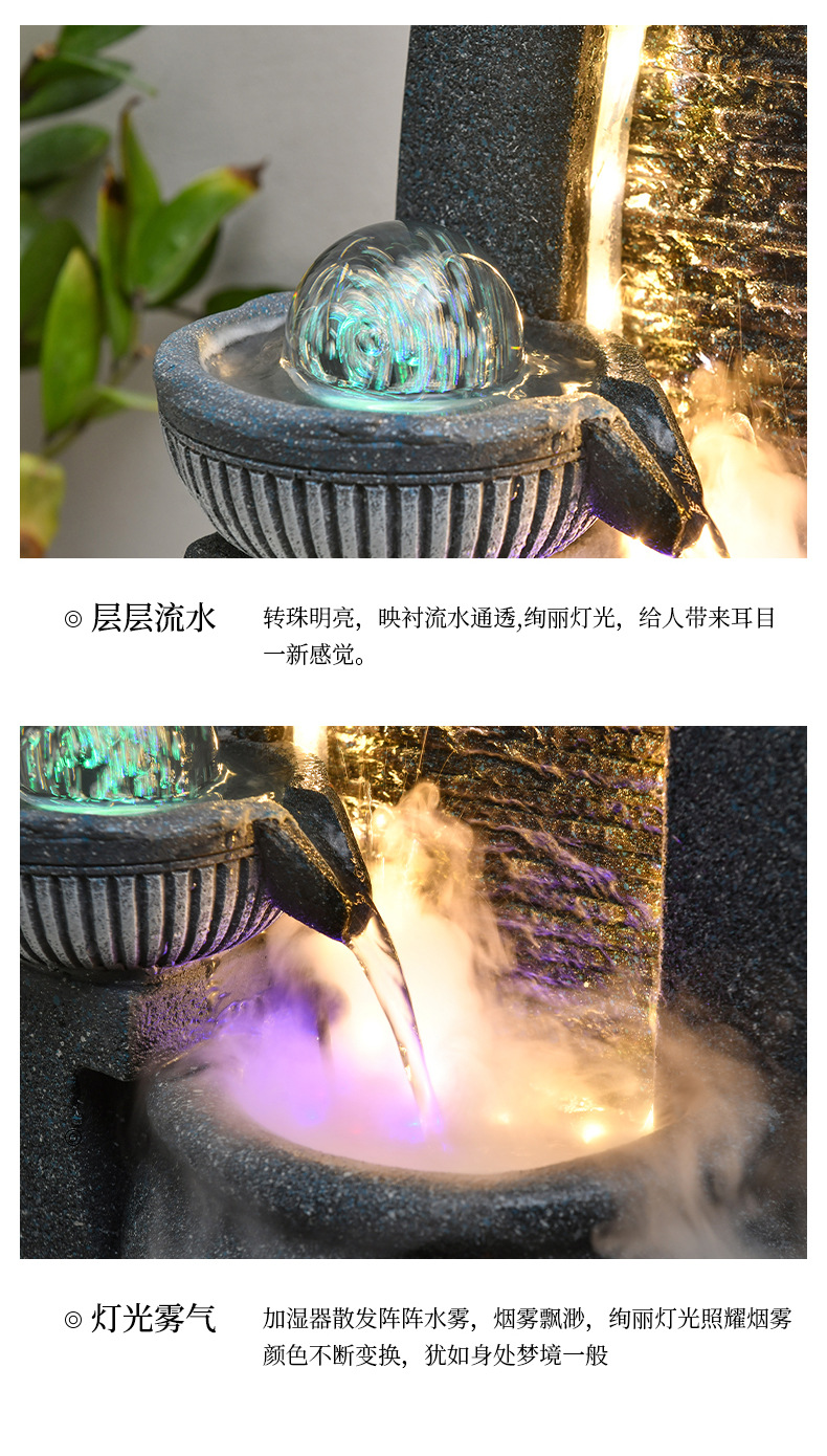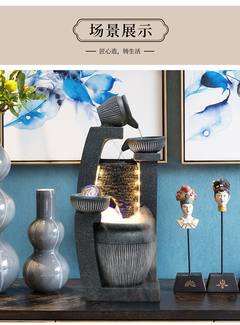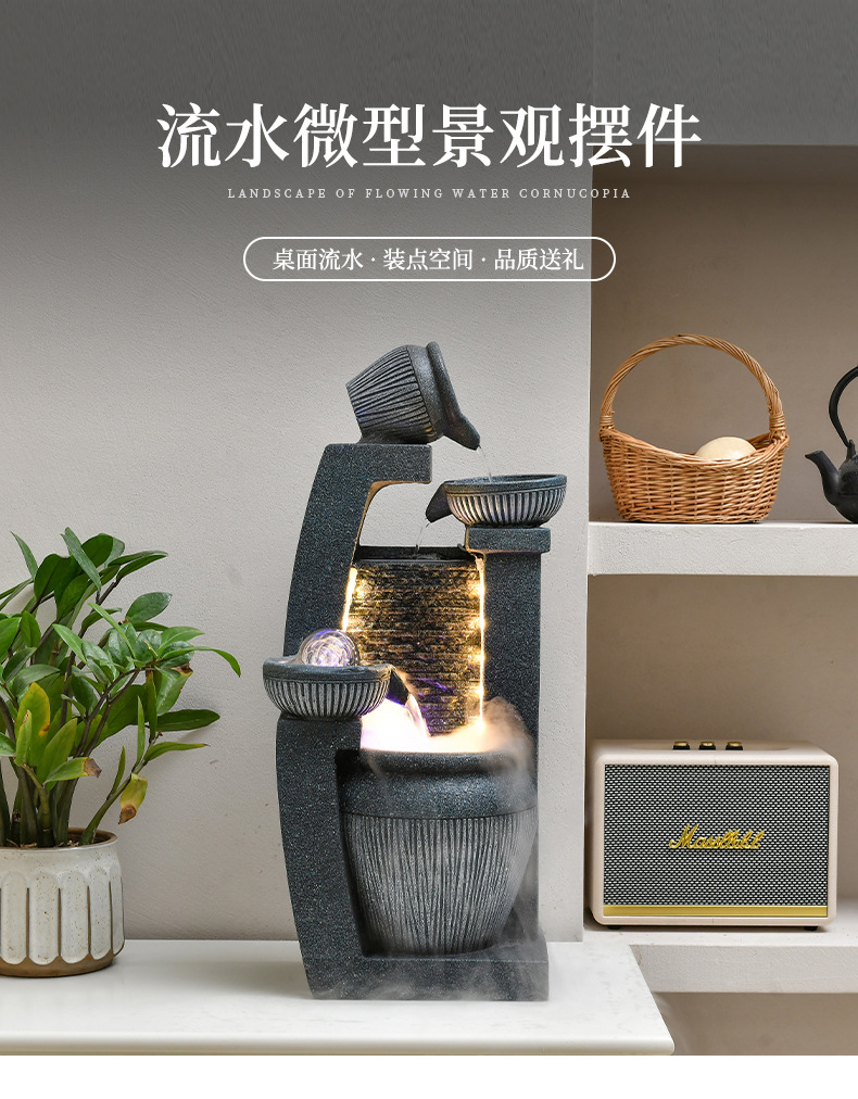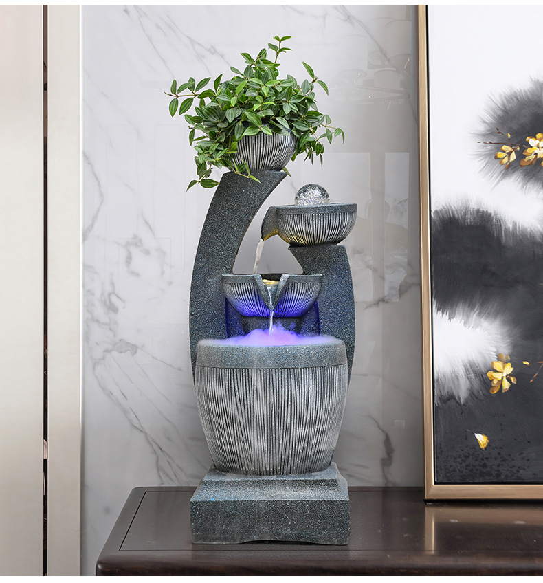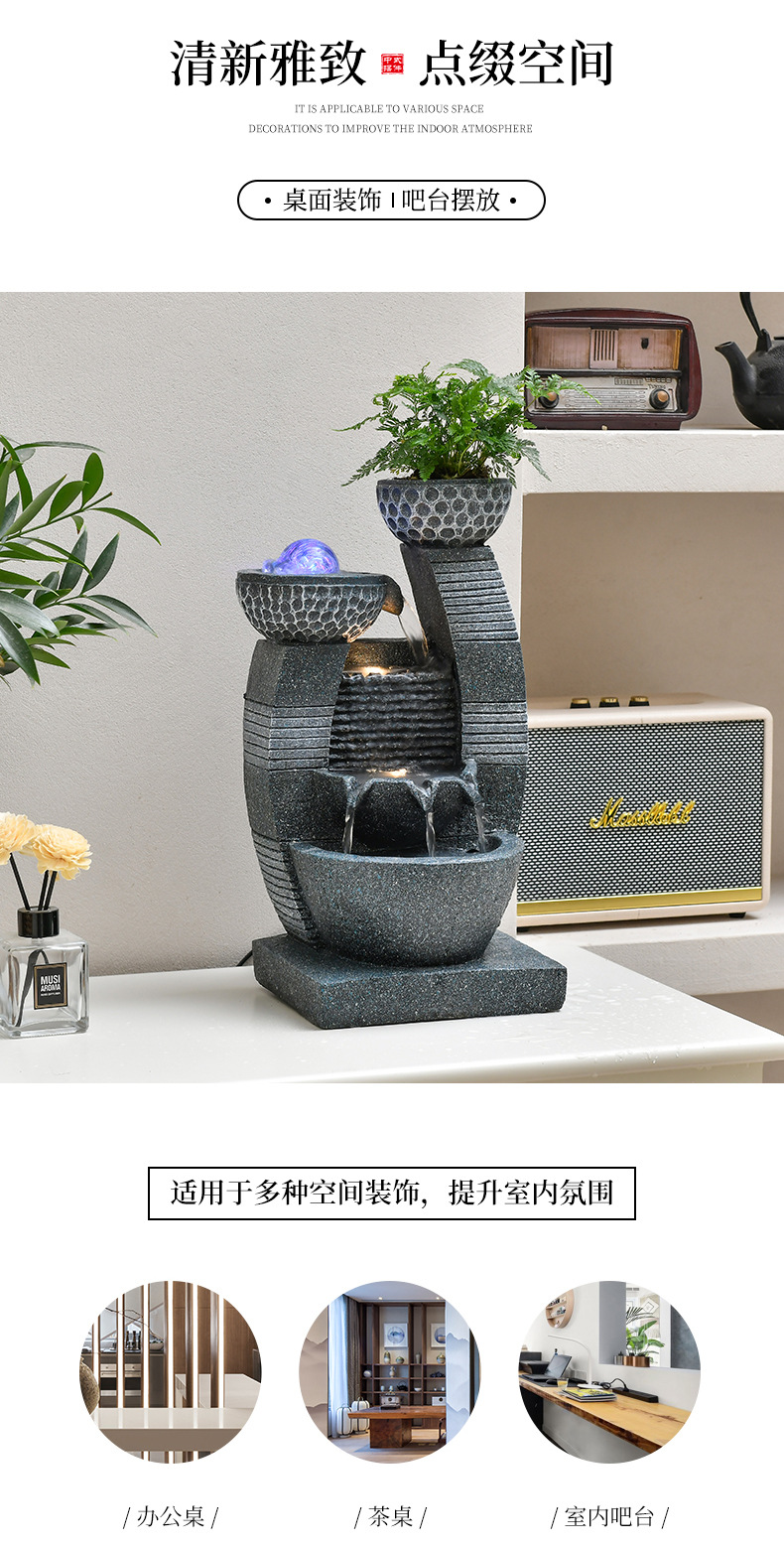 달리는 물 분수 재산 장식 어조를 순환시키는 풍수 공을 만드는 장식품 착륙 거실 사무실 실내 데스크탑 재산스토어 가기