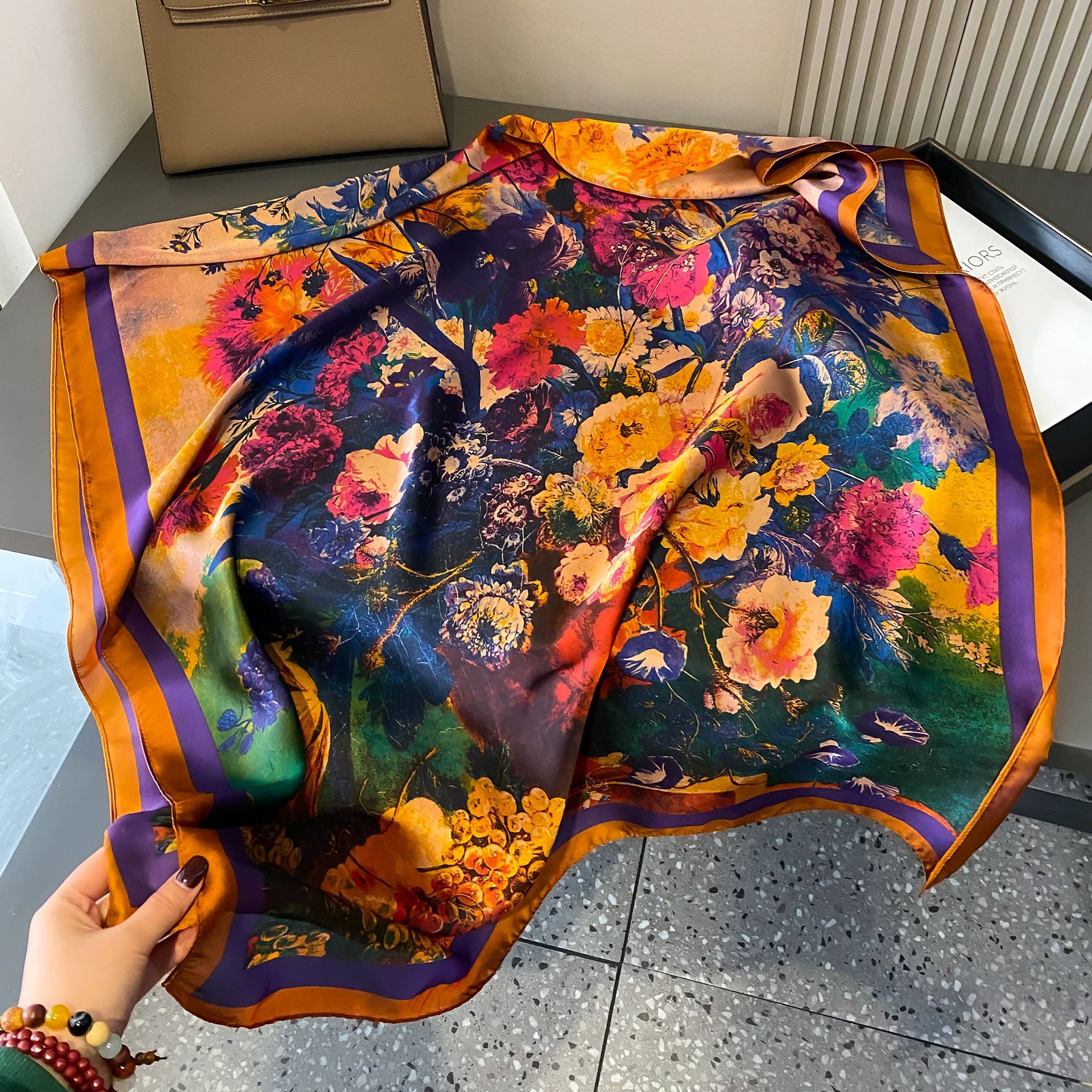 새로운 리 브로케이드 새틴 스카프 여성 모방 실크 우아한 기질 모든 경기 캐주얼 스타일 스카프 끈 목도리 장식 도매스토어 가기