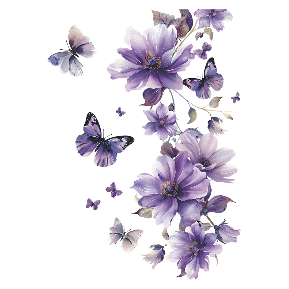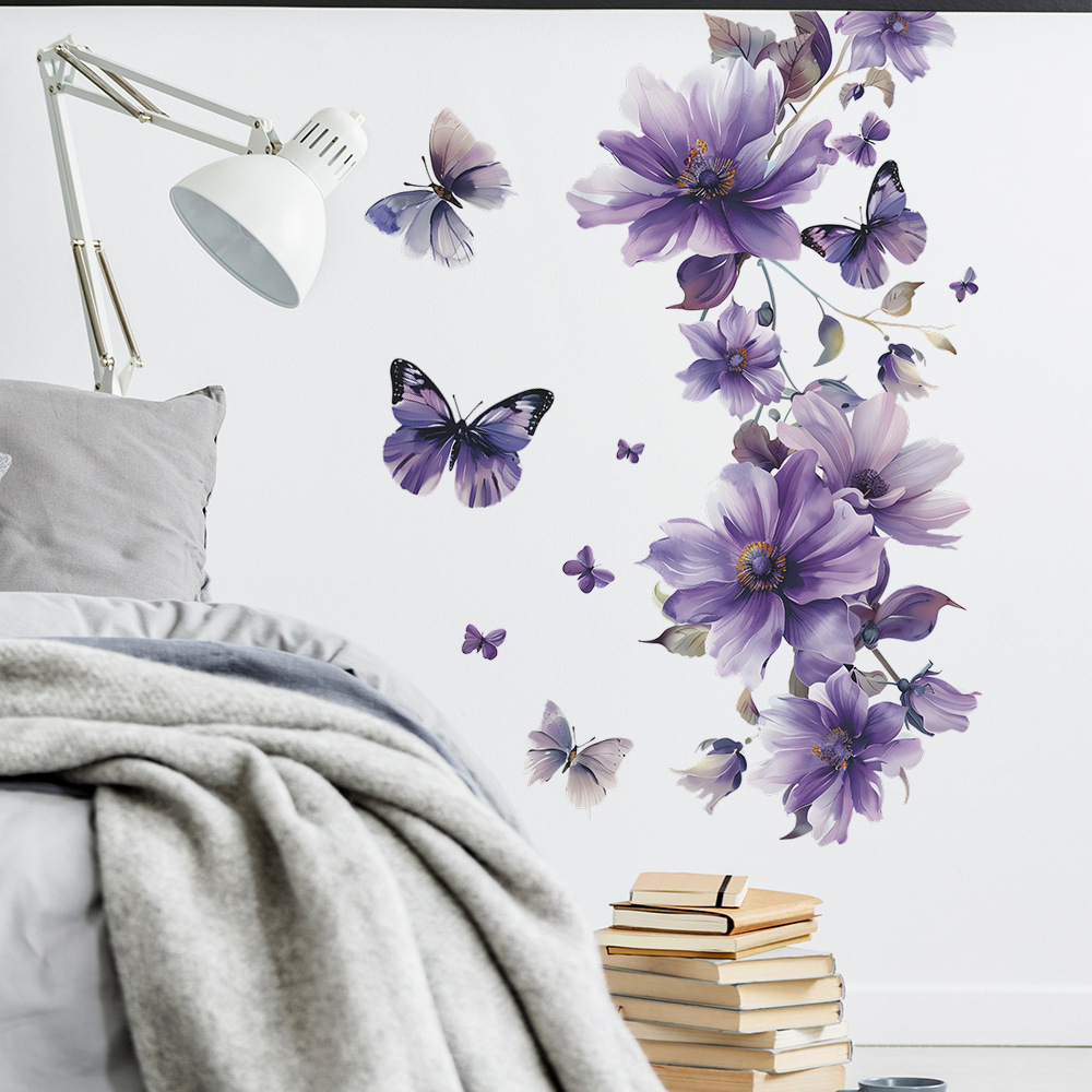 팬 Xi fun-e87 대외 무역 보라색 꽃 녹색 식물 나비 침실 거실 벽 장식 벽 스티커 도매