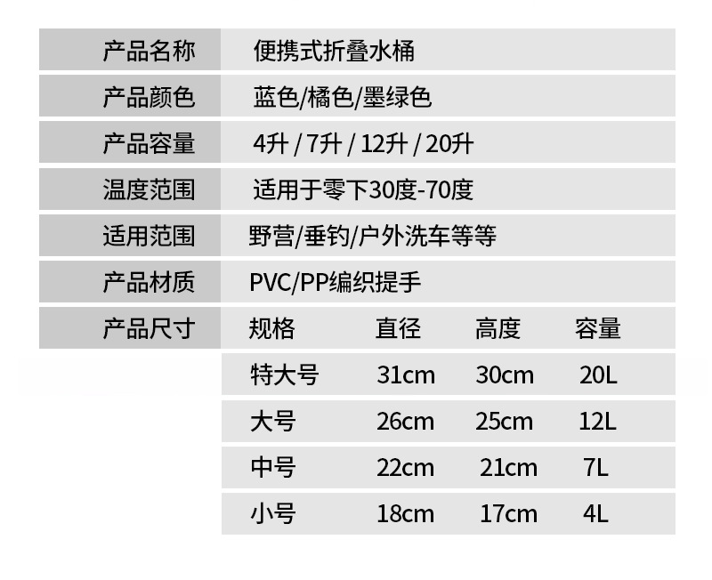 야외 여행 휴대용 PVC 접는 양동이 자동차 세척 버킷 물 저장 버킷 다기능 발 양동이