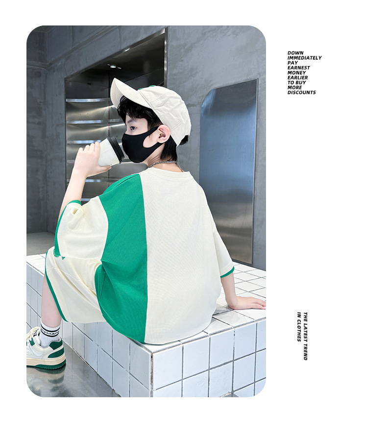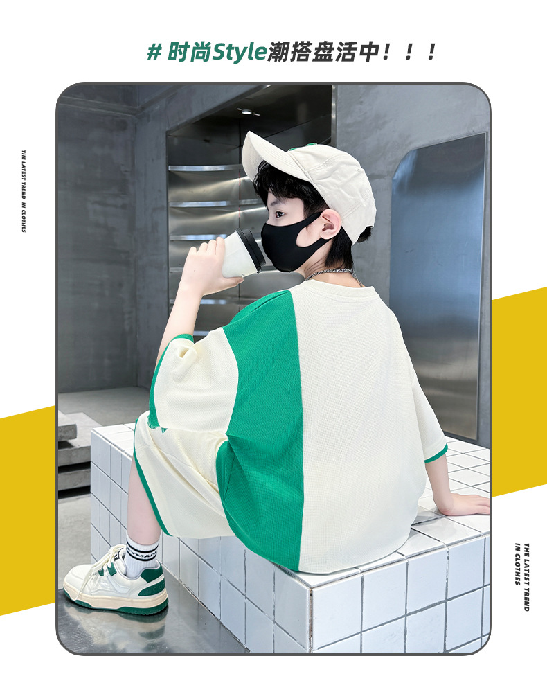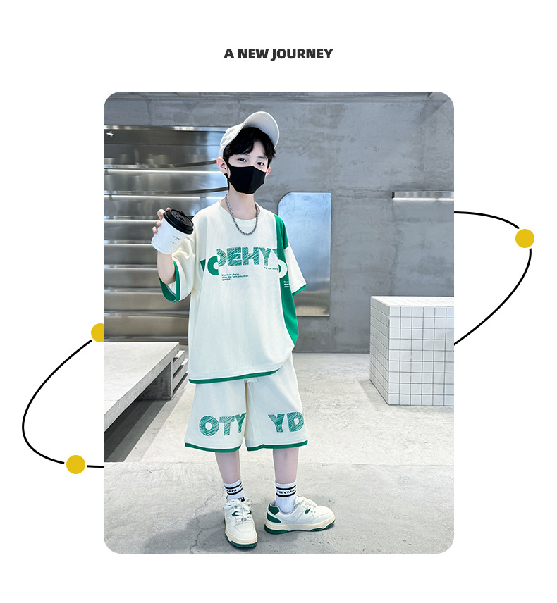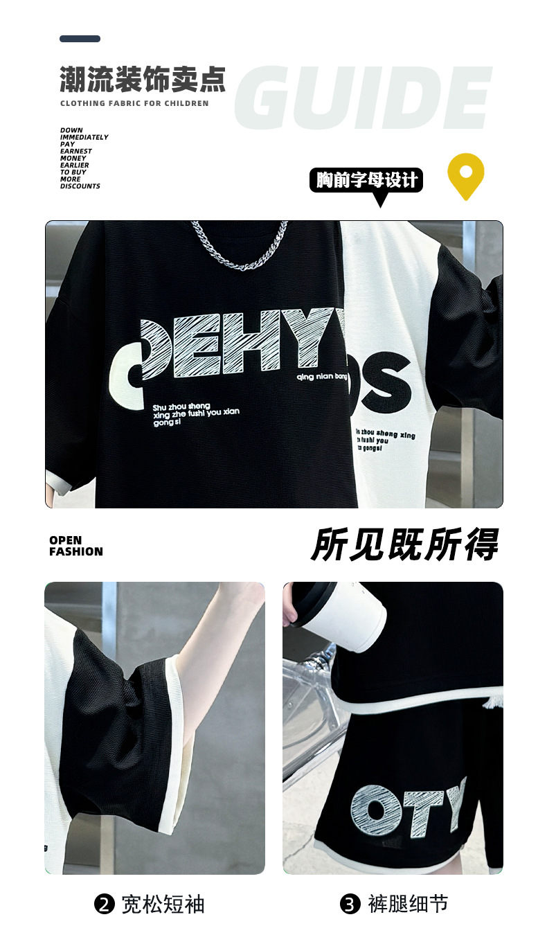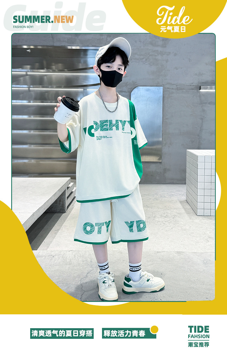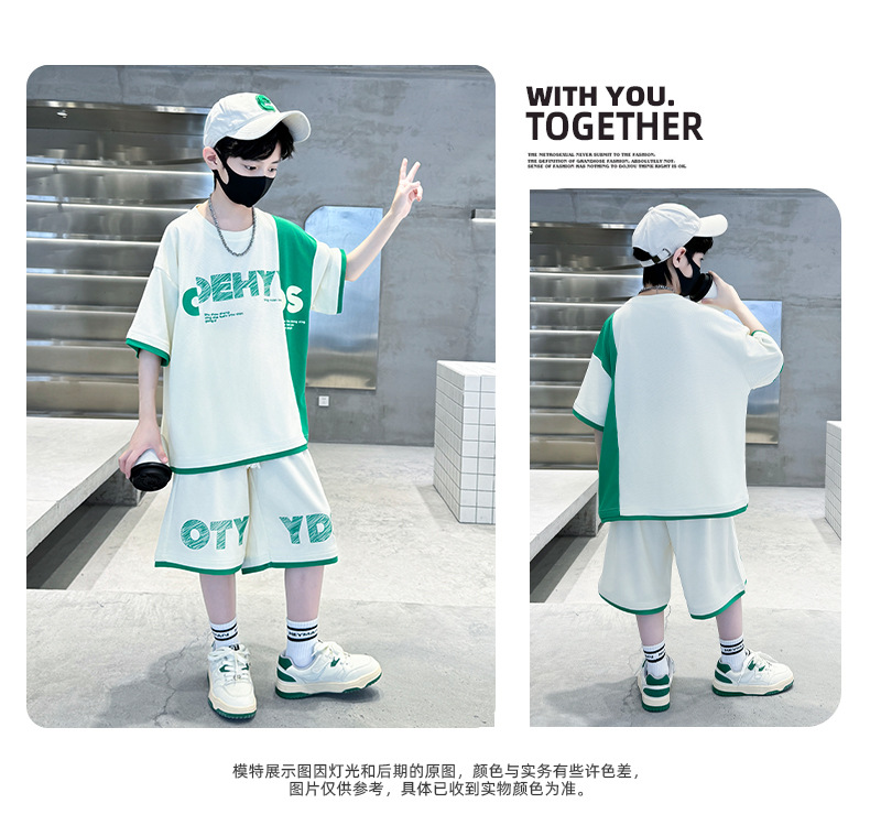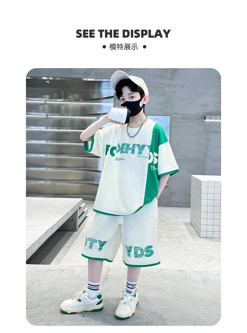 남학생 여름 반팔 티셔츠 편지 세트 2024 새로운 대형 어린이 여름 어린이 여름 바지 투피스 세트스토어 가기