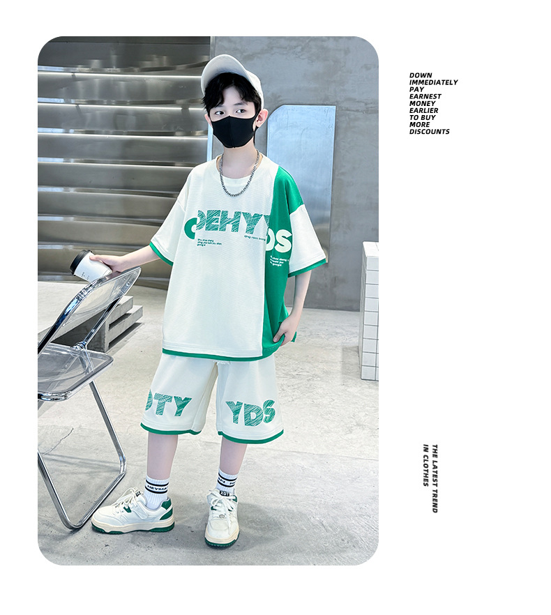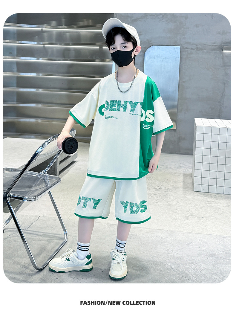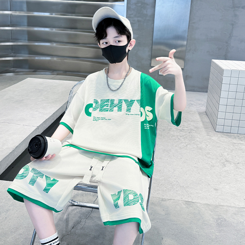 남아 여름 반팔 티셔츠 레터링 세트 2024 중대형 아동 여름 반바지 투피스 캐주얼 남아복