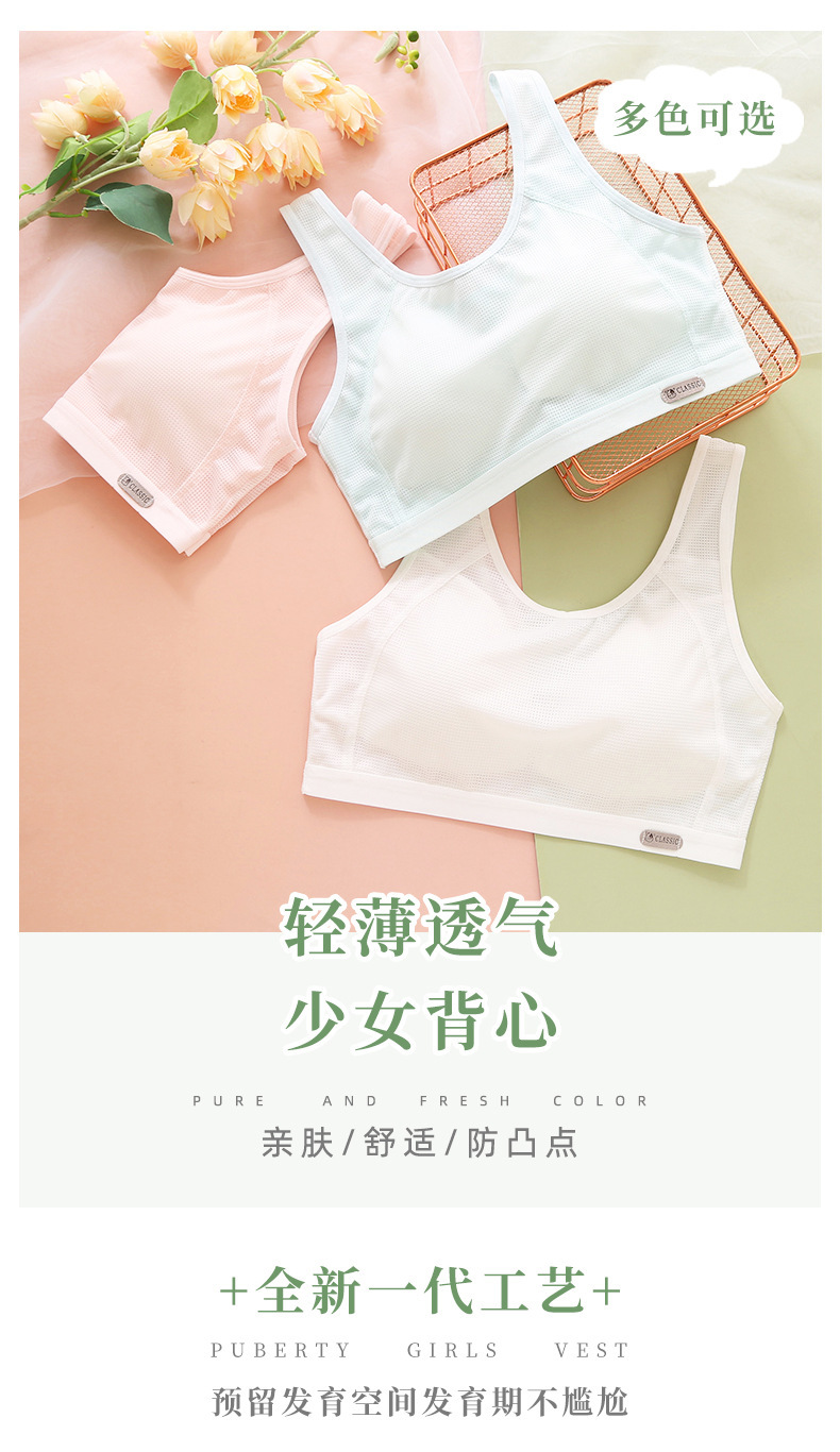 중학교 고등학생을위한 소녀 속옷 소녀 발달 작은 조끼 넓은 어깨 끈 걸스 안티 범프 스포츠 브래지어